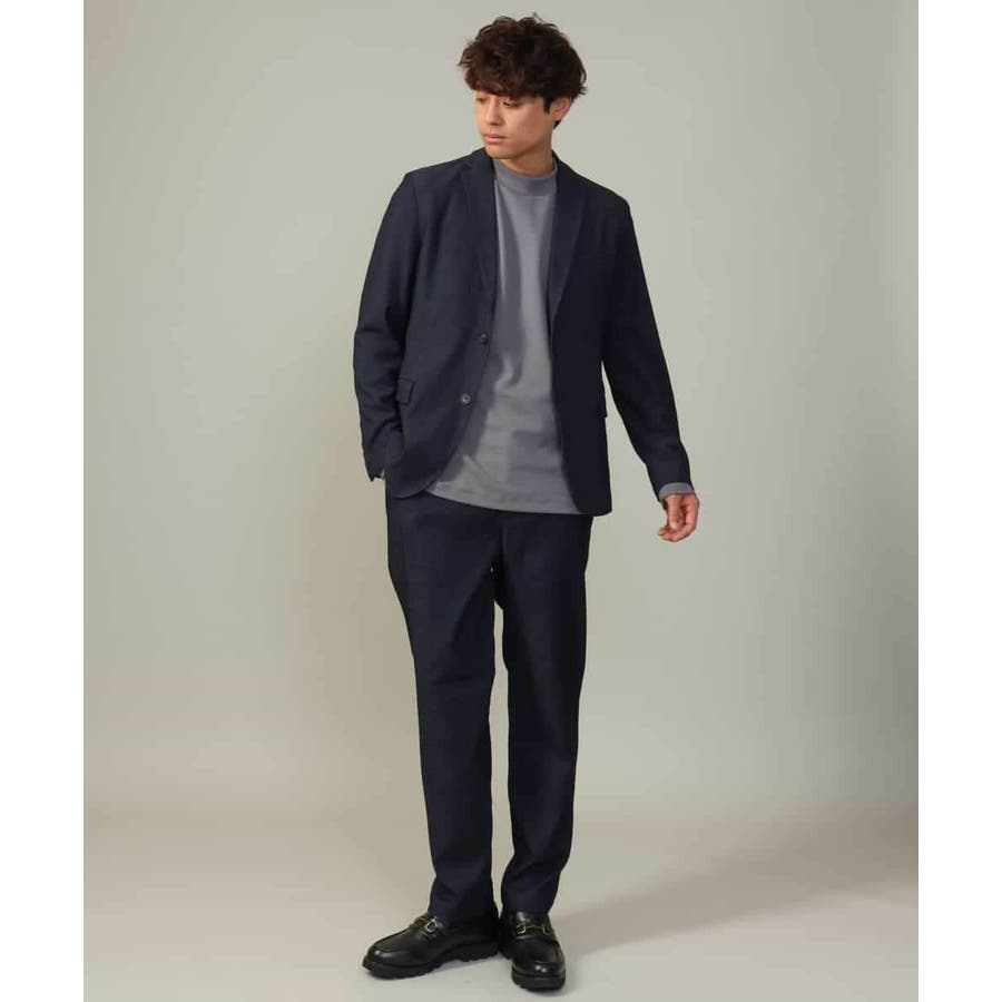 同素材のテーラードジャケットと合わせたセットアップスタイルもオススメです。