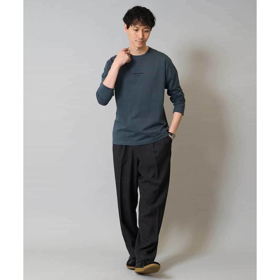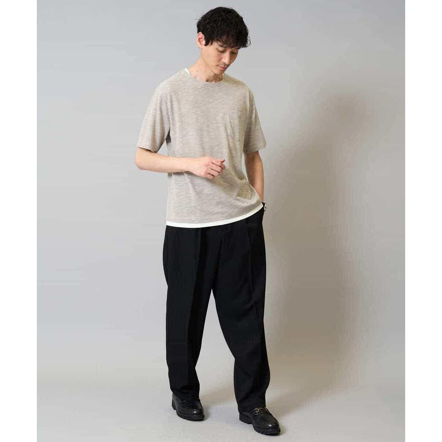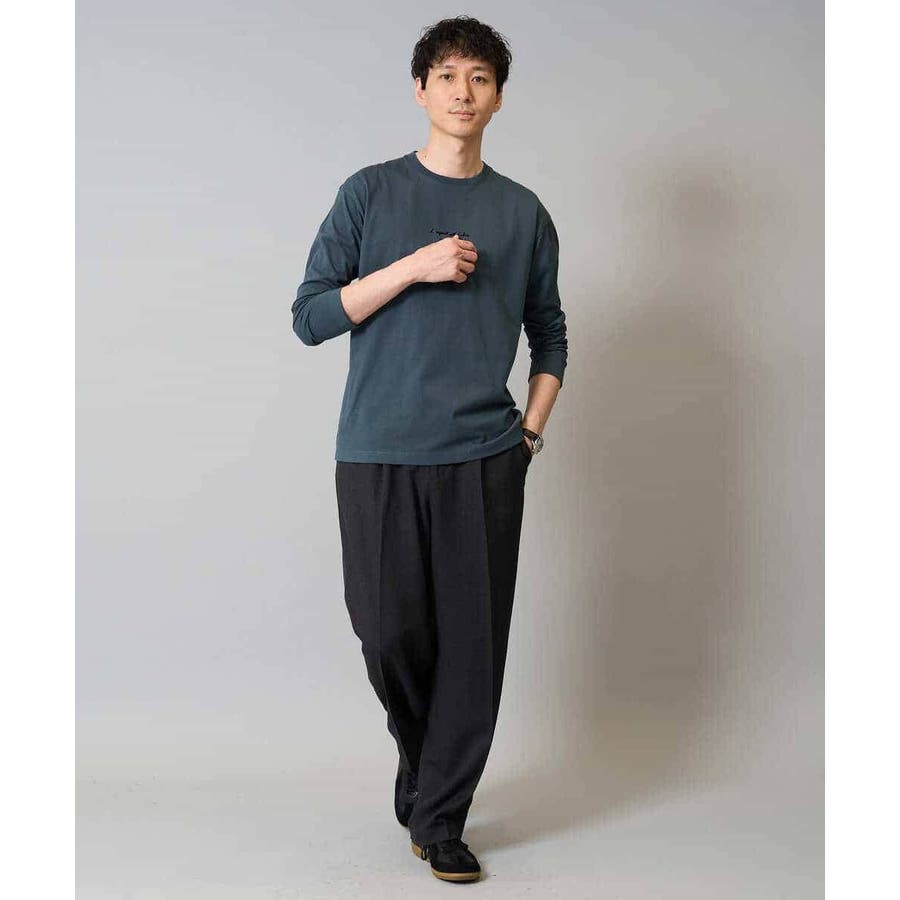 ワイドシルエットでありながらも、センタープレス入りで品のよい印象に。