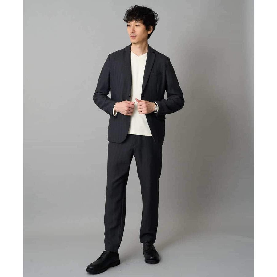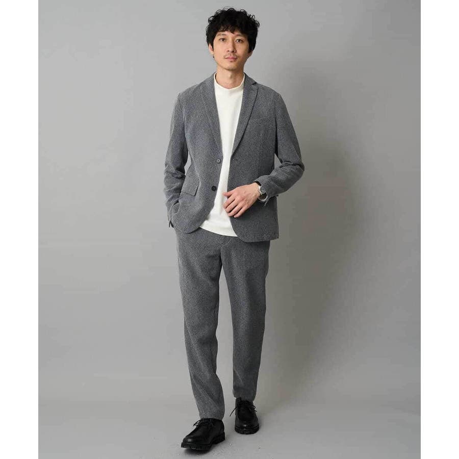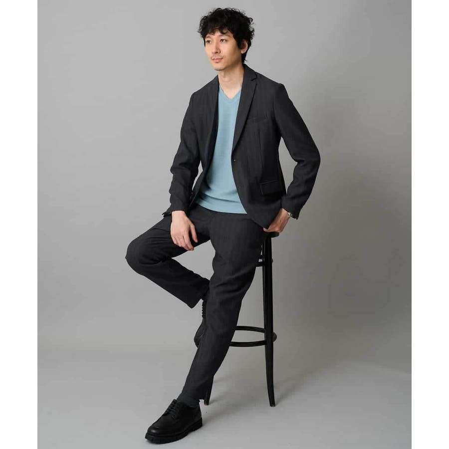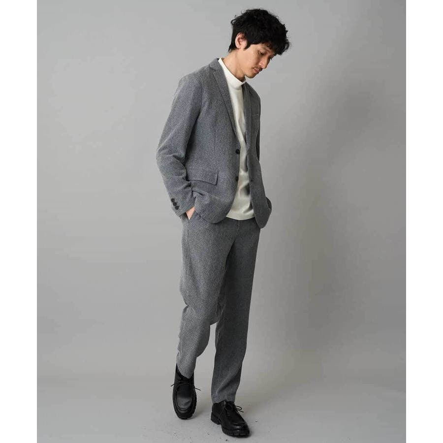同素材で展開しているジャケットとのセットアップスタイルは、ビジカジシーンにもマッチしておすすめです。
