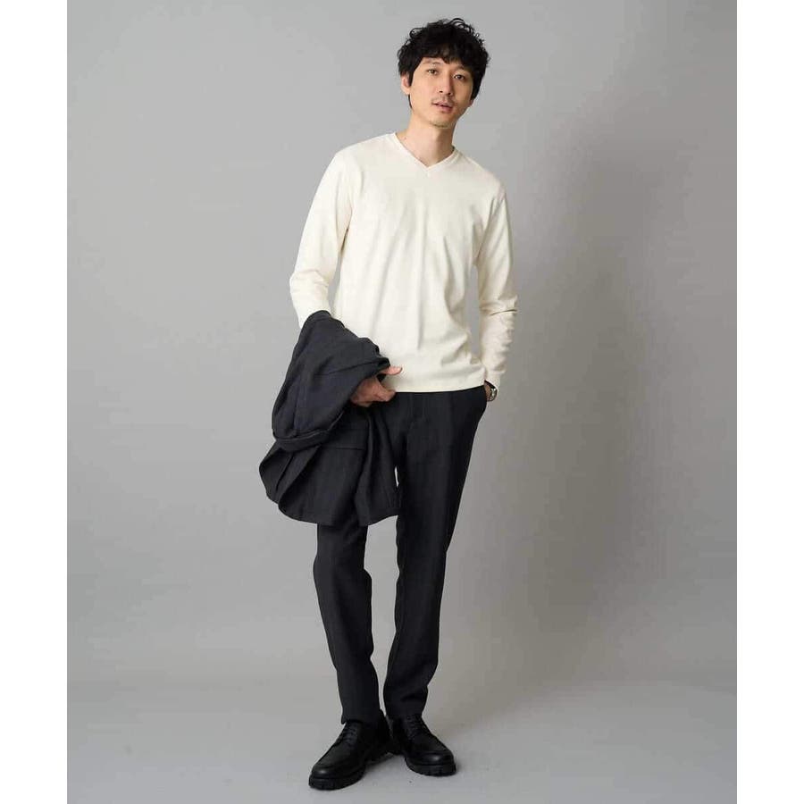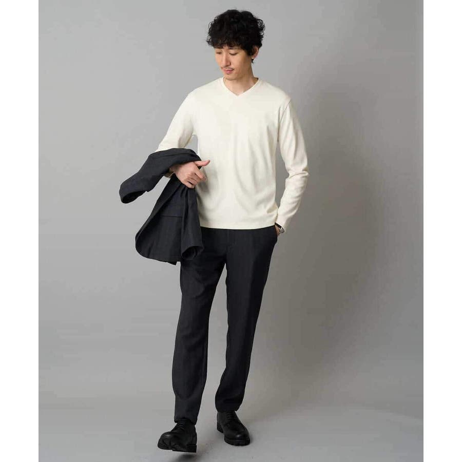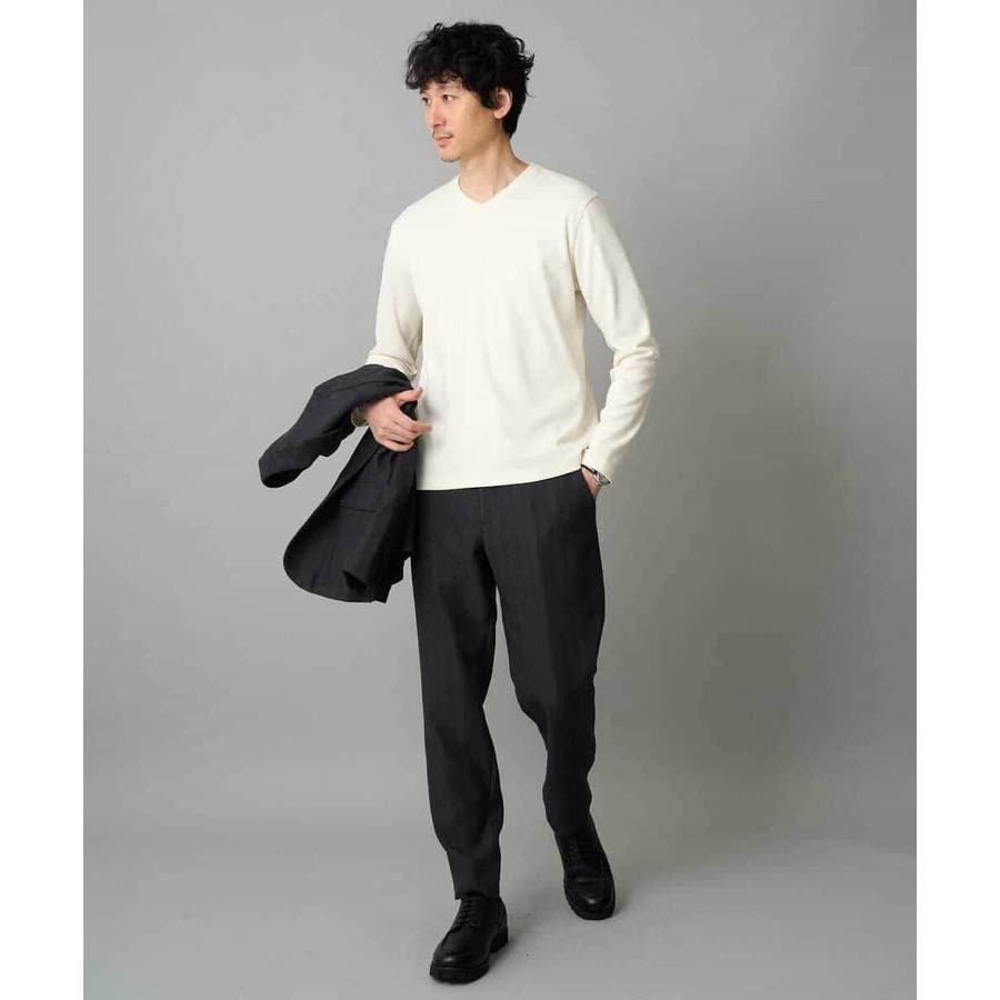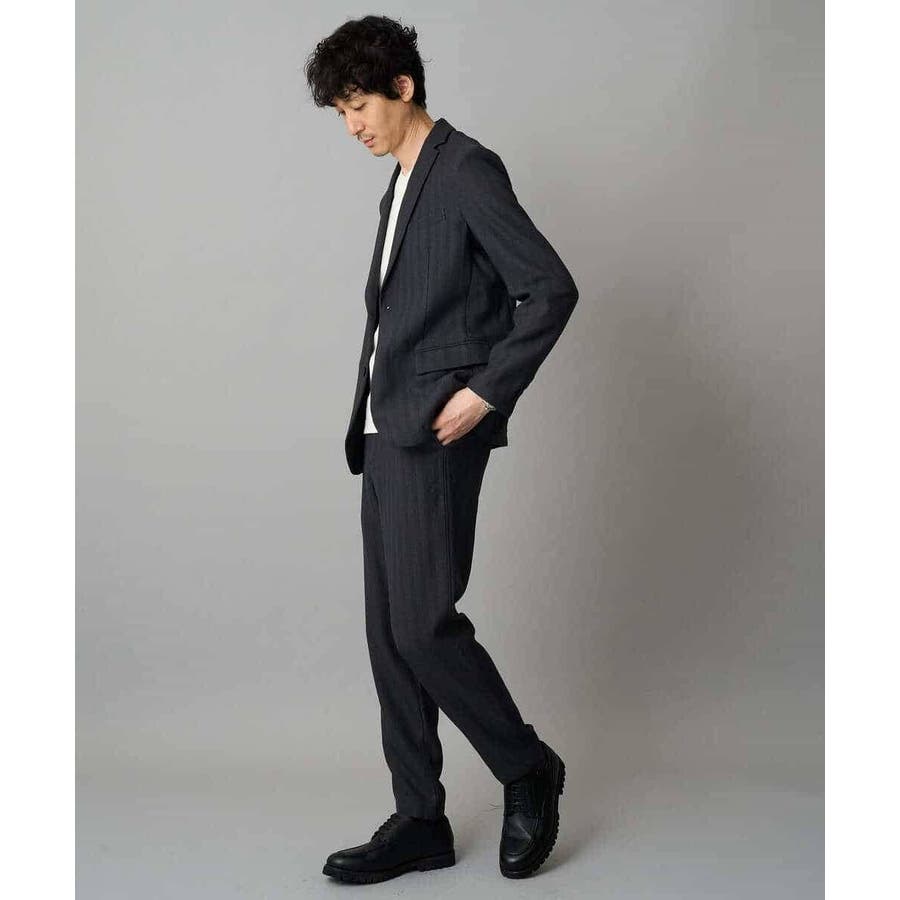 同素材で展開しているジャケットとのセットアップスタイルは、ビジカジシーンにもマッチしておすすめです。