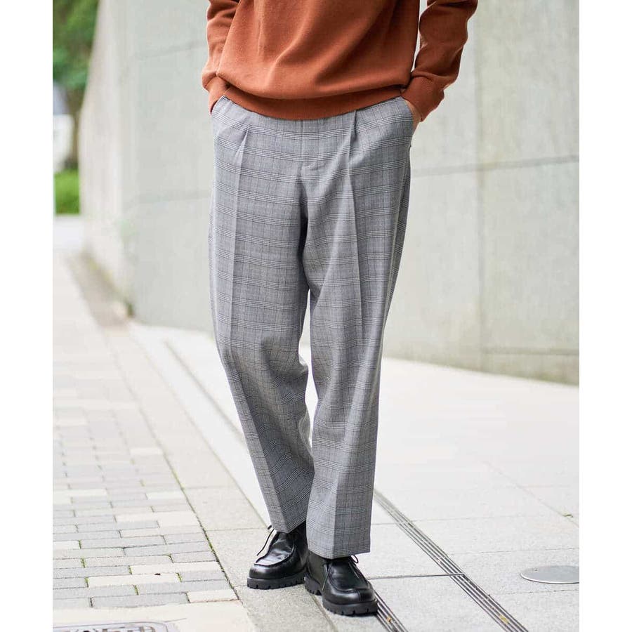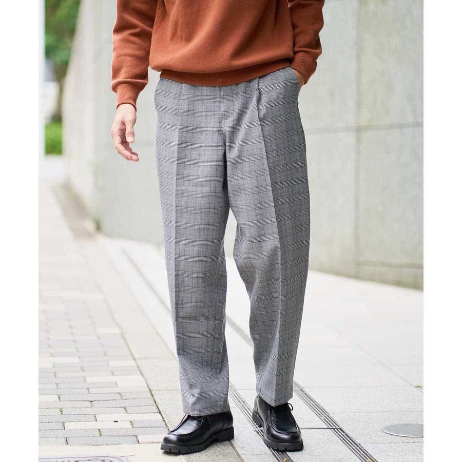 ◆高機能素材を使用したクラシックなチェック柄のワイドスラックス◆