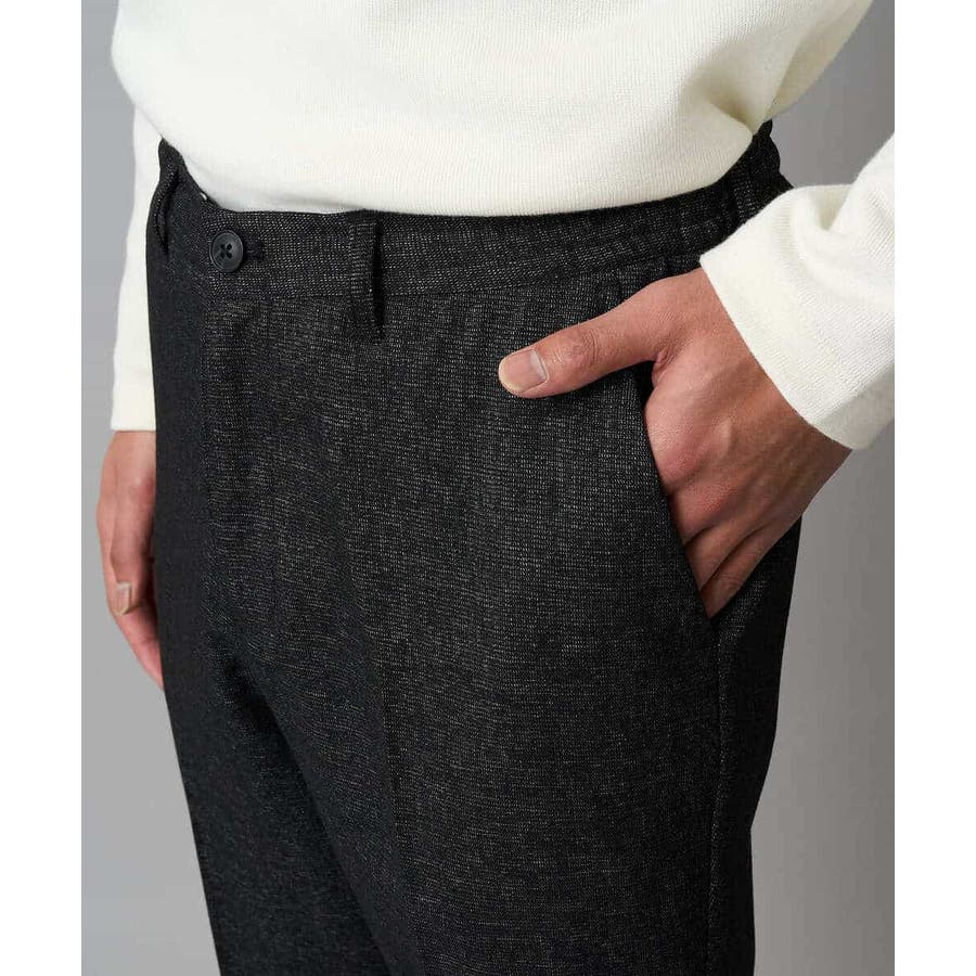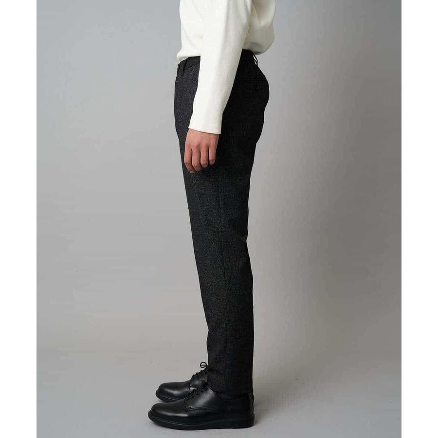 やや細めでテーパードしたシルエットにセンタープレスを入れているので、オンオフ兼用で使用可能なきれいめな見え方に仕上げています。