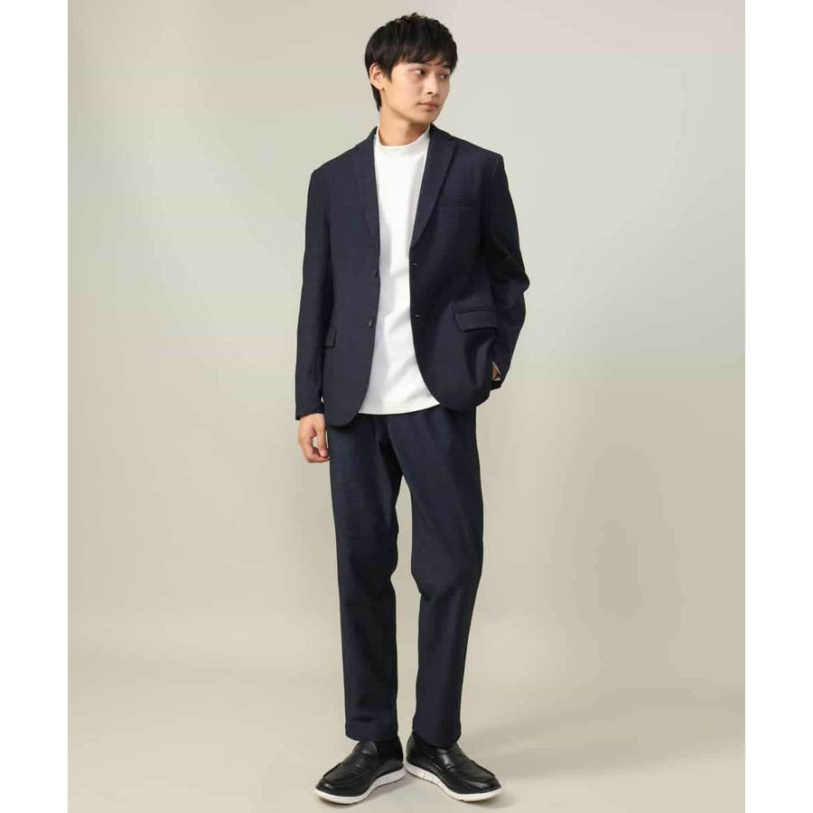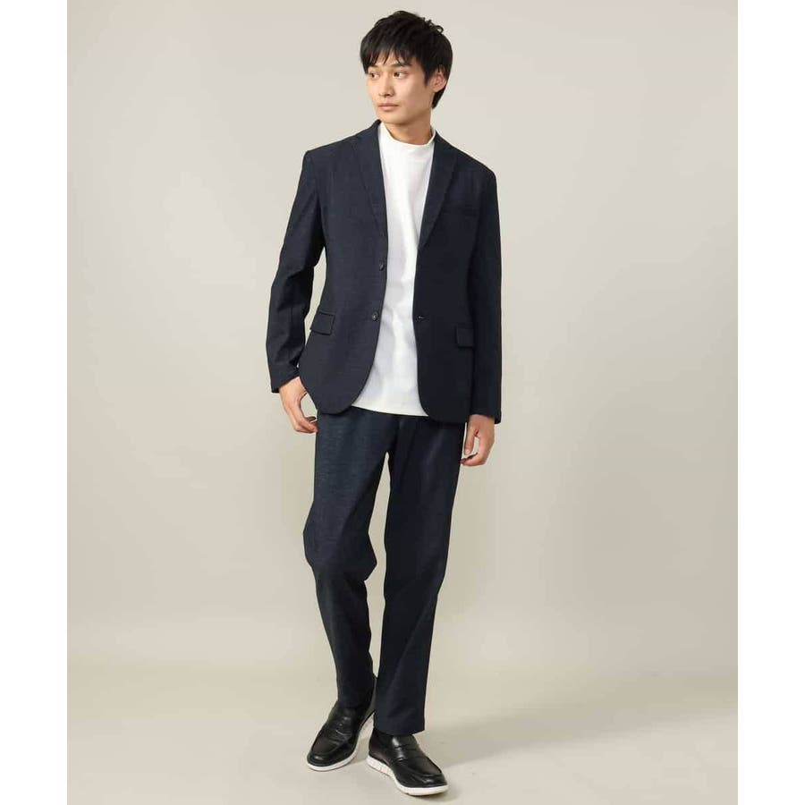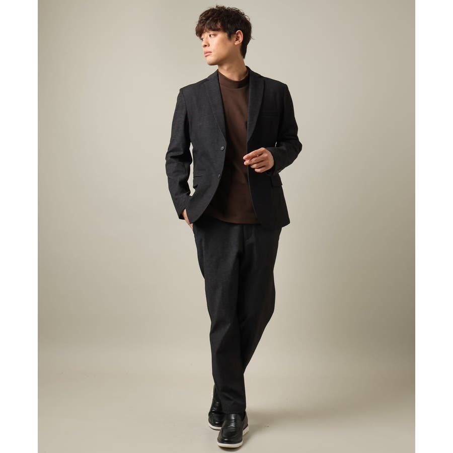 同素材のテーラードジャケットと合わせたセットアップスタイルもオススメです。
