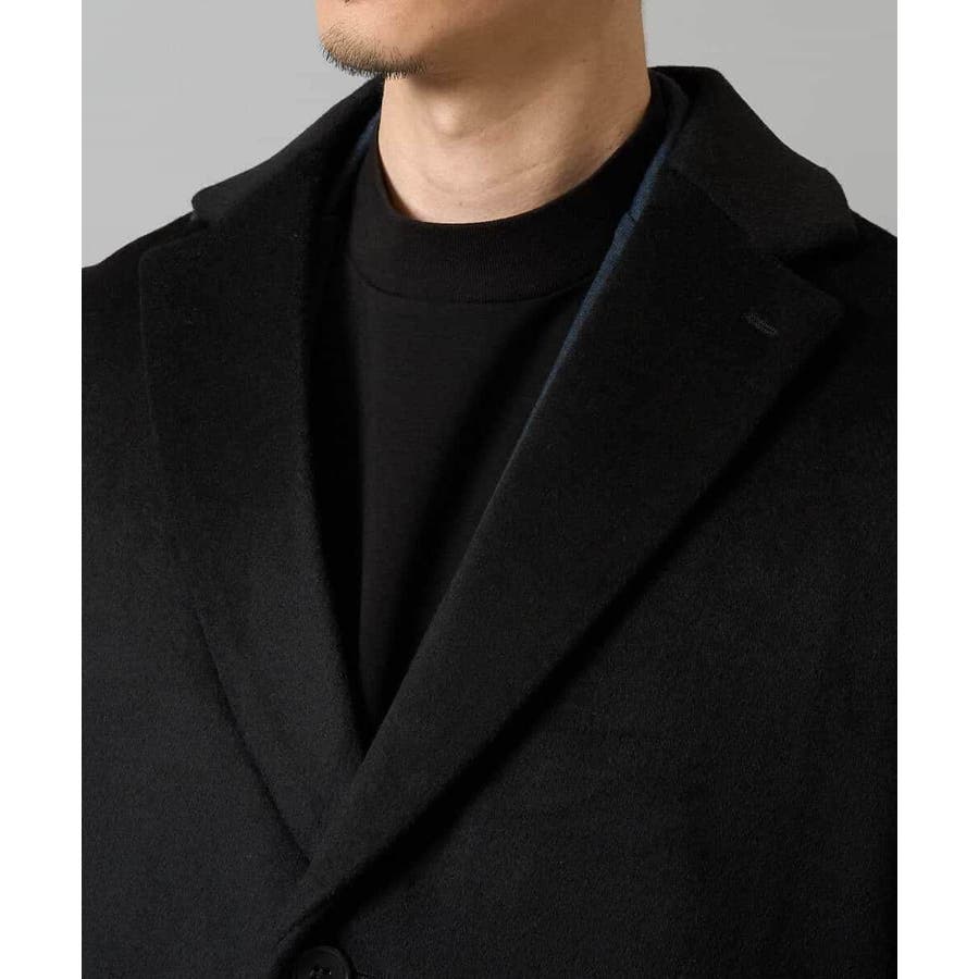 ビーバー加工を施した生地が特徴的なチェスターコート。