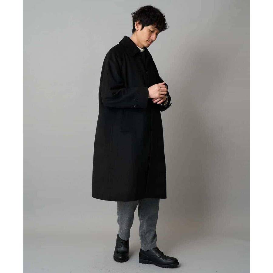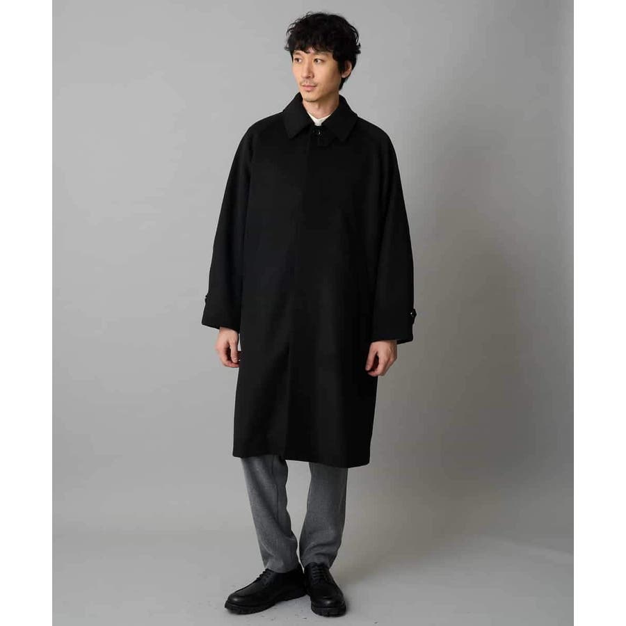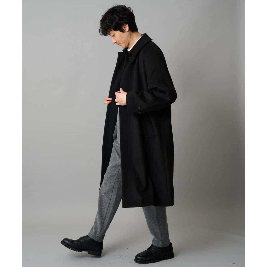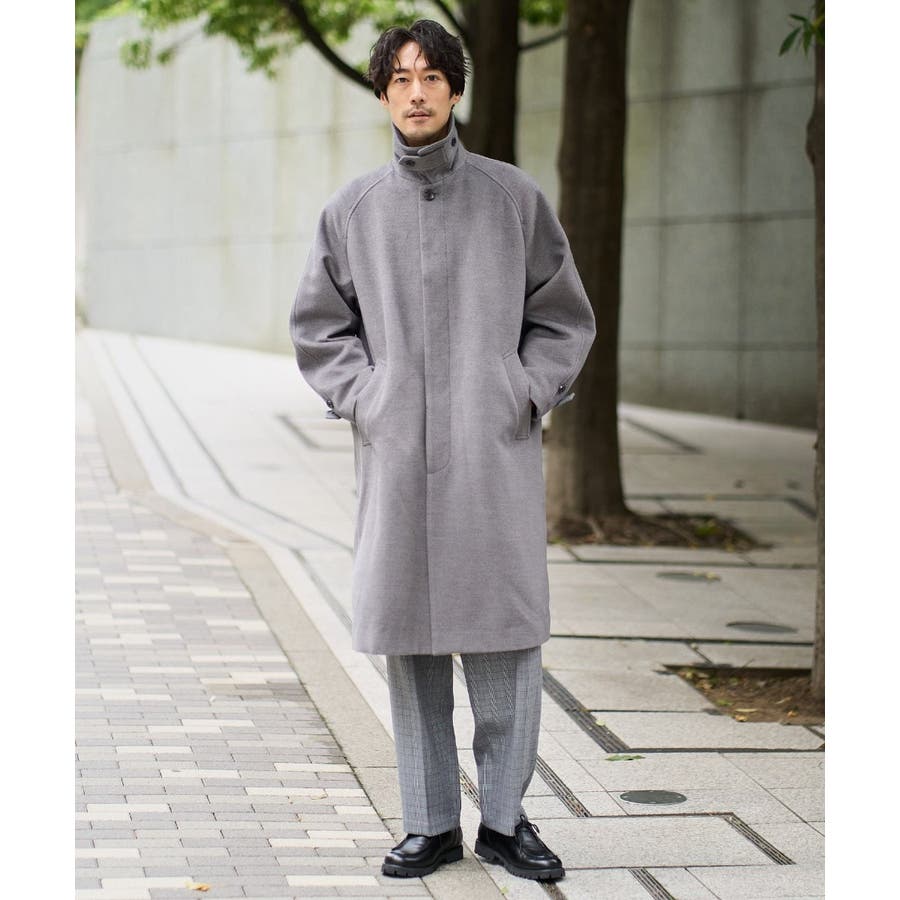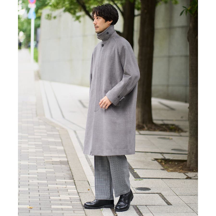 ビーバー加工を施した生地が高見えするワイドシルエットステンカラーコート。
