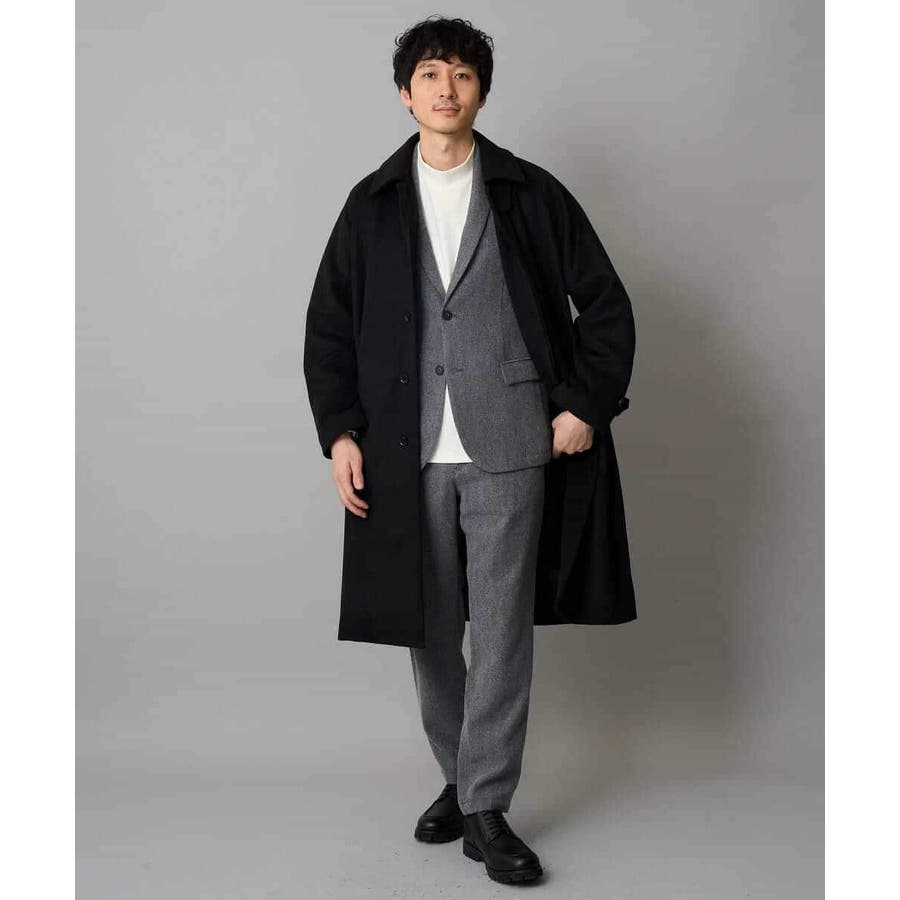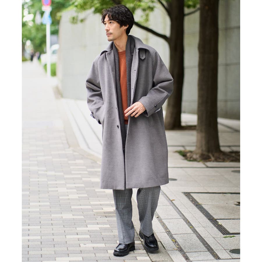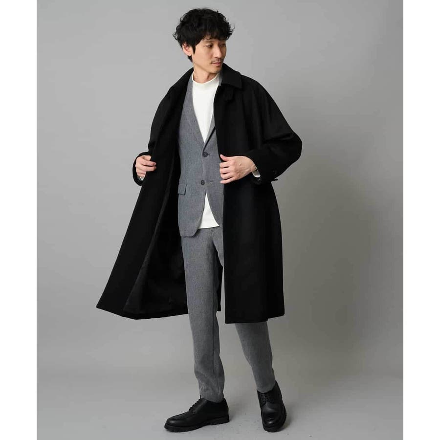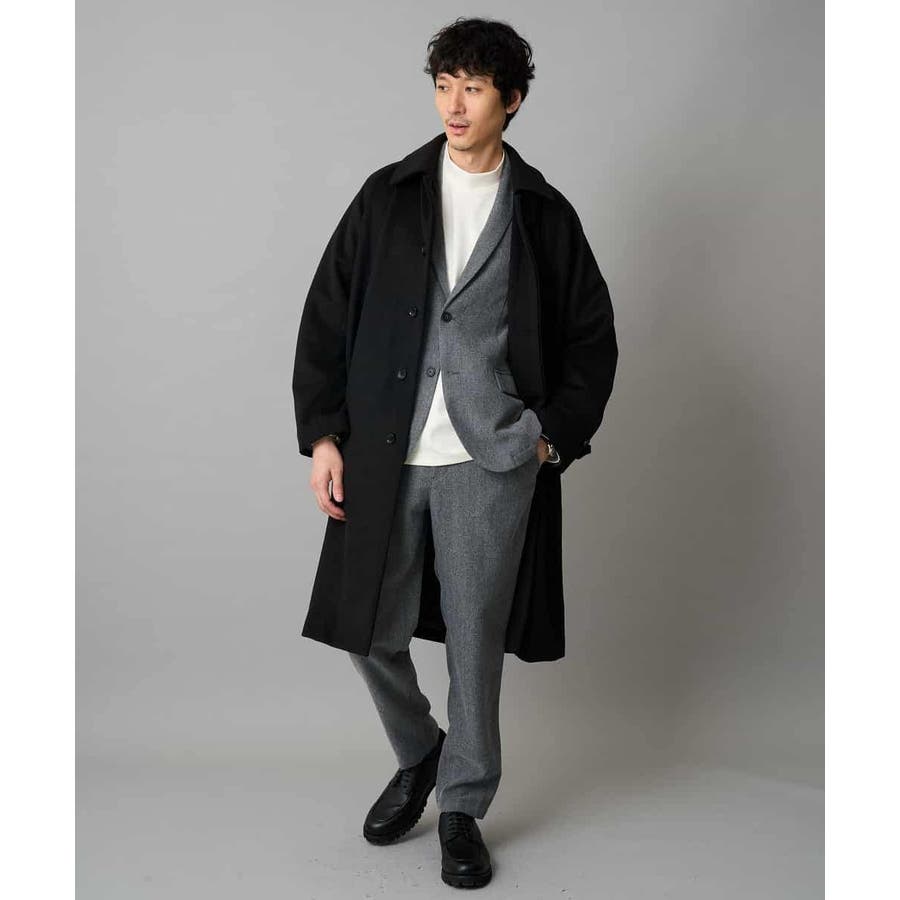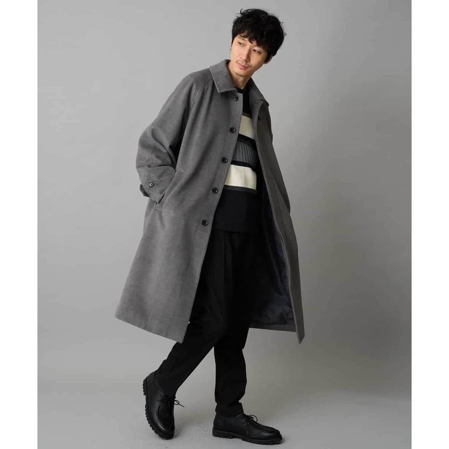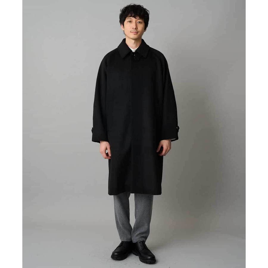 ビーバー加工を施した生地が高見えするワイドシルエットステンカラーコート。