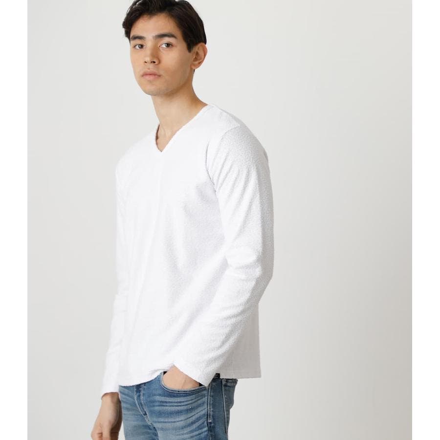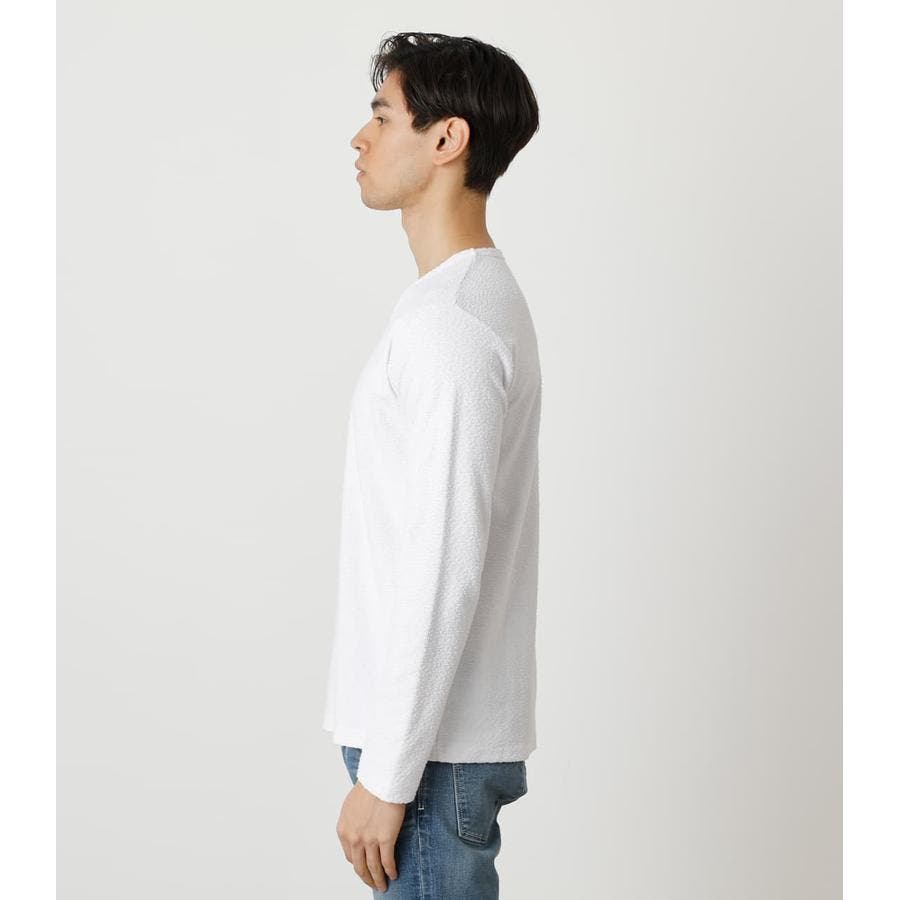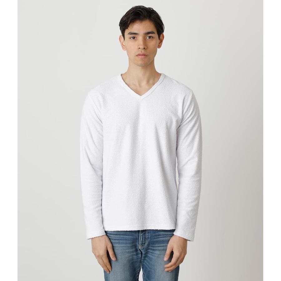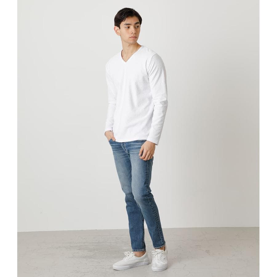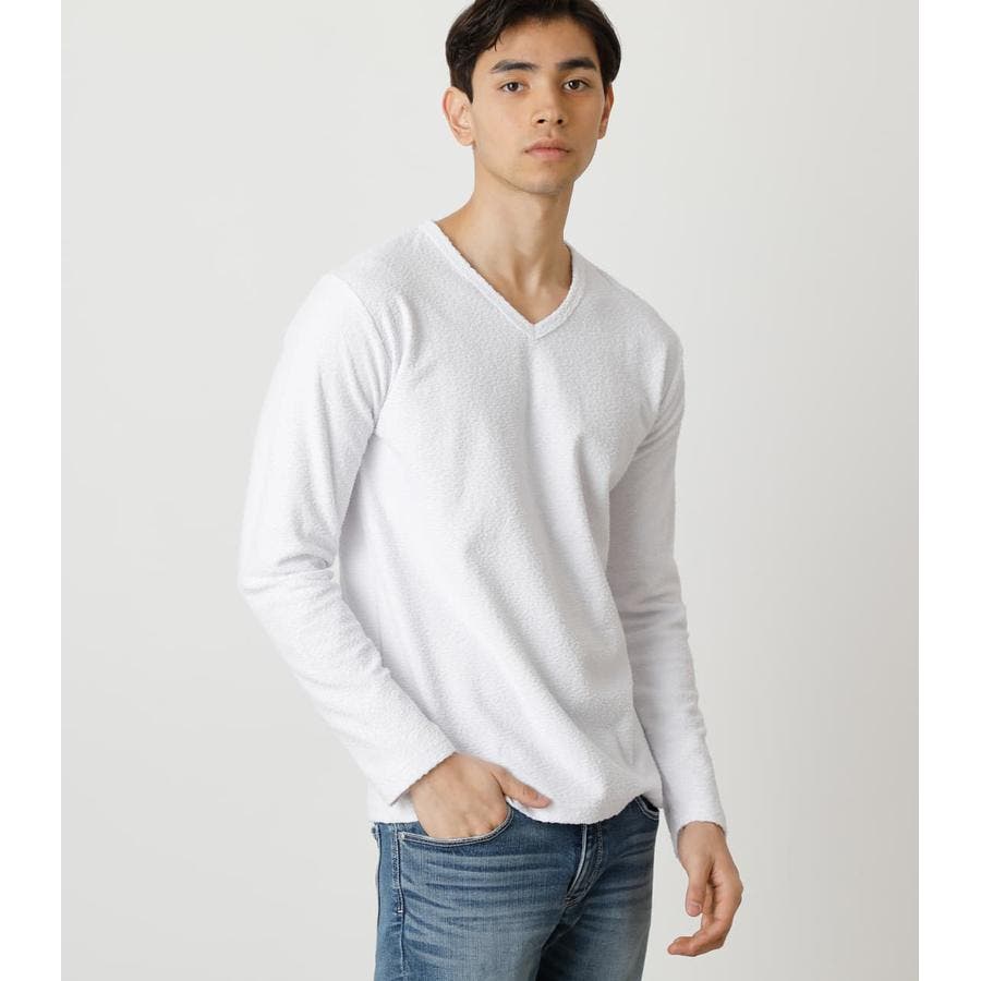 ・見た目通りの柔らかな質感が最大の魅力。ノンストレスな着心地もさることながら生地自体に立体感があって陰影がつきやすいので、Tシャツ1枚の着こなしでも見映えする。