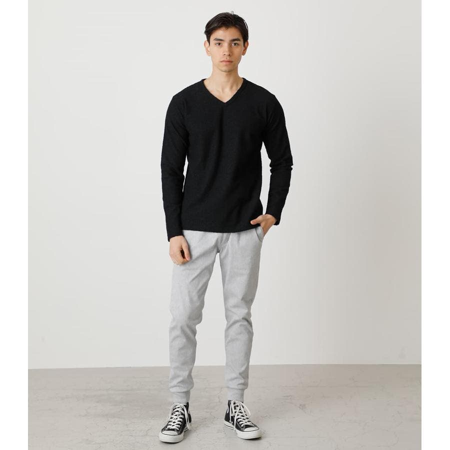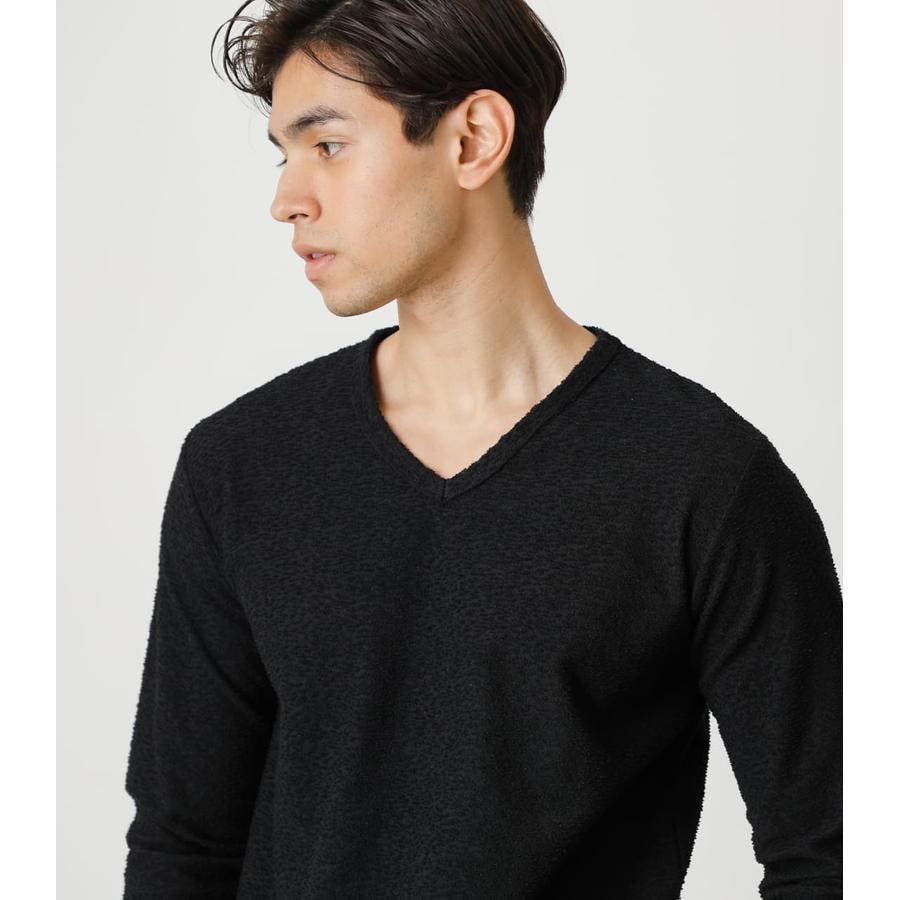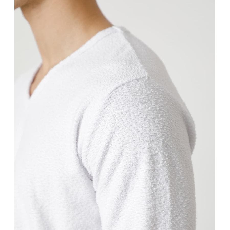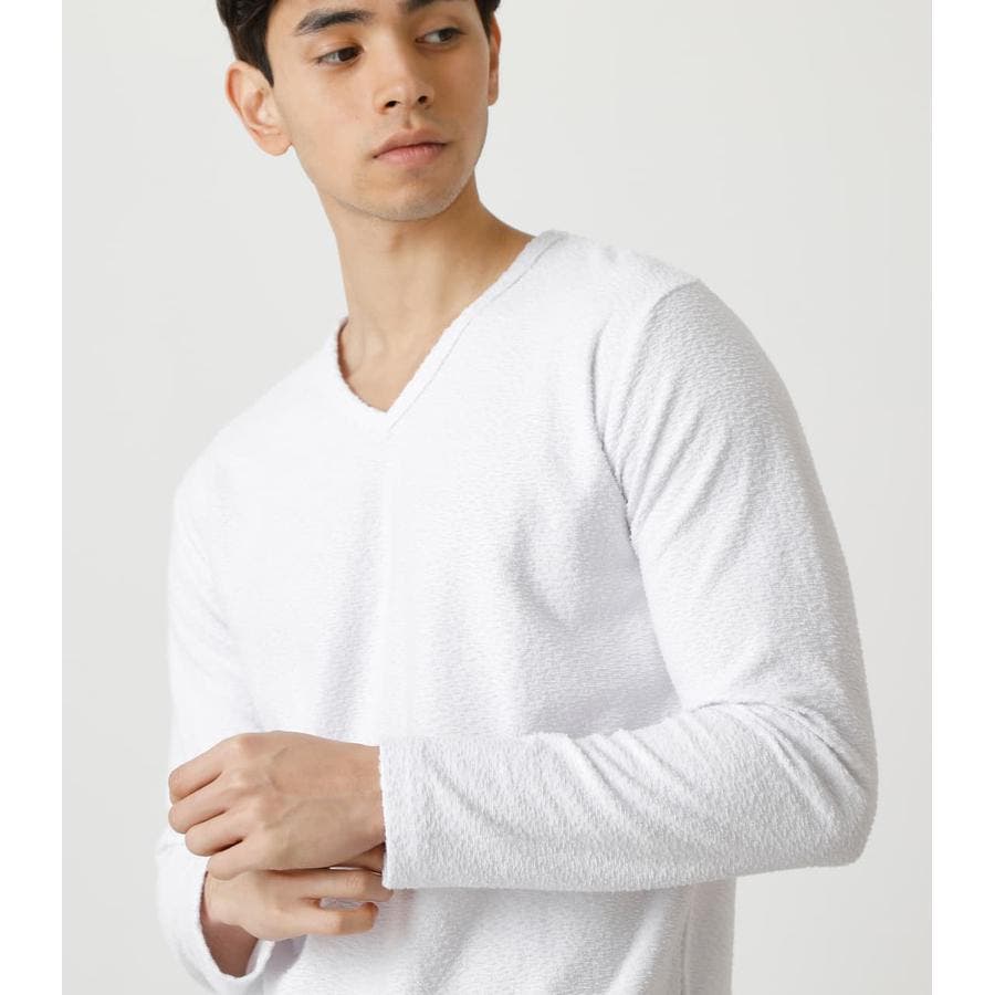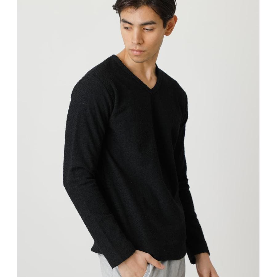 ・見た目通りの柔らかな質感が最大の魅力。ノンストレスな着心地もさることながら生地自体に立体感があって陰影がつきやすいので、Tシャツ1枚の着こなしでも見映えする。