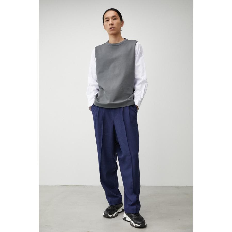 ・スラックスと合わせてキレイ目なスタイルに。