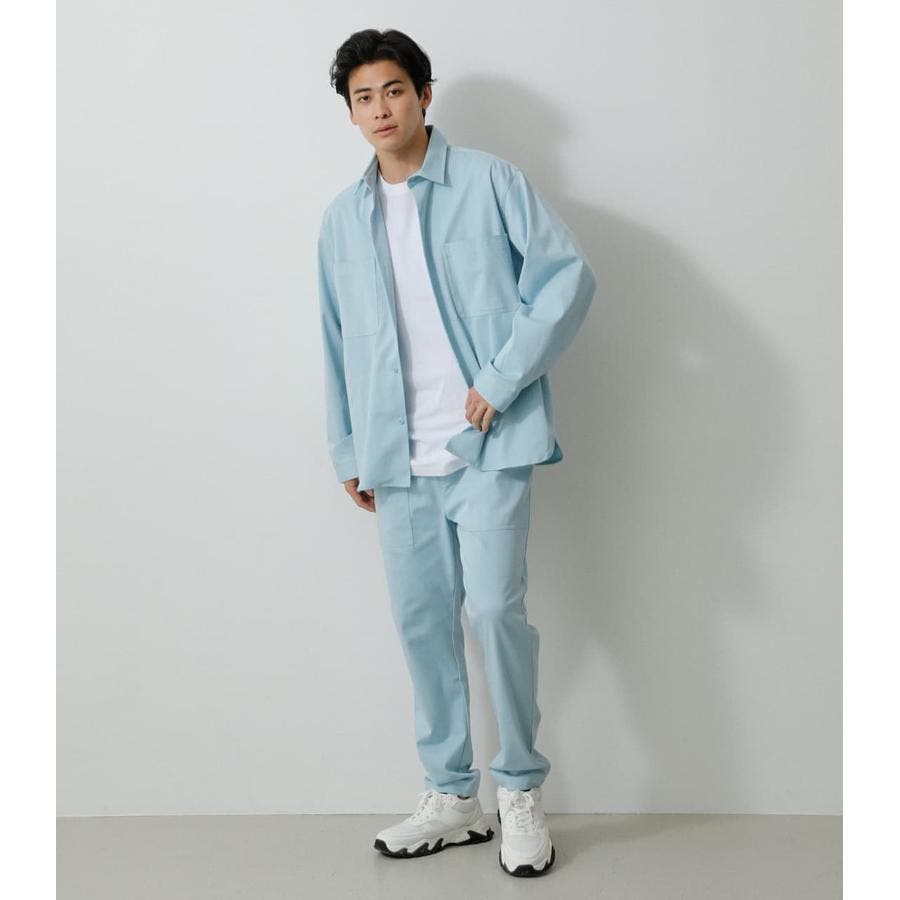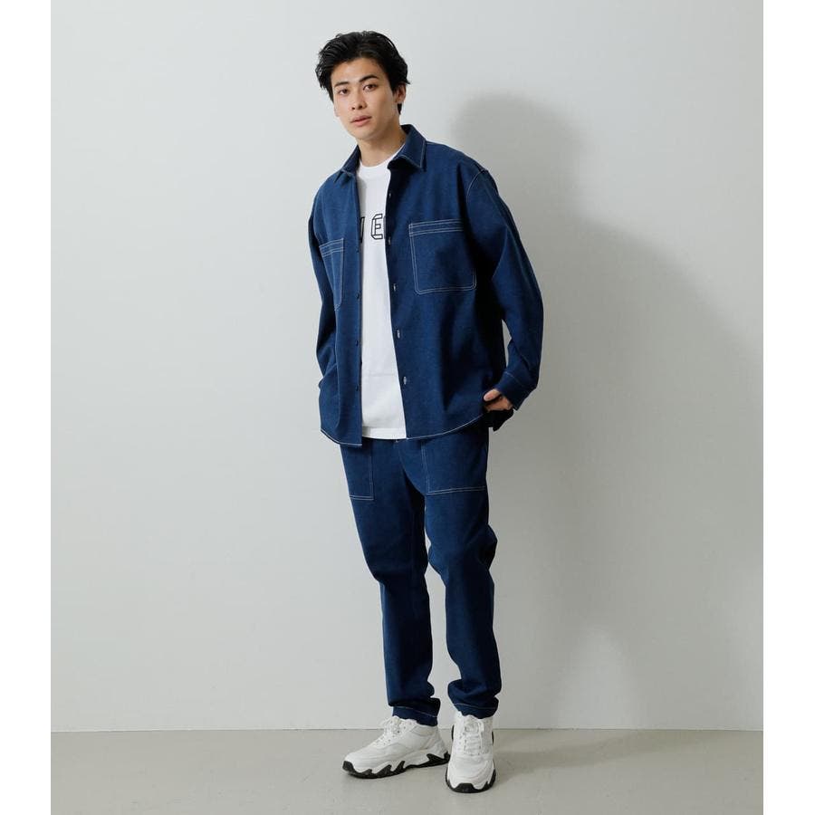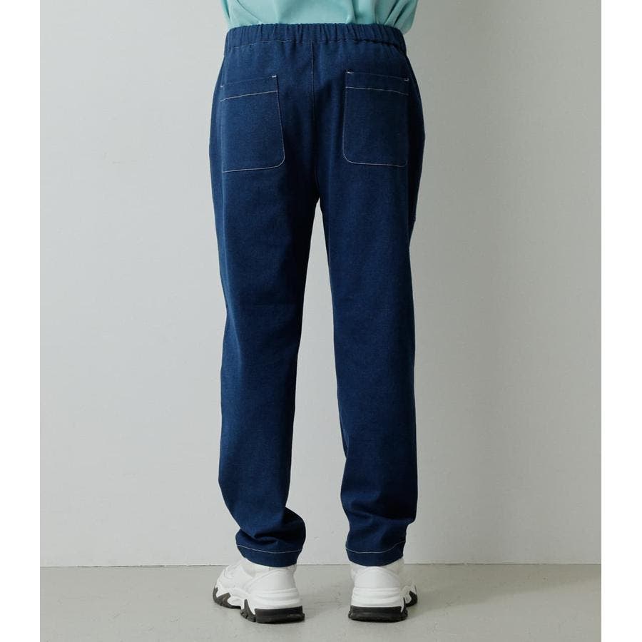 ・BLUはストレッチデニムを使用しています。厚みもあり、シルエットがきれいに出ます。ストレッチ素材のためストレスフリーで着用できます。デニム素材のため色落ちに注意が必要です。