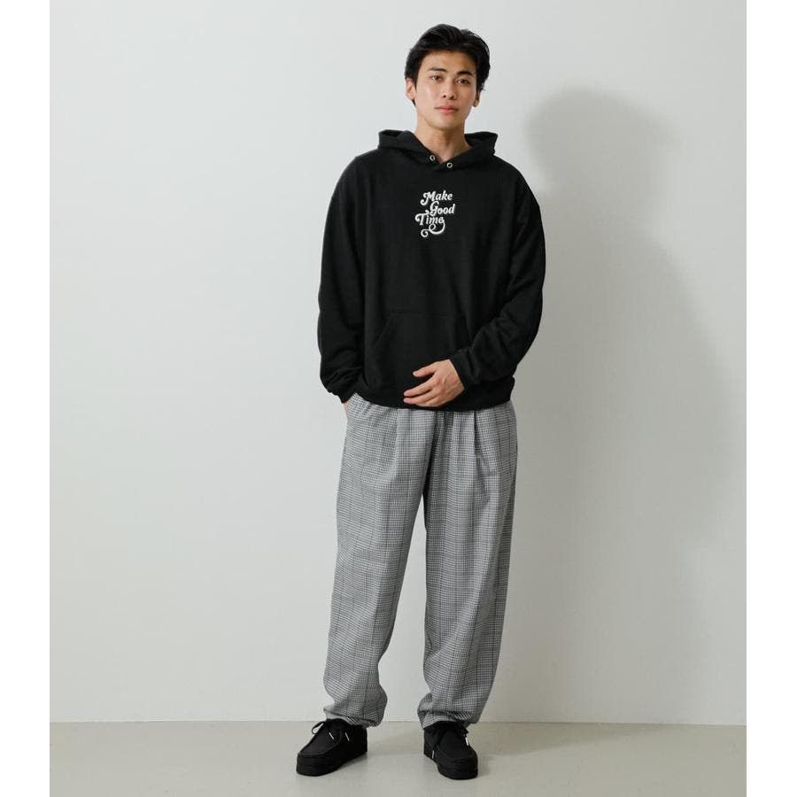 ・ストライプやチェックパンツと合わせてストリートライクなスタイルに。