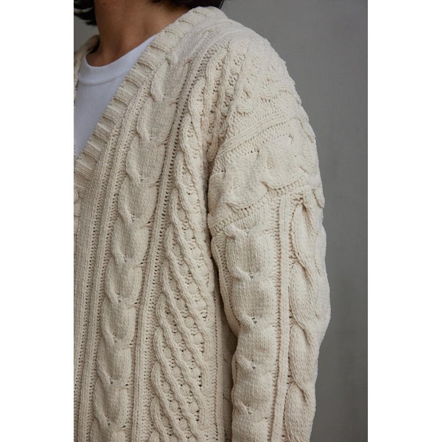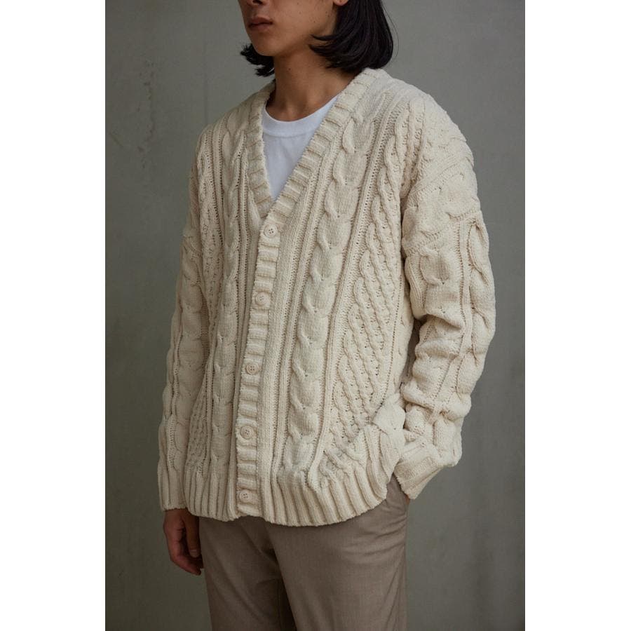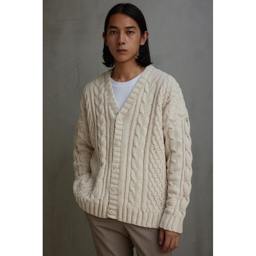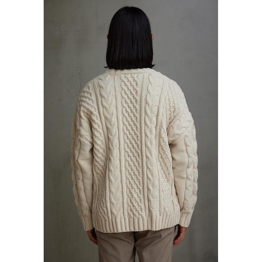 ・編み柄が引き立つように編み、風合い出しにこだわった一着です。