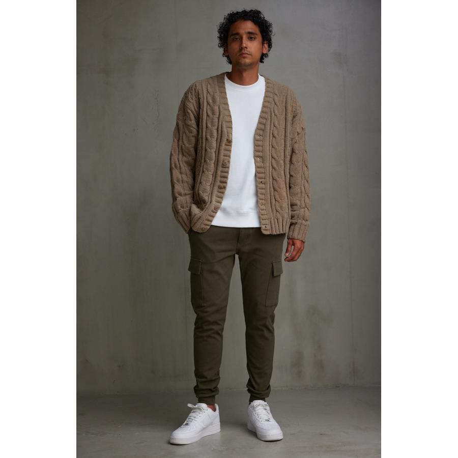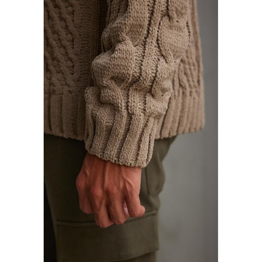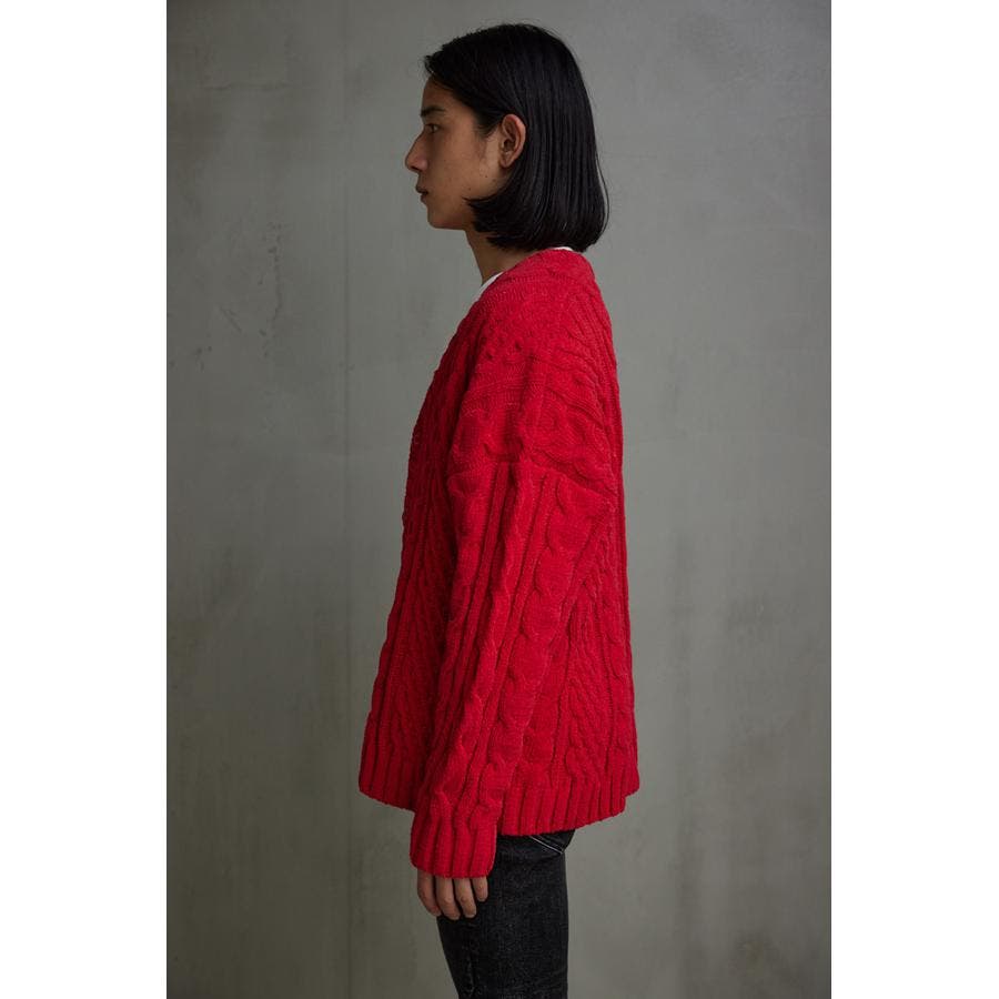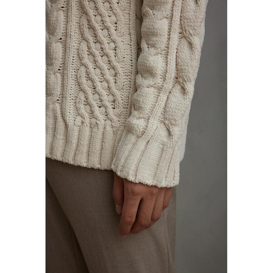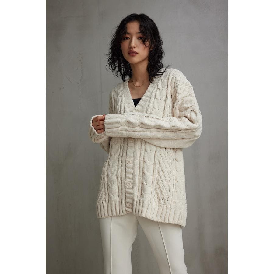 ・編み柄が引き立つように編み、風合い出しにこだわった一着です。