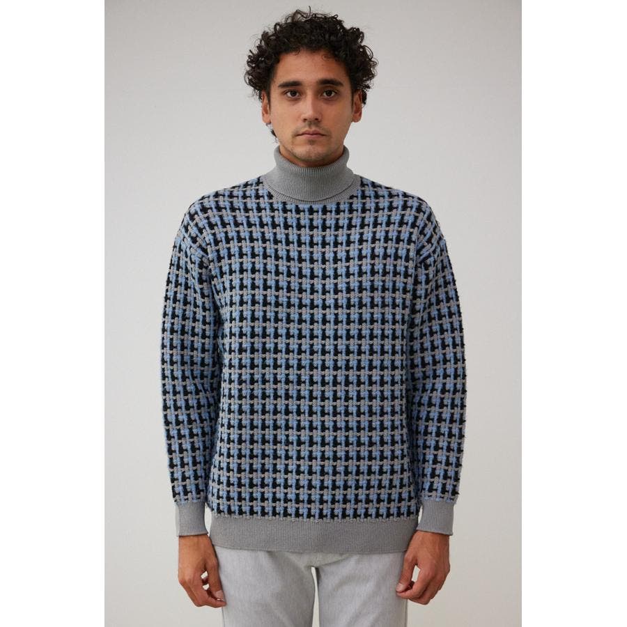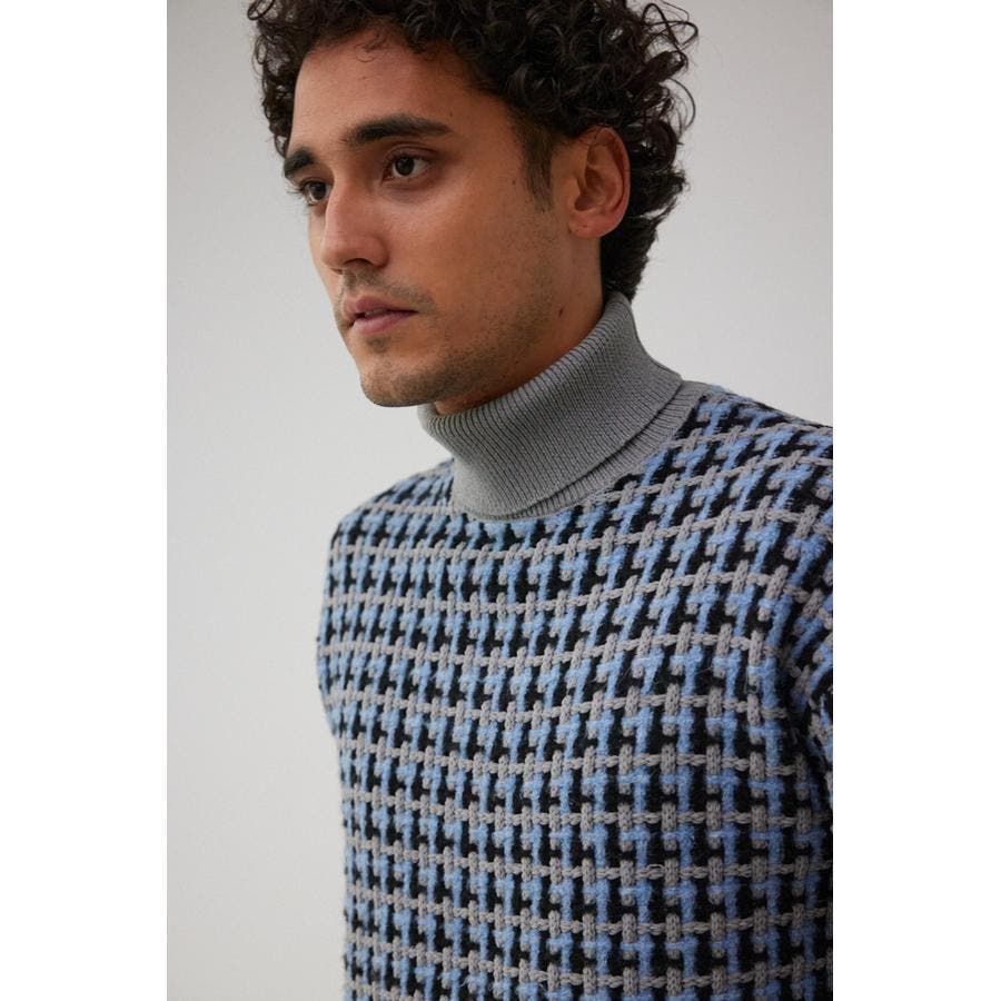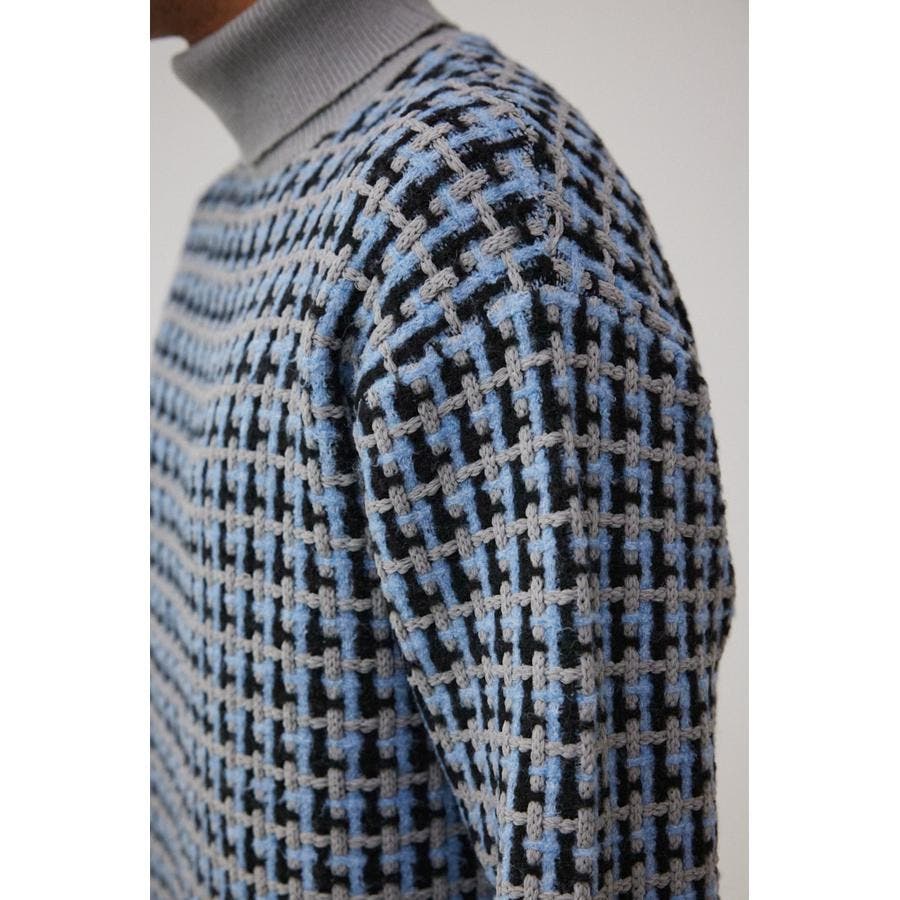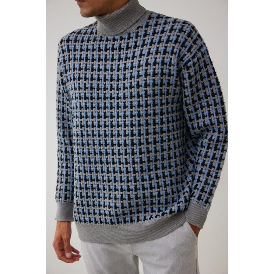 総柄編みタートルネックニット