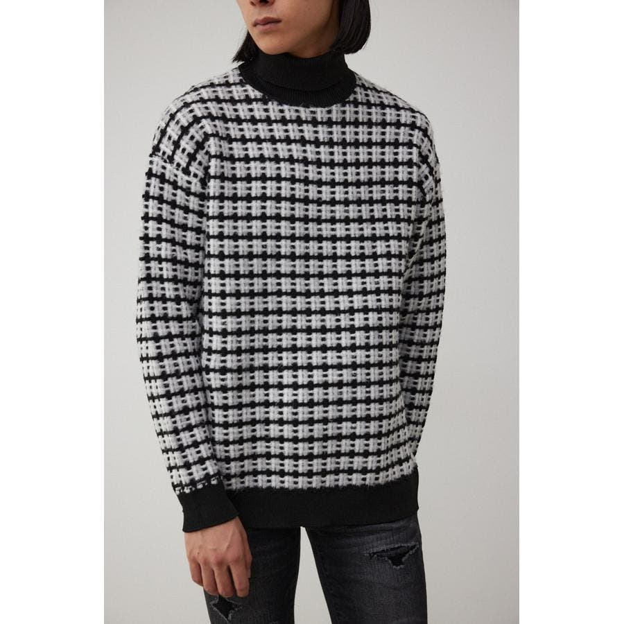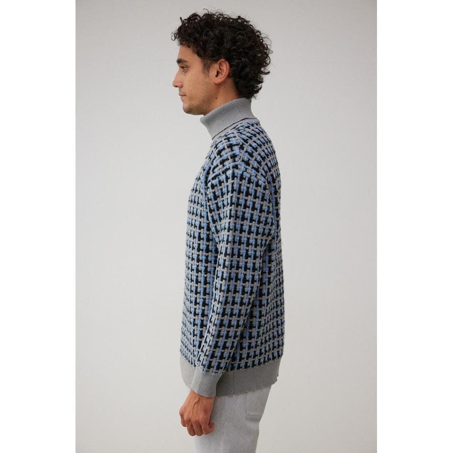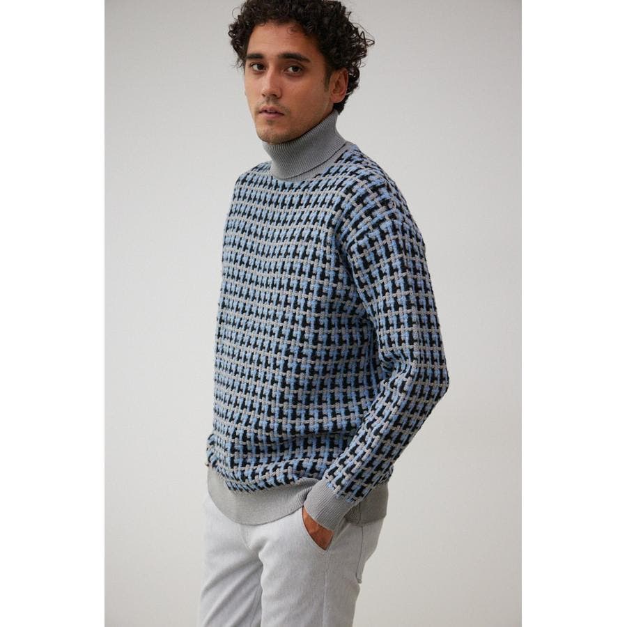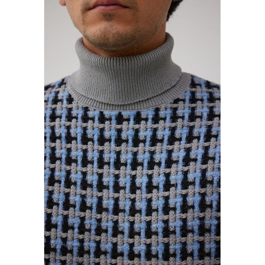 総柄編みタートルネックニット