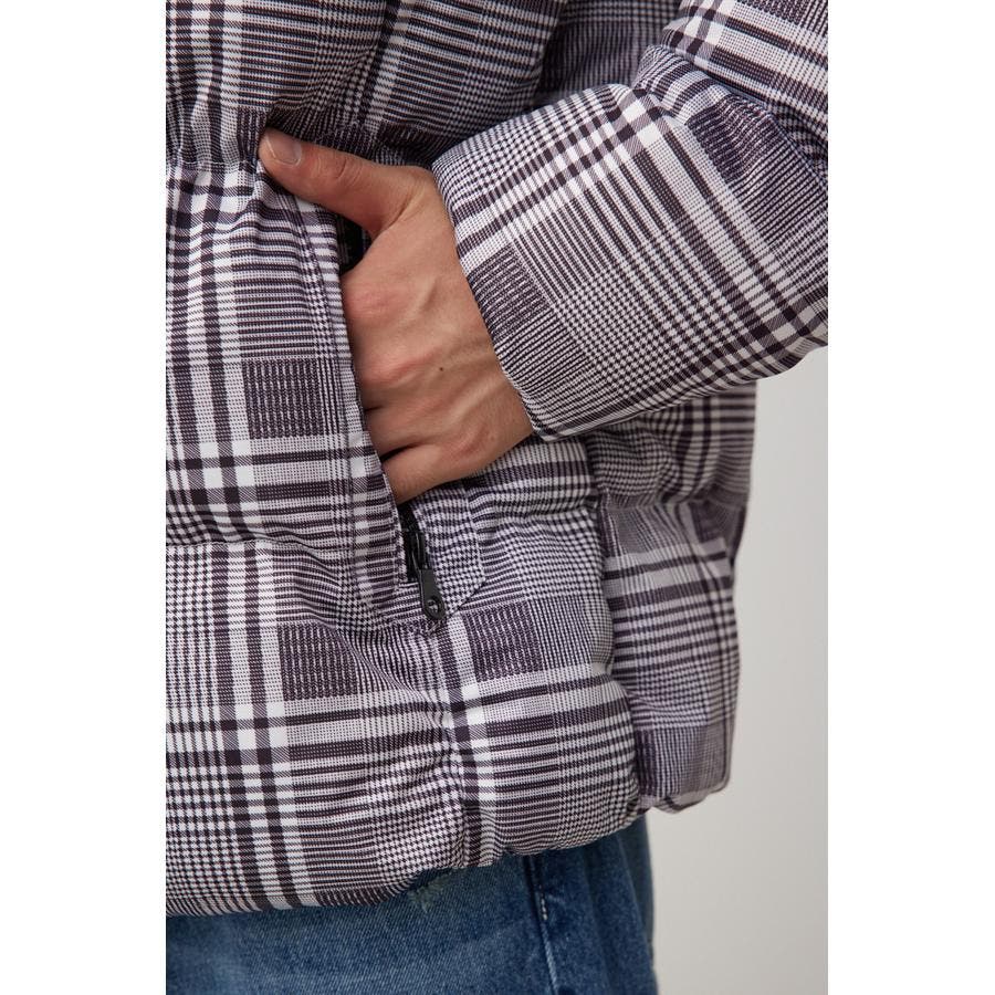 ・グレンチェックと総柄プリントが他にはないデザインで、この冬一押しのアウターです。