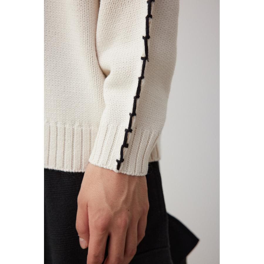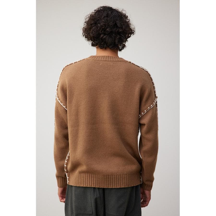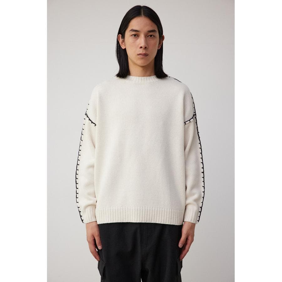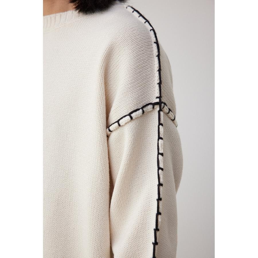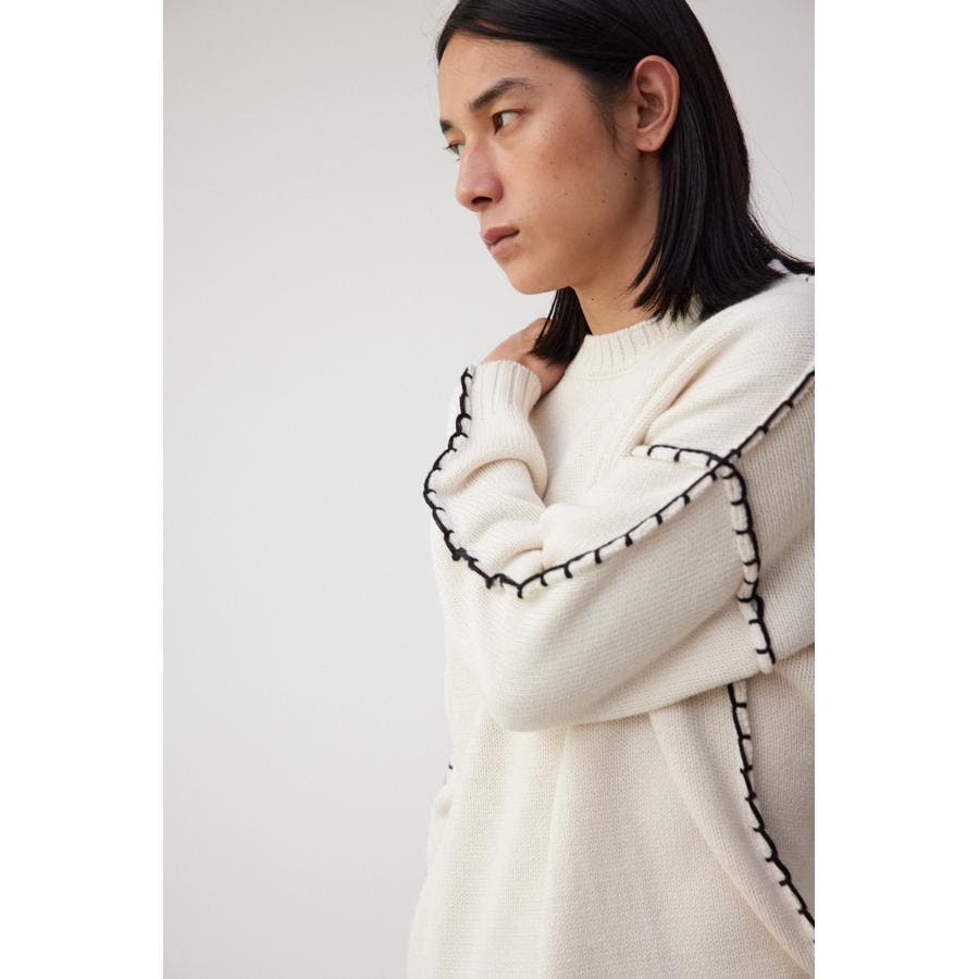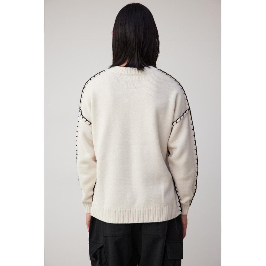 ・ステッチ使いが目を惹くブランケットステッチニットプルオーバー。