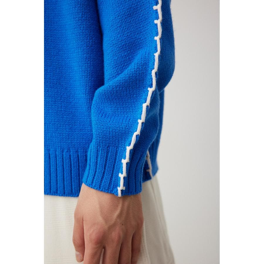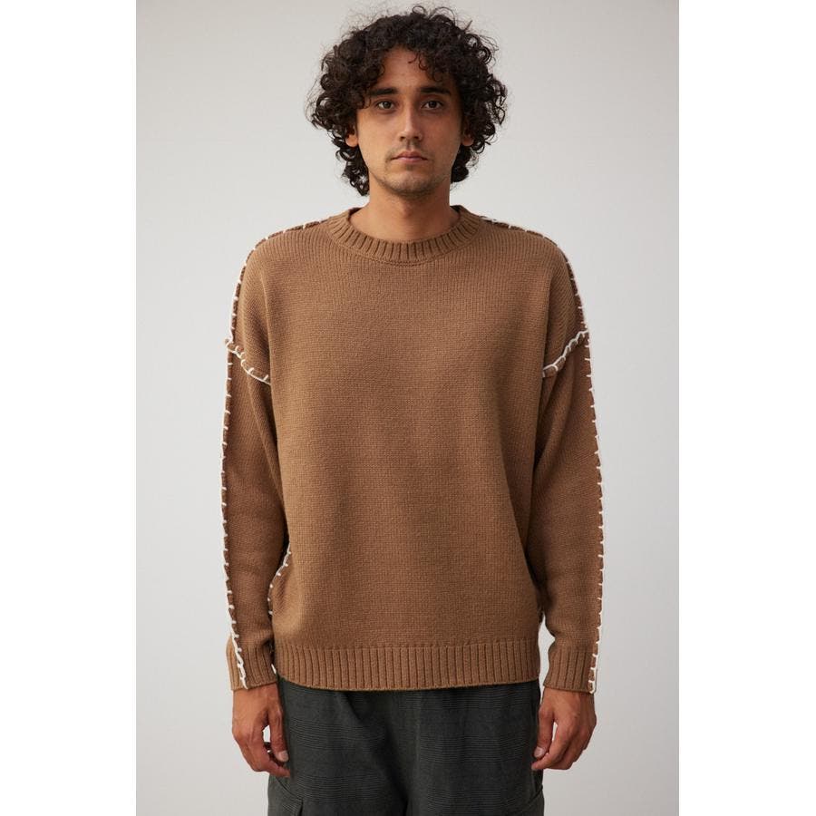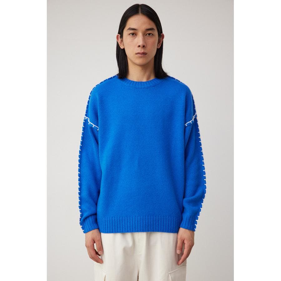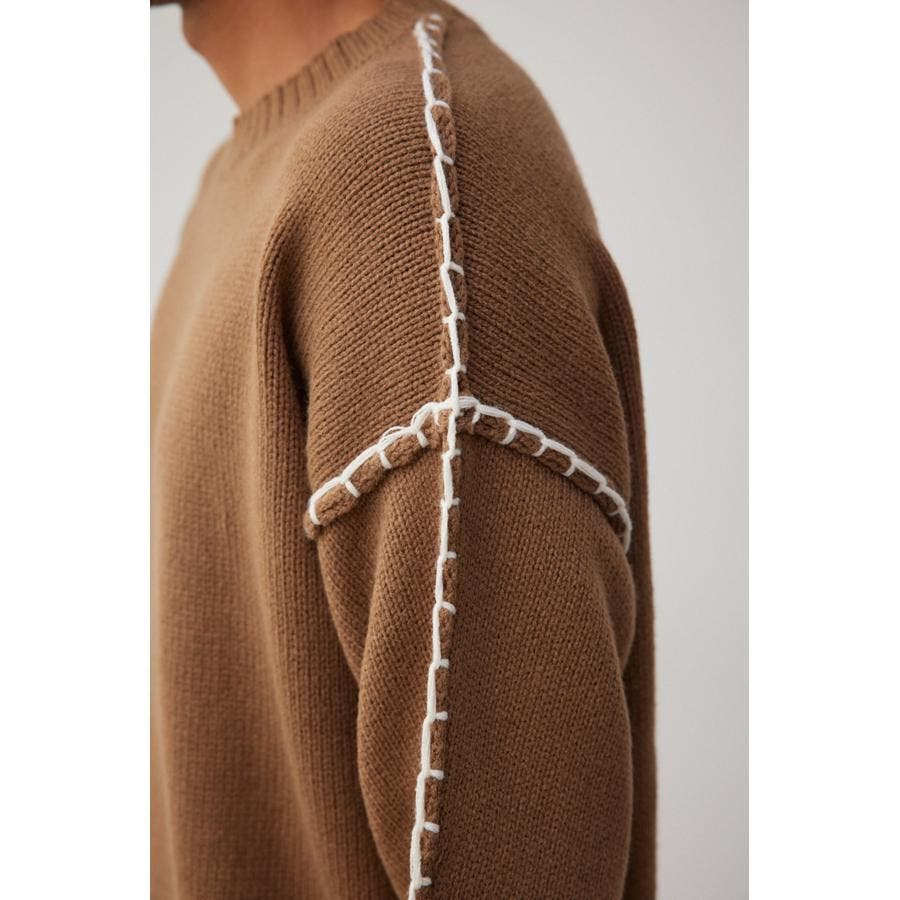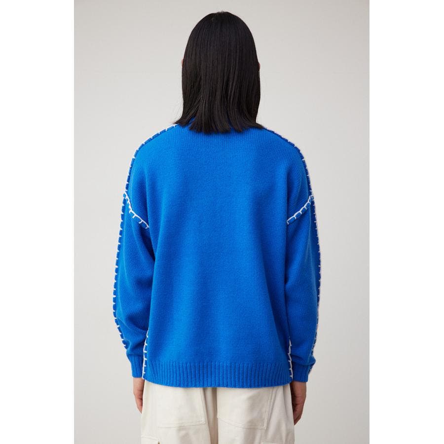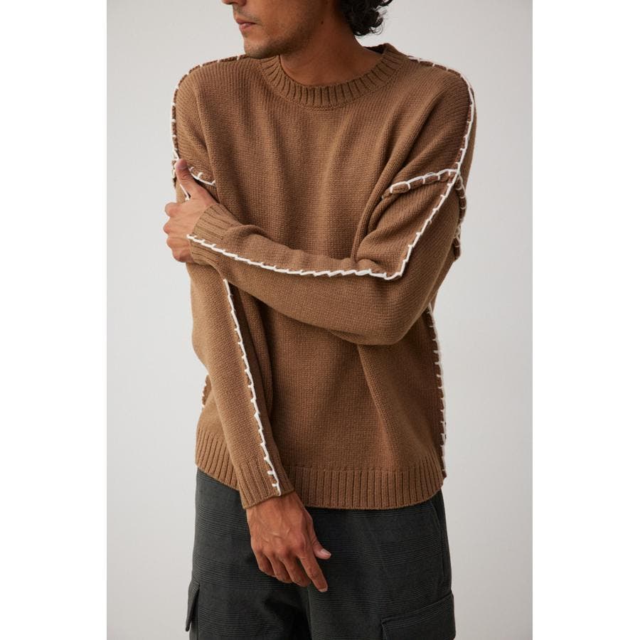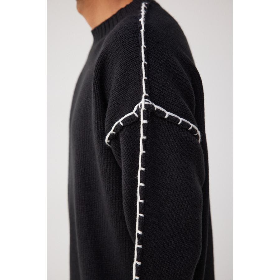 ・ステッチ使いが目を惹くブランケットステッチニットプルオーバー。