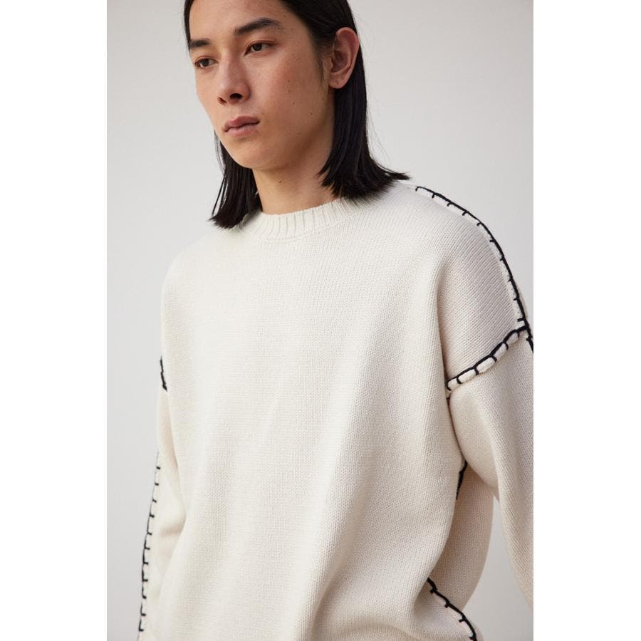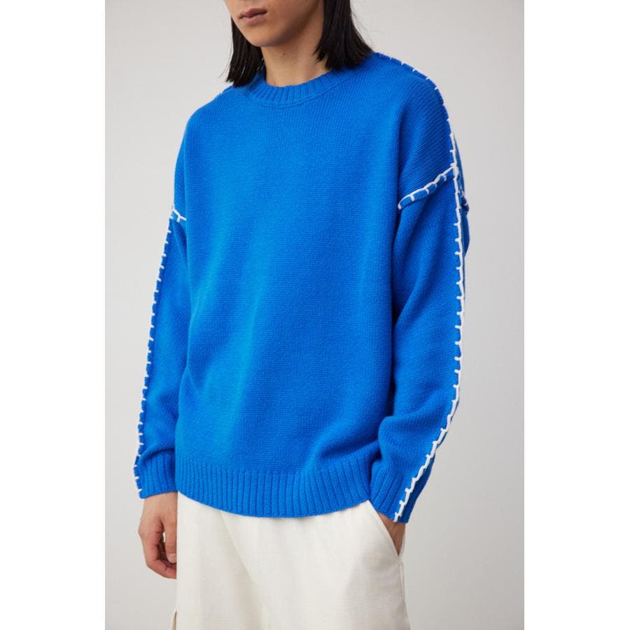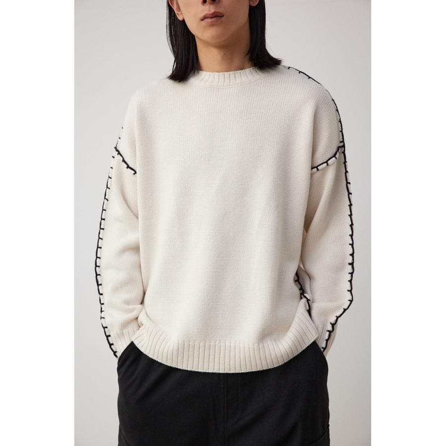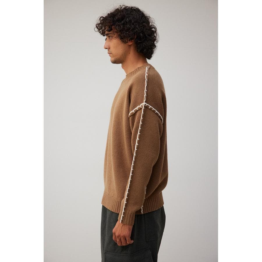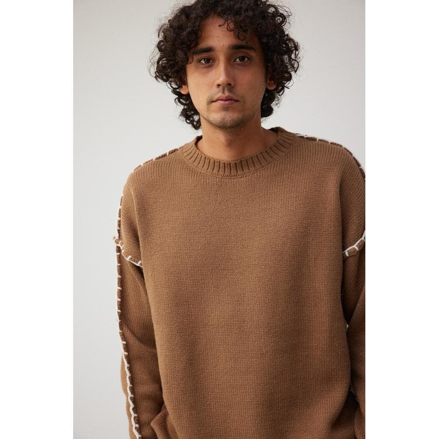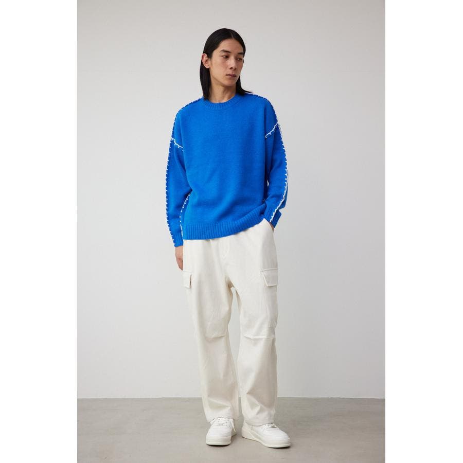 ・ステッチ使いが目を惹くブランケットステッチニットプルオーバー。