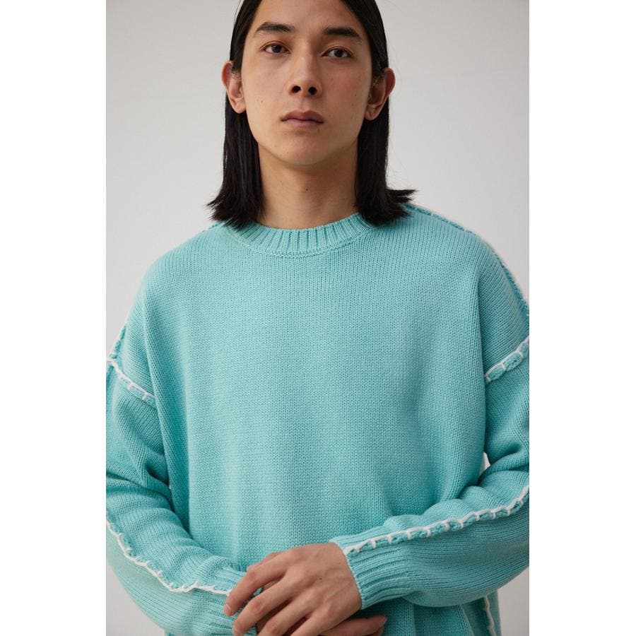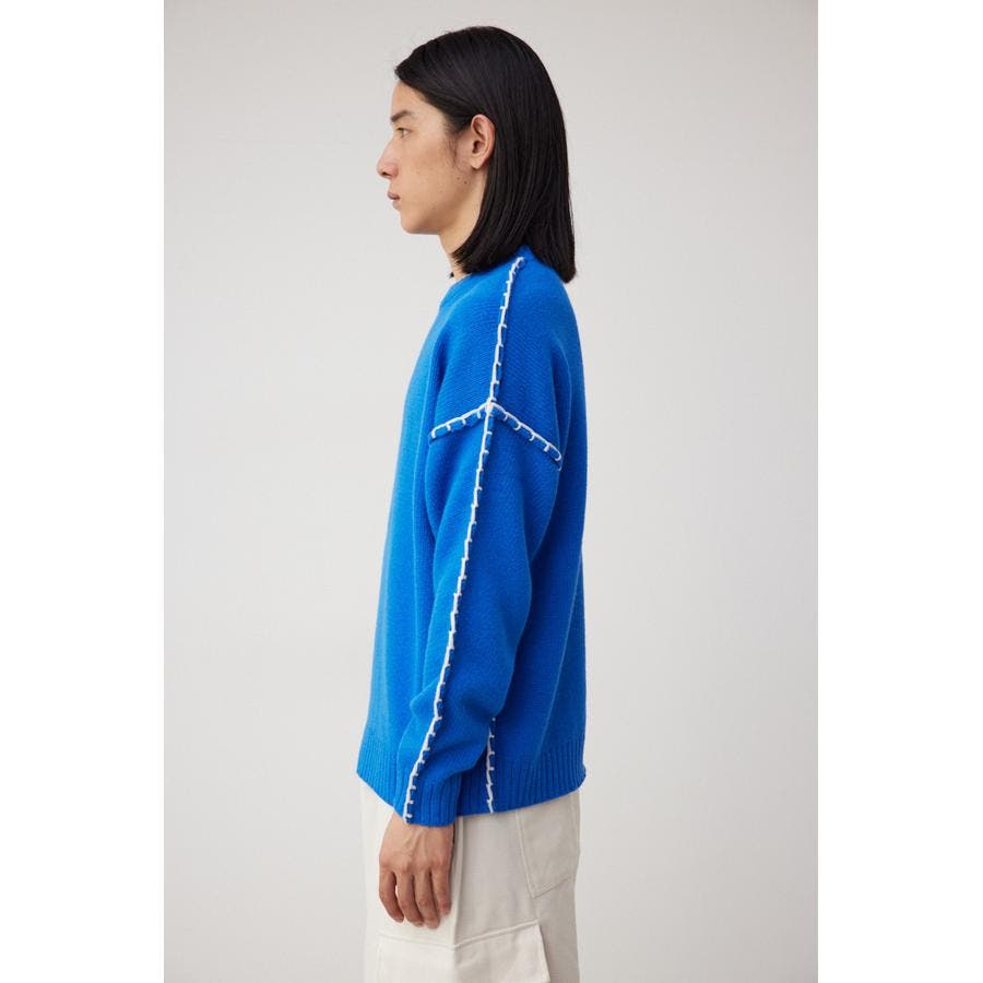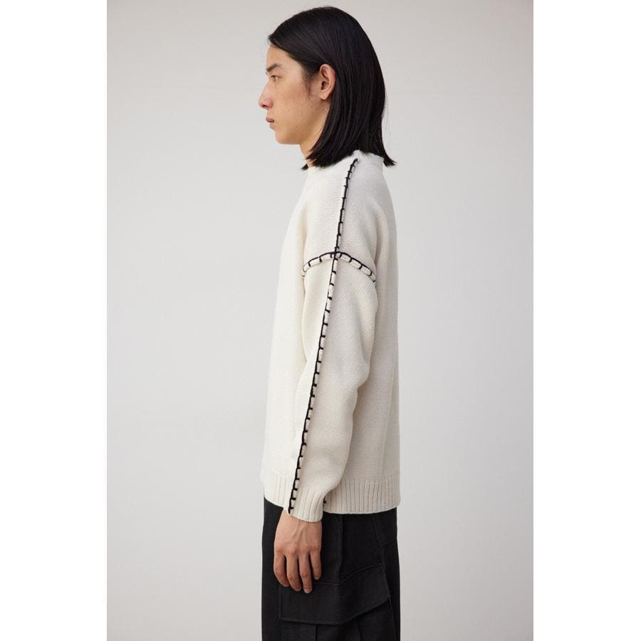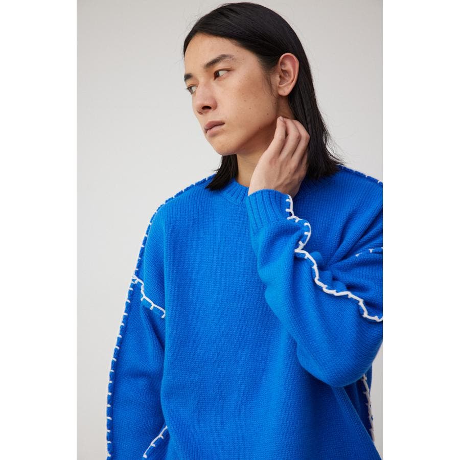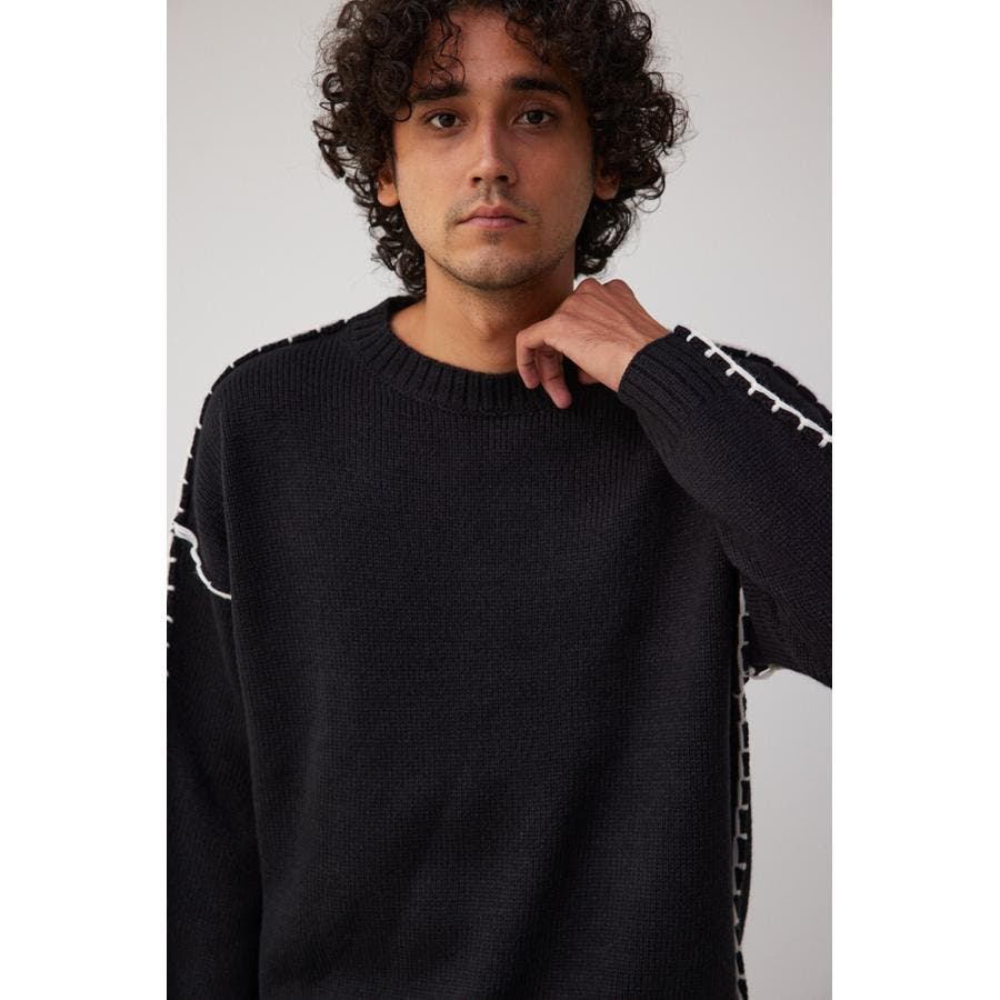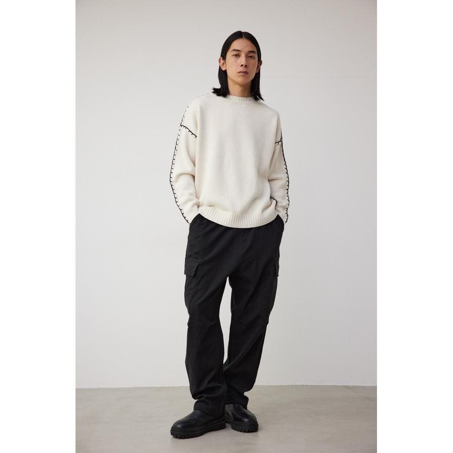 ・ステッチ使いが目を惹くブランケットステッチニットプルオーバー。