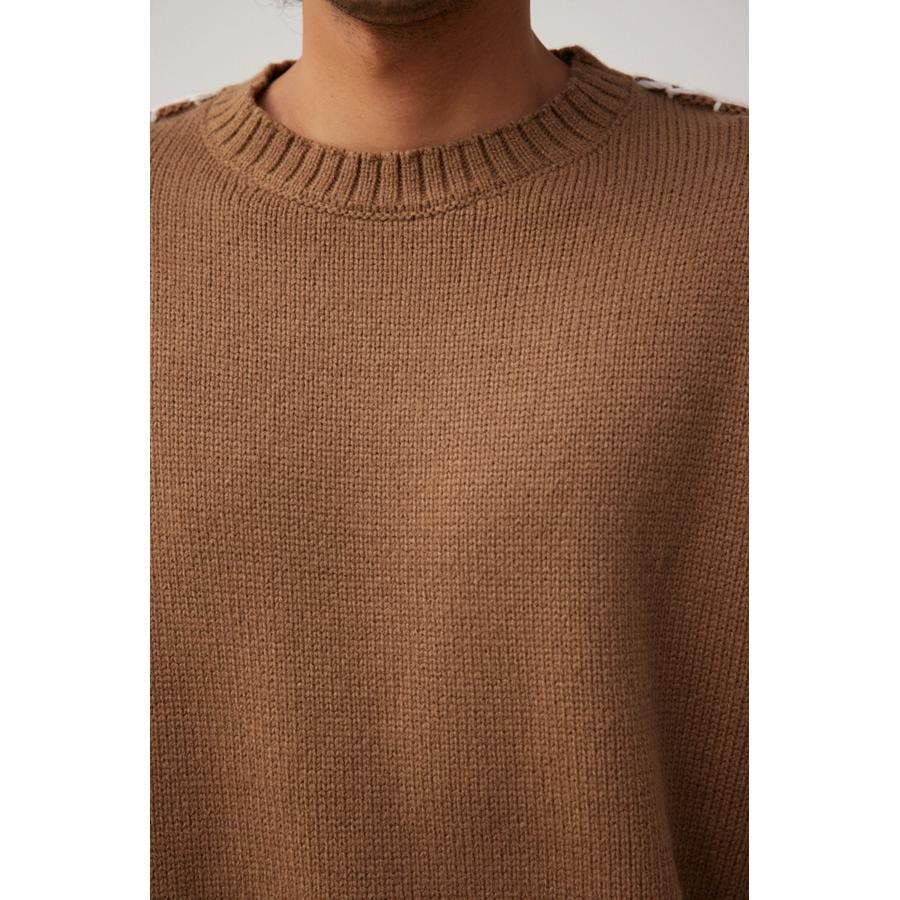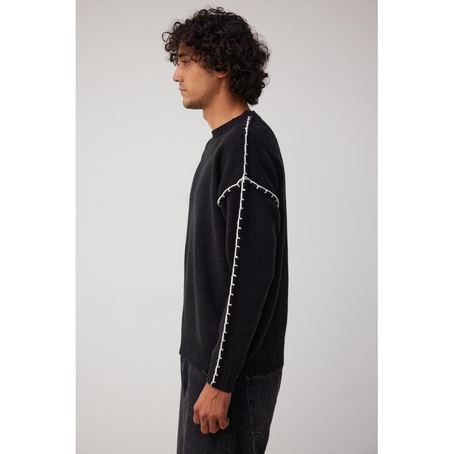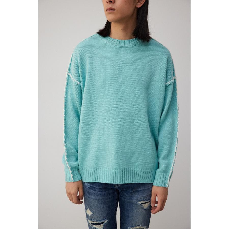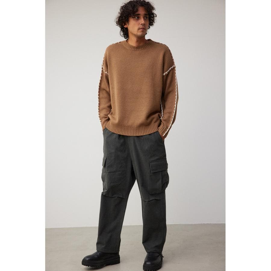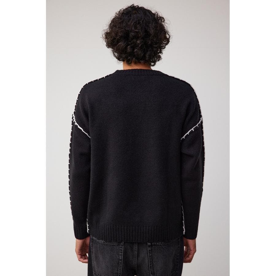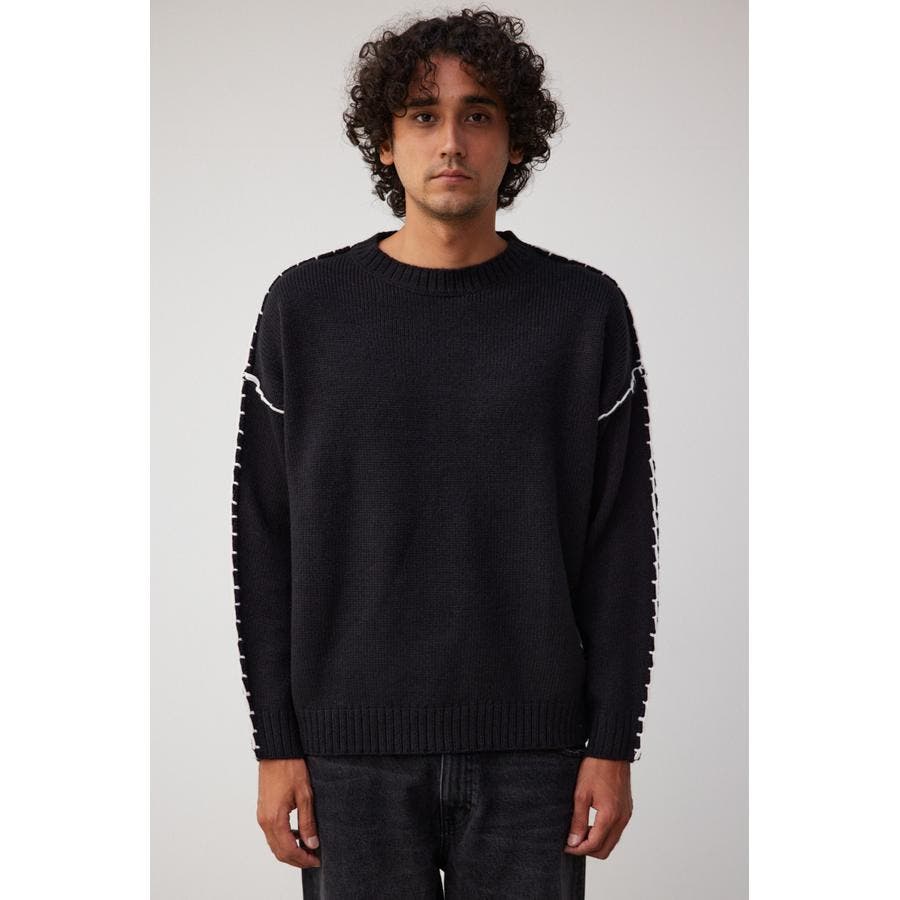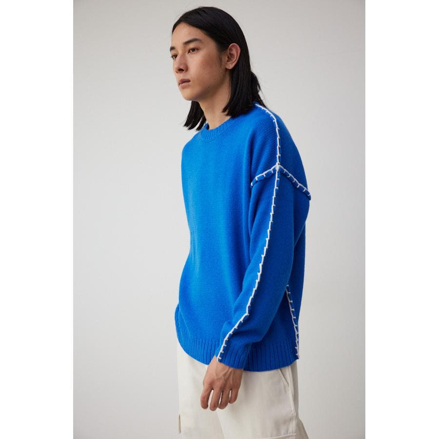・ステッチ使いが目を惹くブランケットステッチニットプルオーバー。