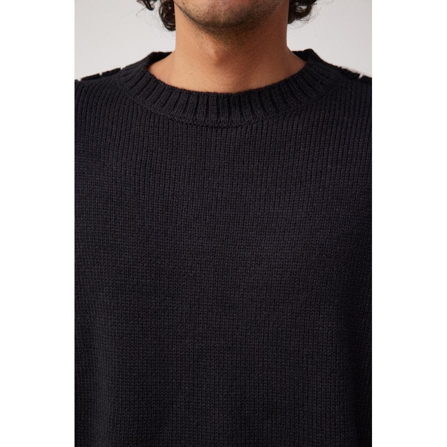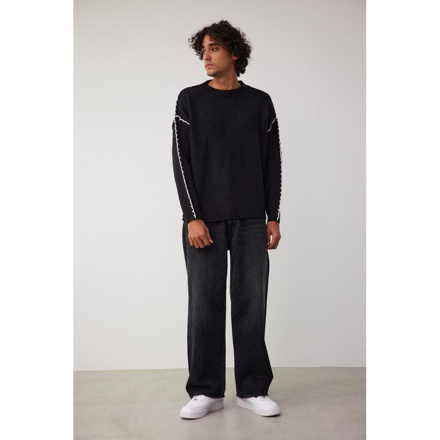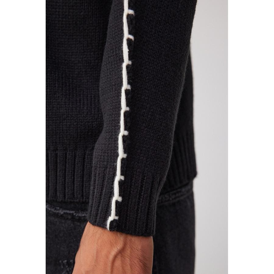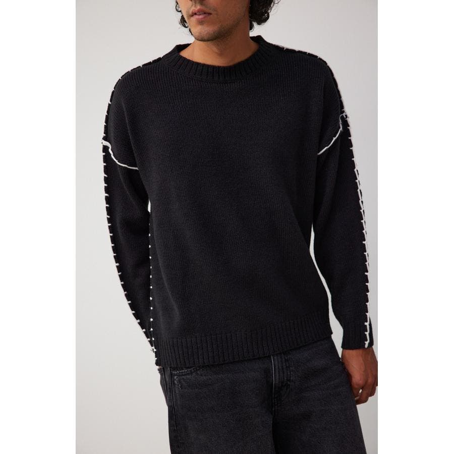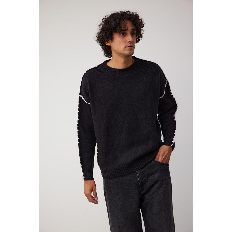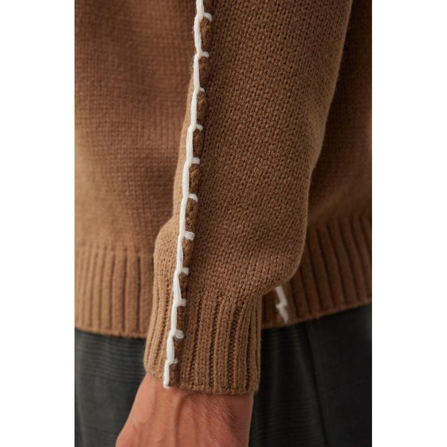 ・ステッチ使いが目を惹くブランケットステッチニットプルオーバー。