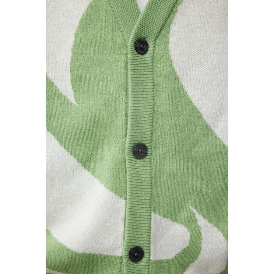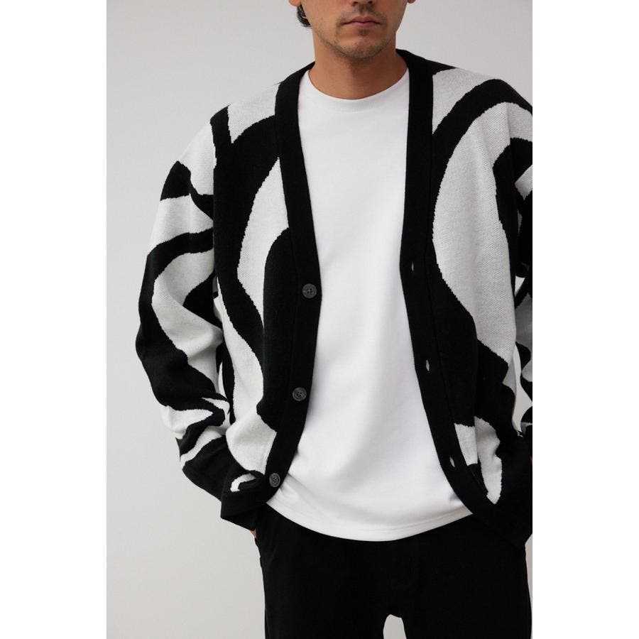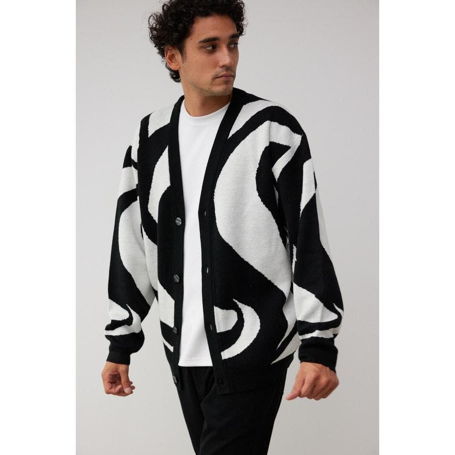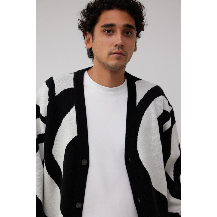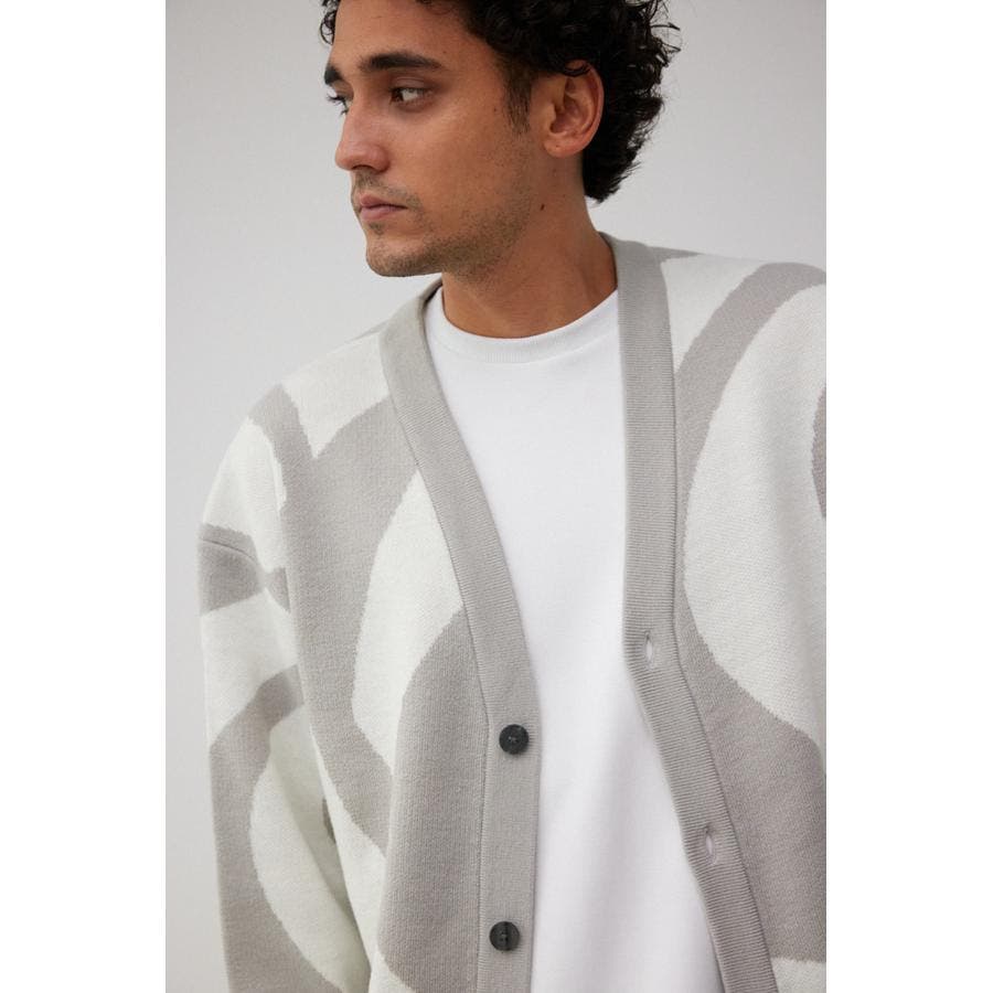 ・大判な幾何学模様が特徴的なカーディガン。