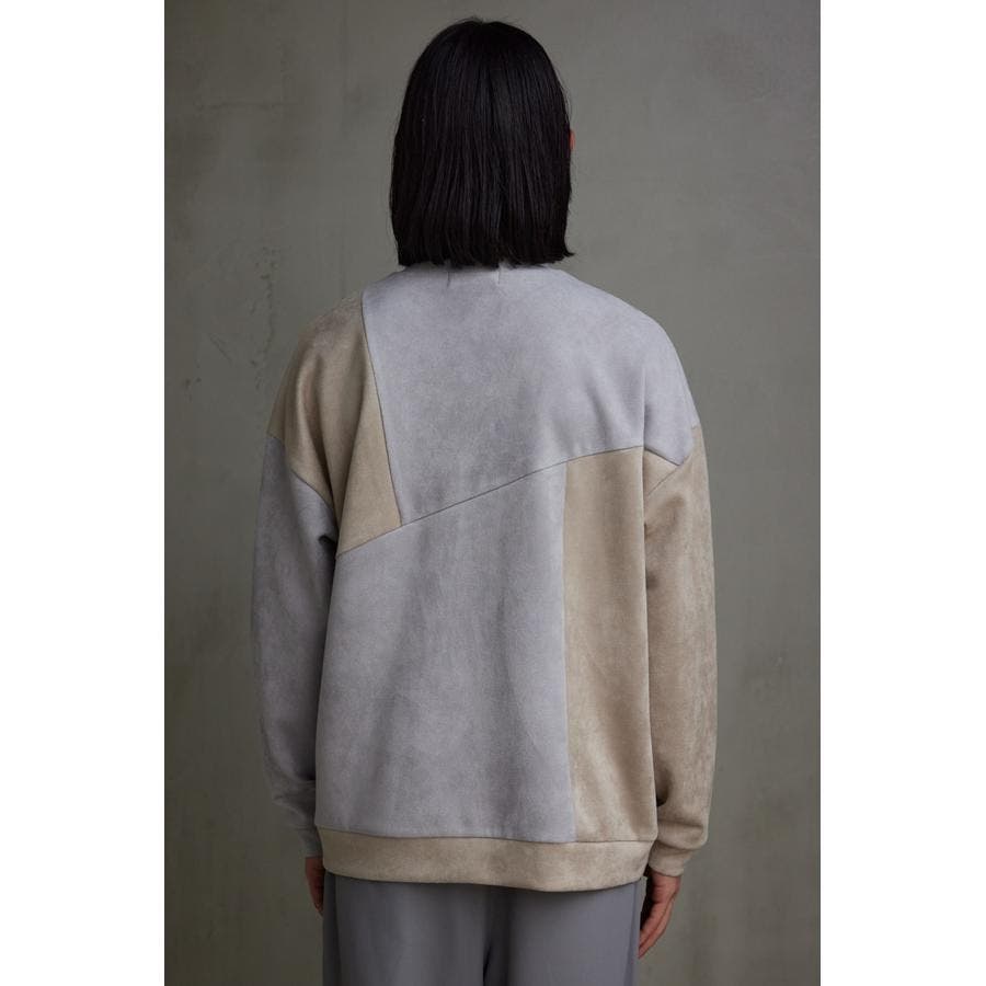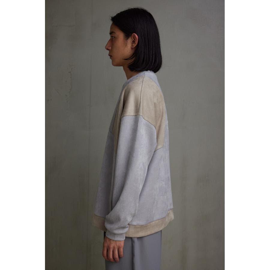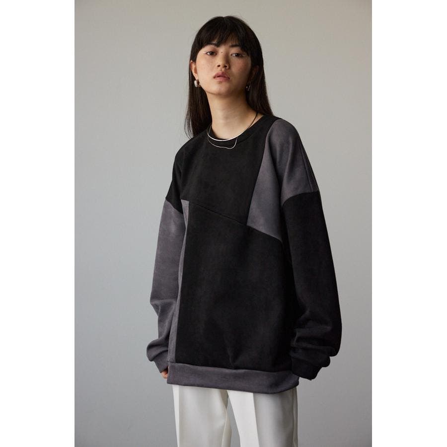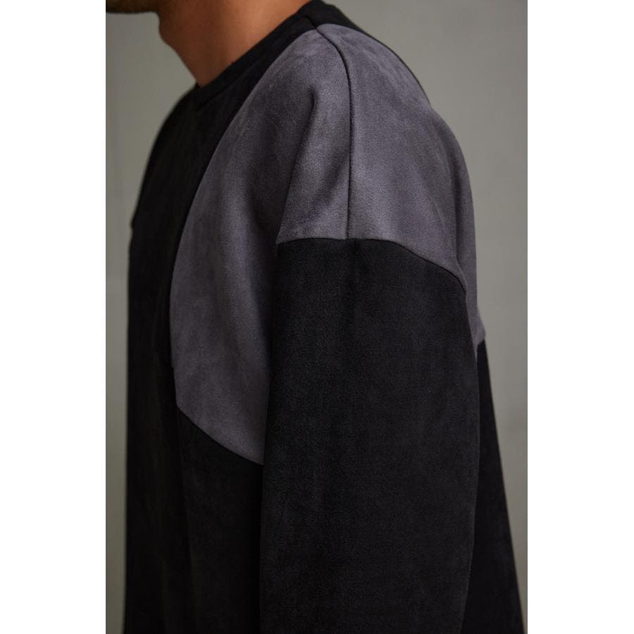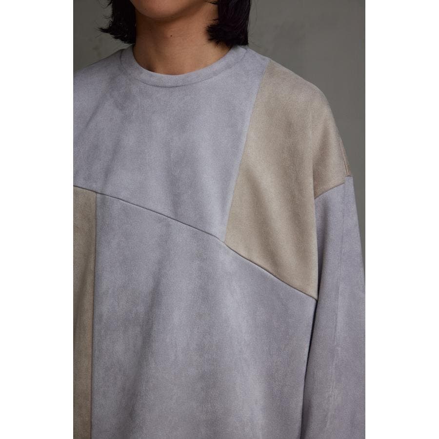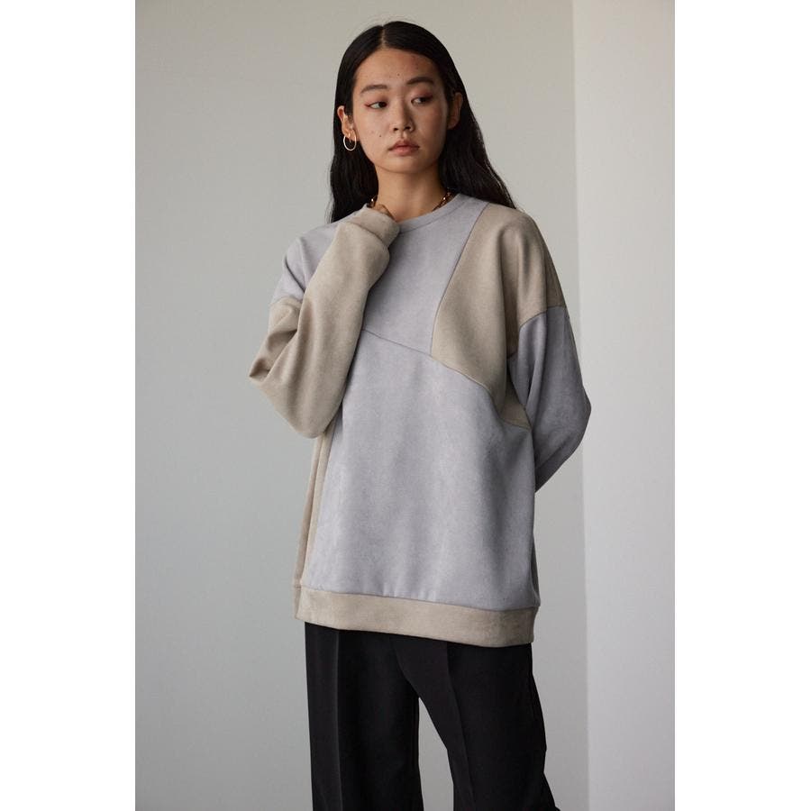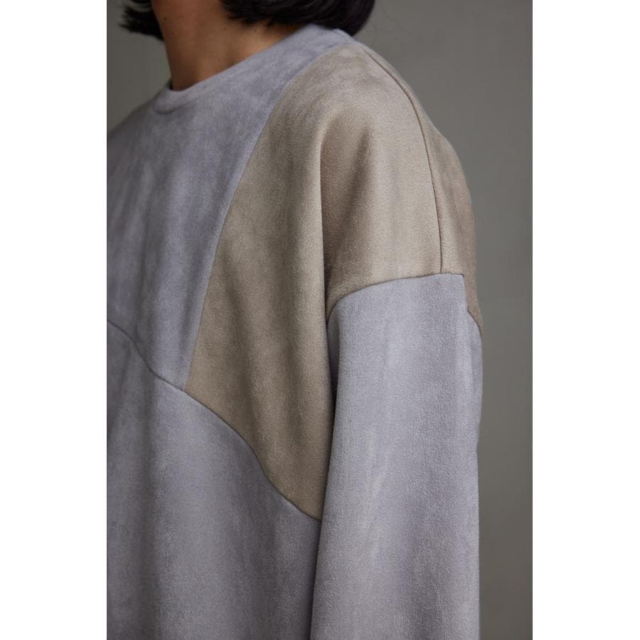 フェイクスウェードパネル切替トップス
