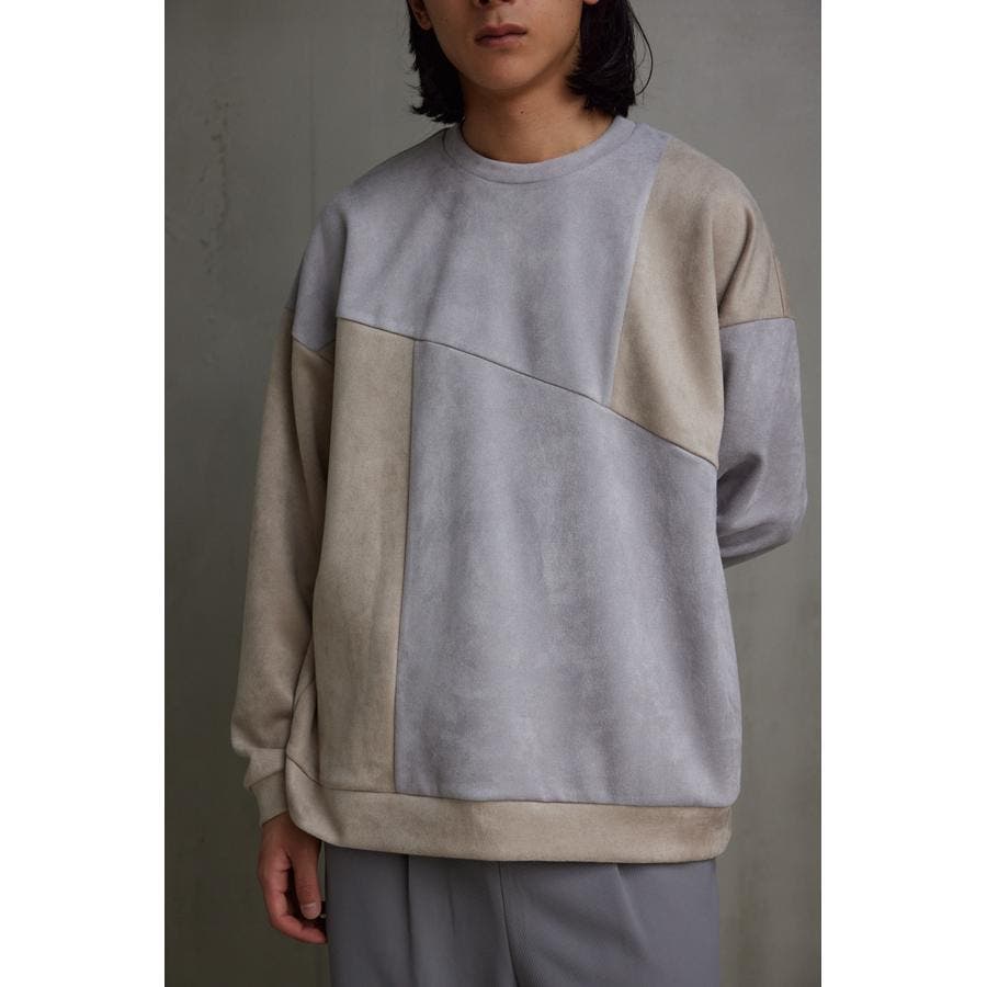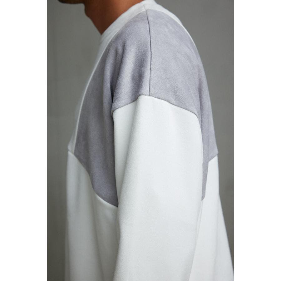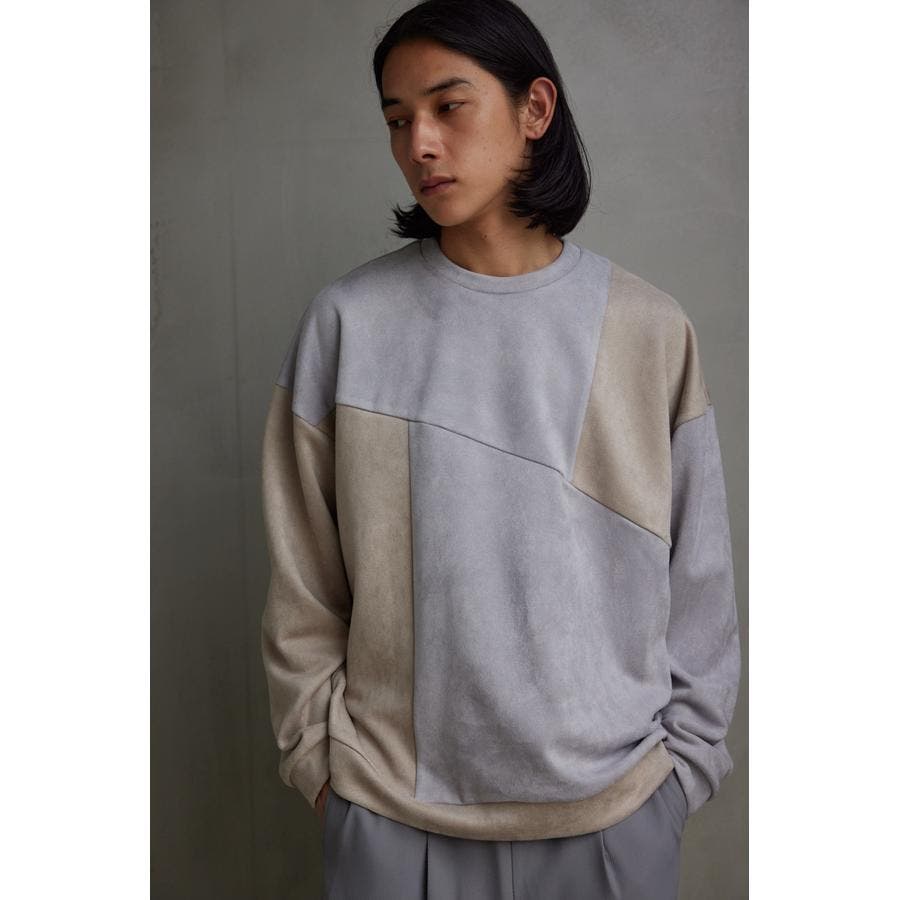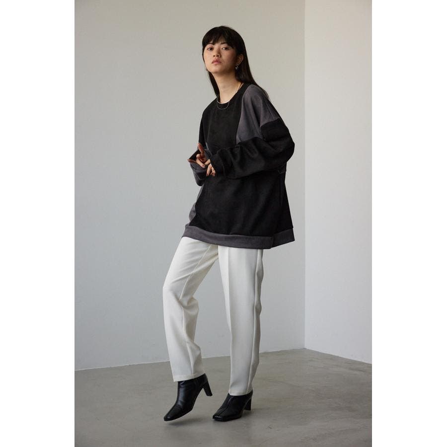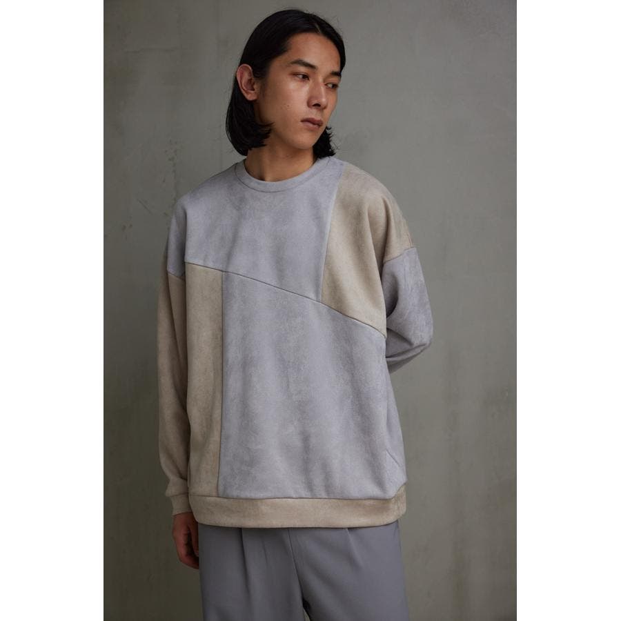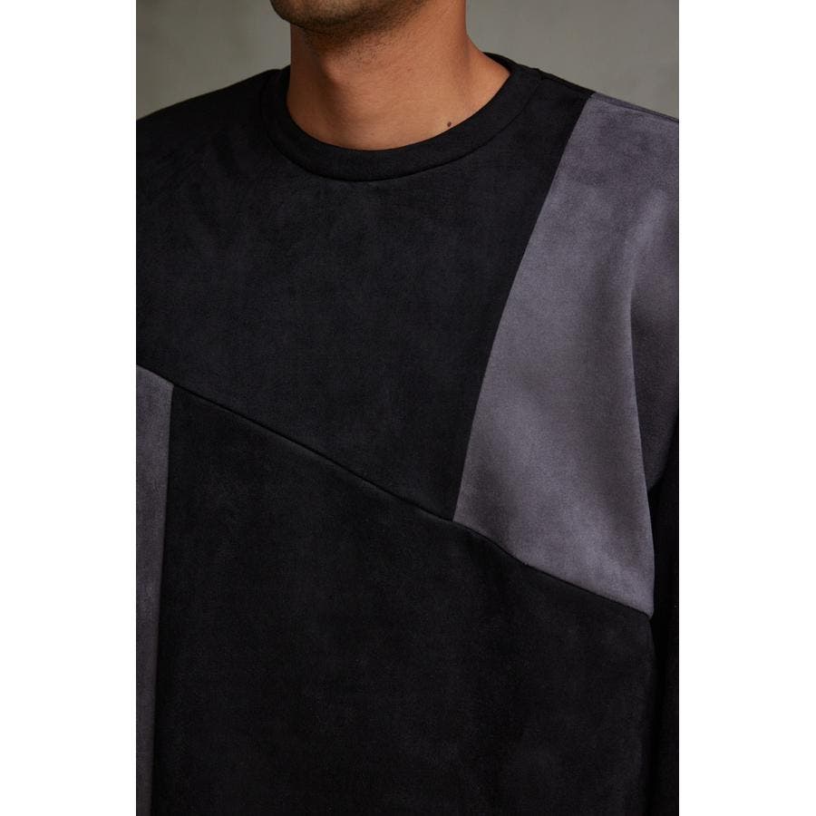 フェイクスウェードパネル切替トップス