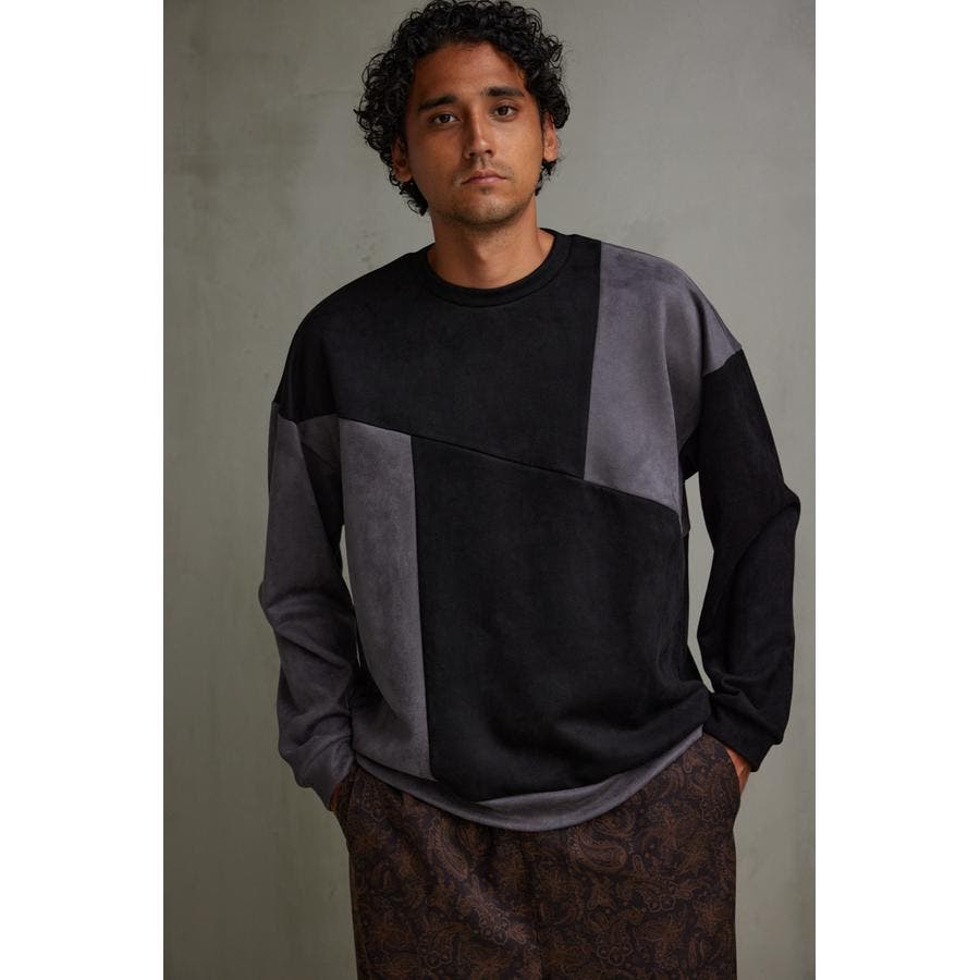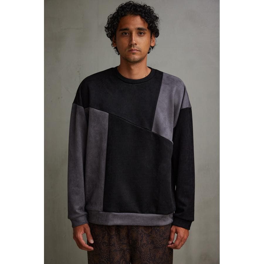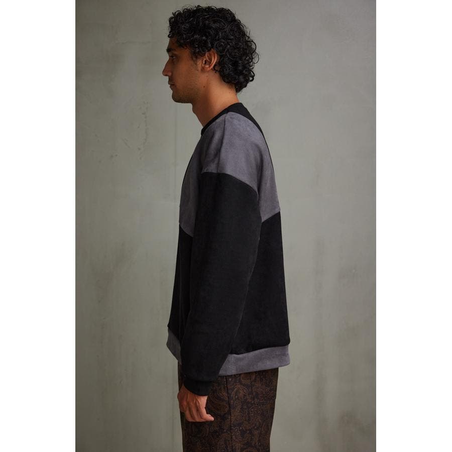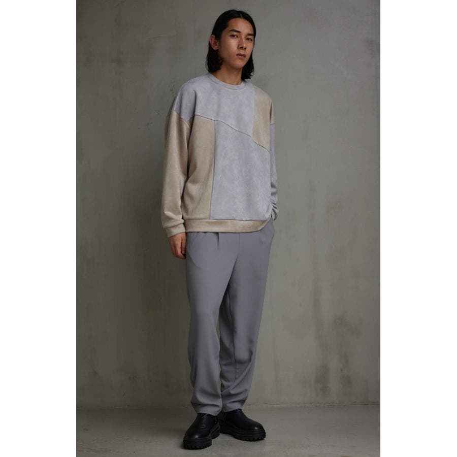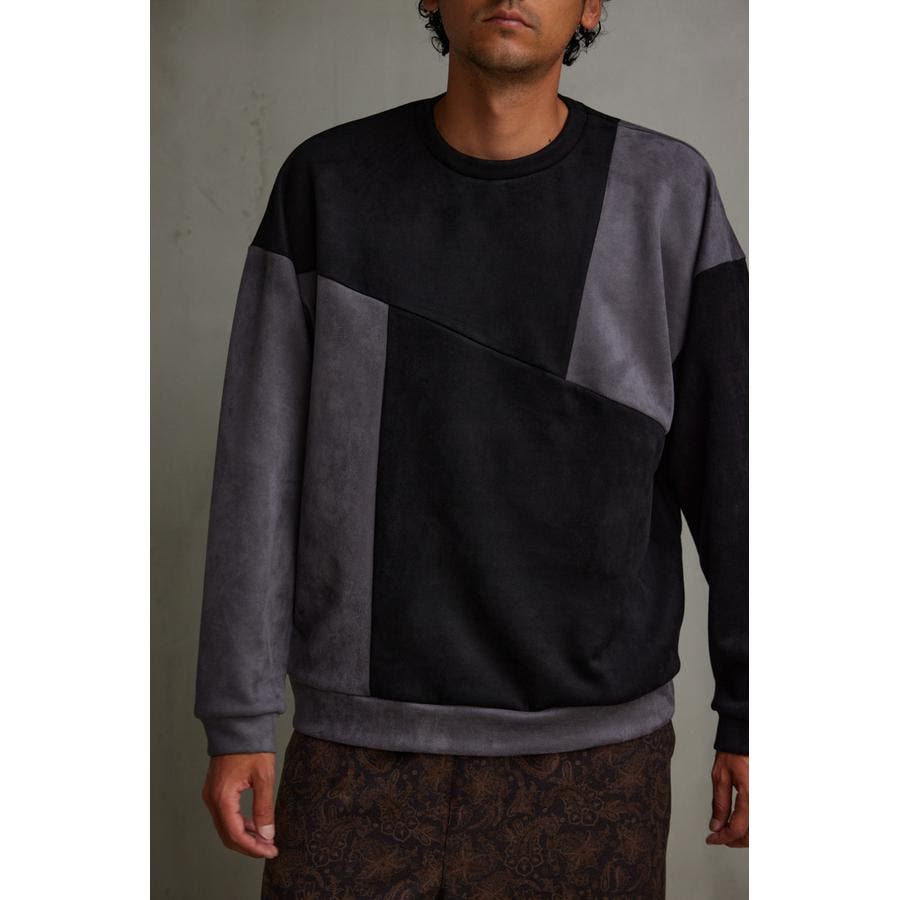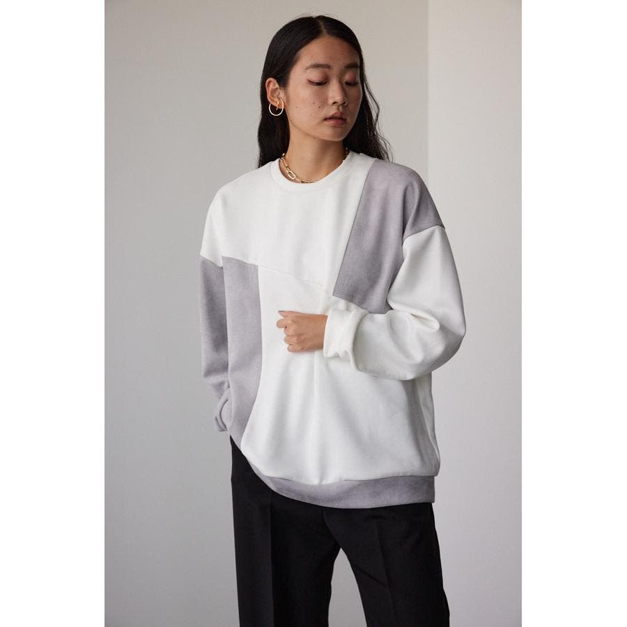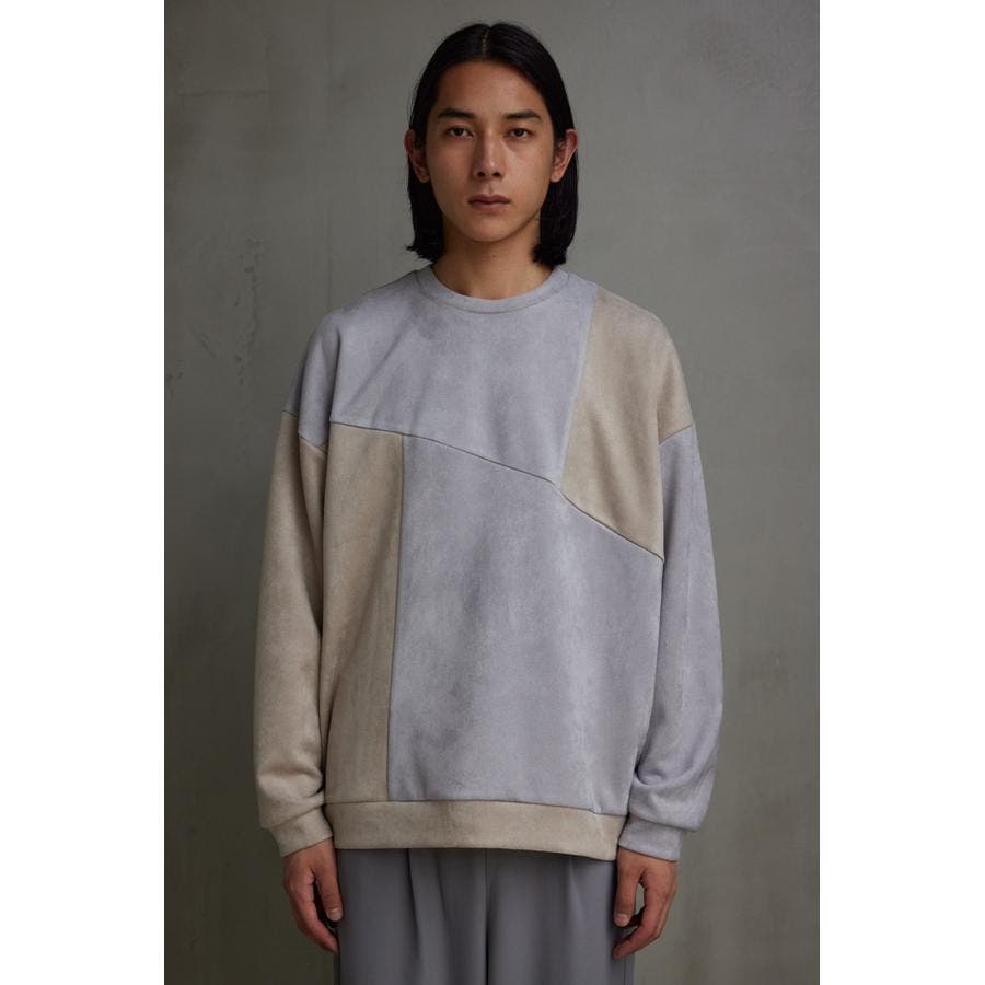 フェイクスウェードパネル切替トップス