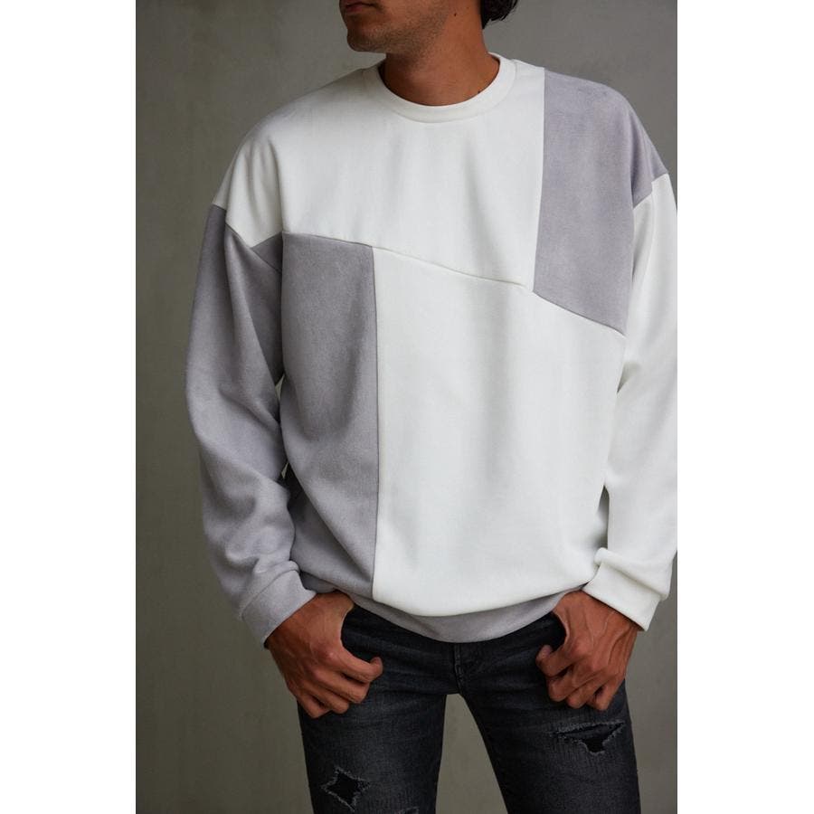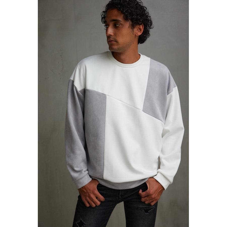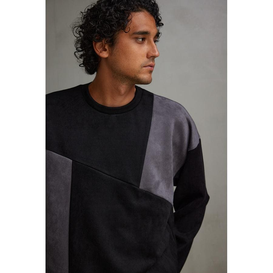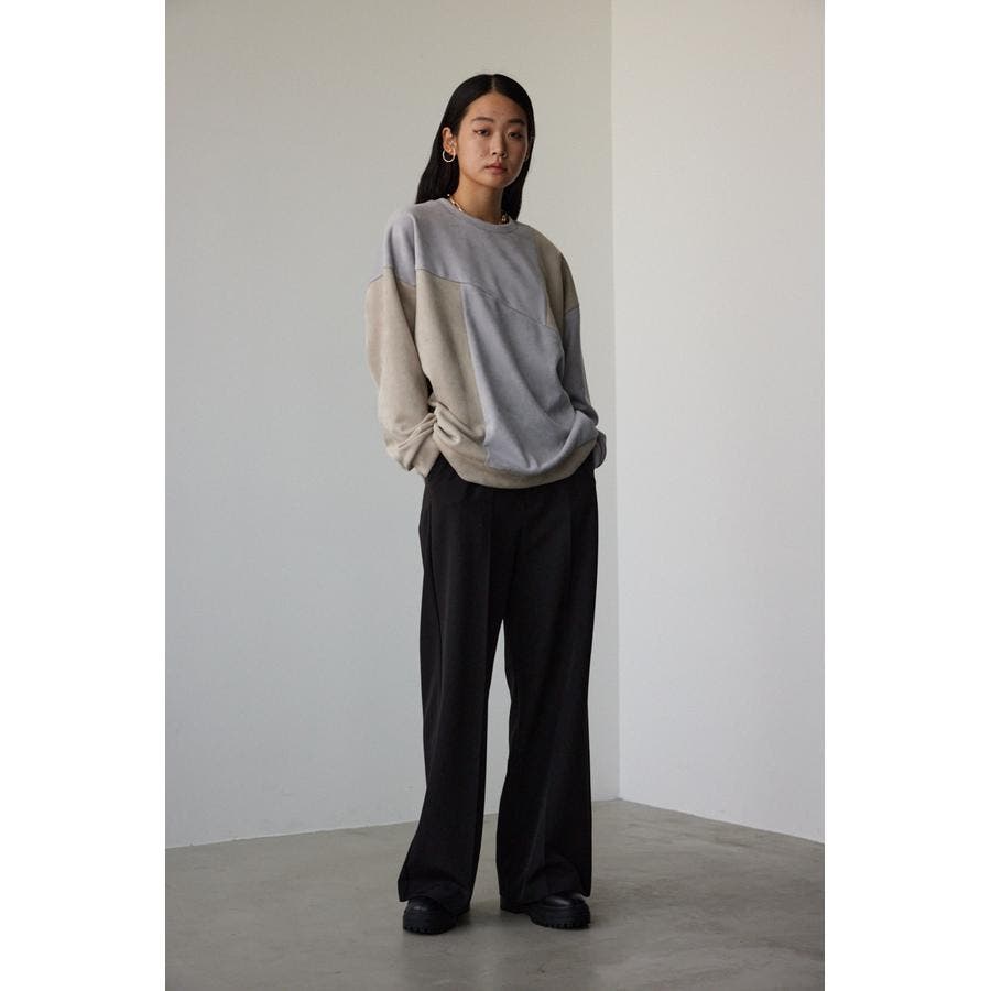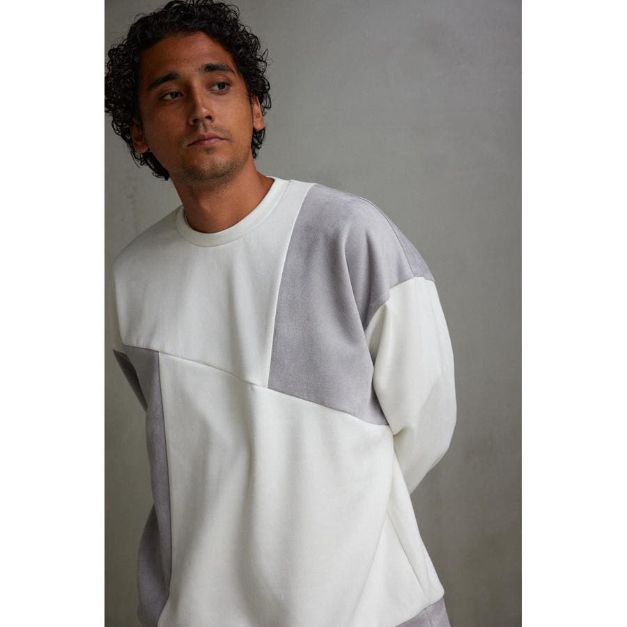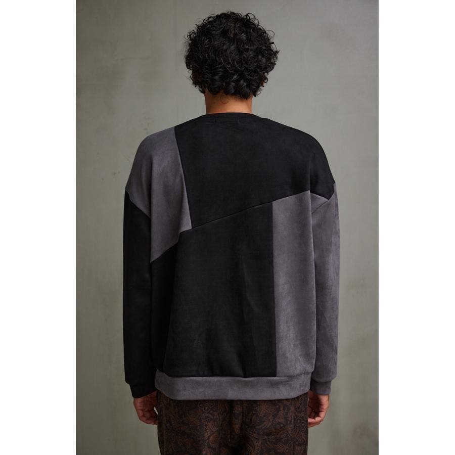 フェイクスウェードパネル切替トップス