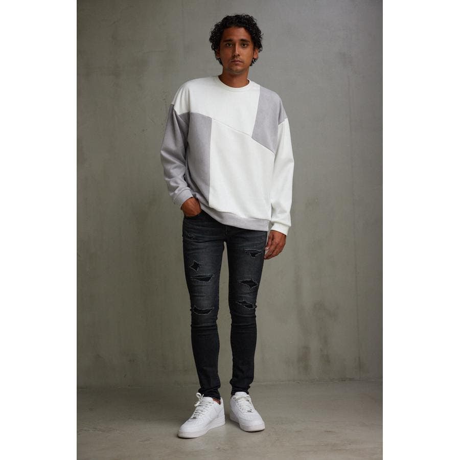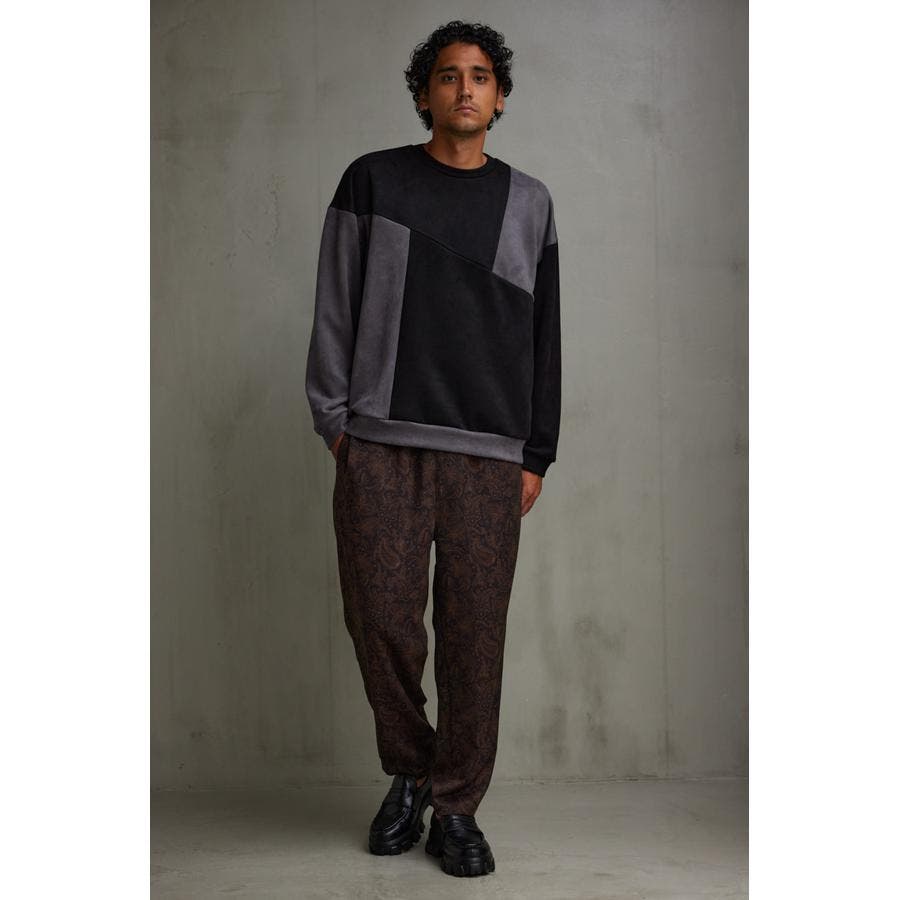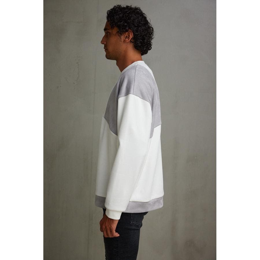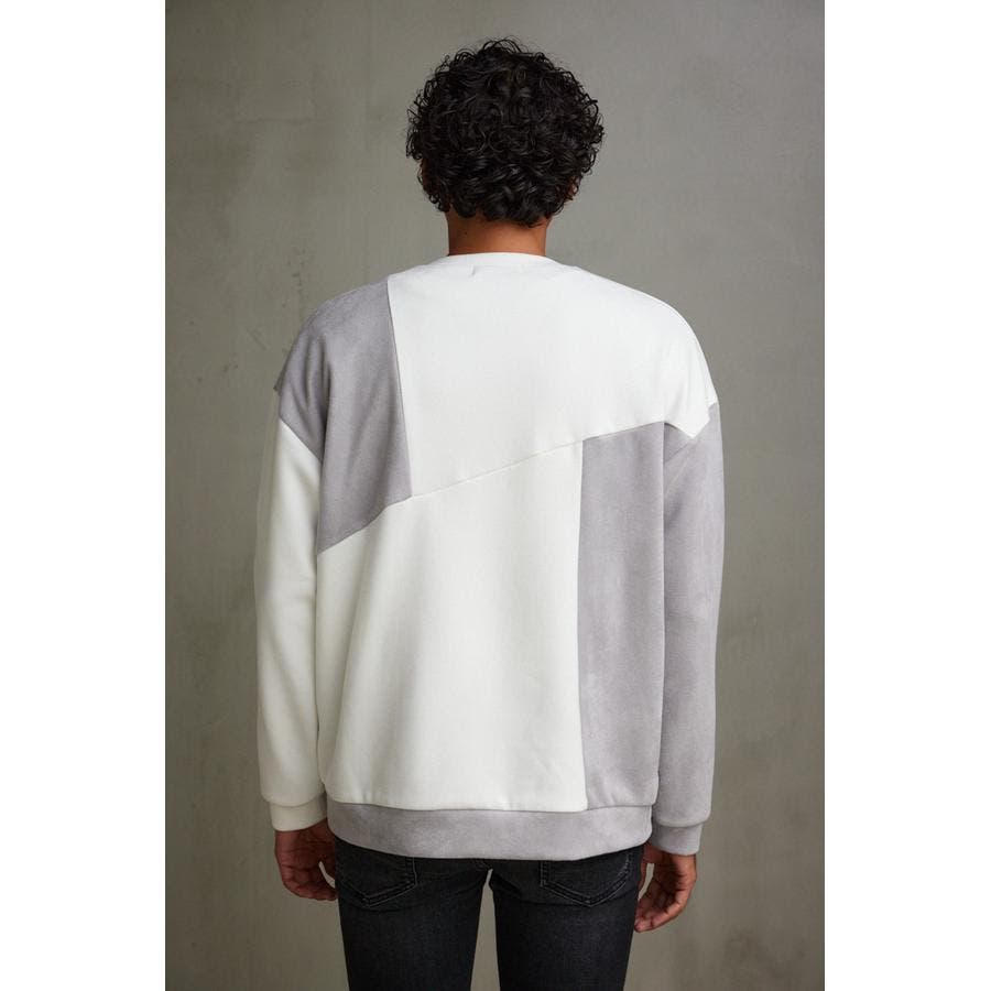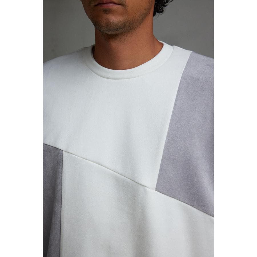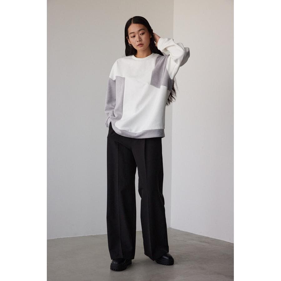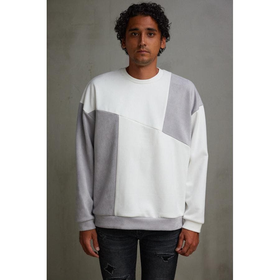 フェイクスウェードパネル切替トップス