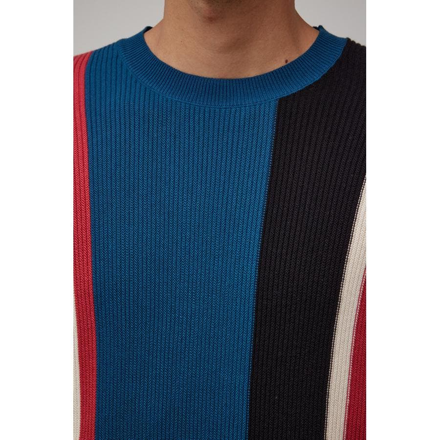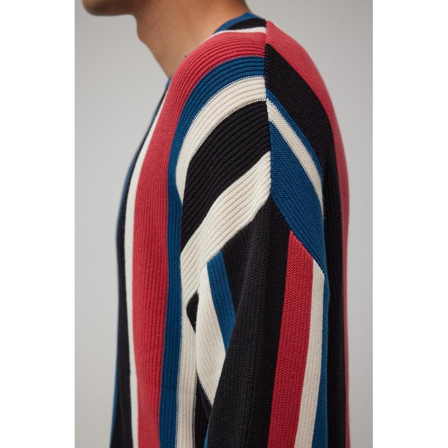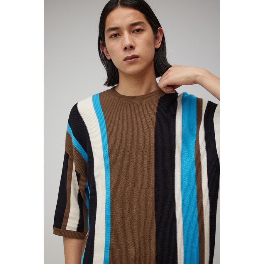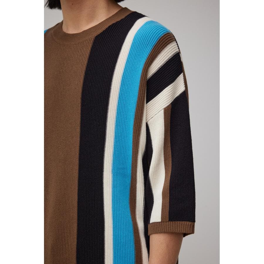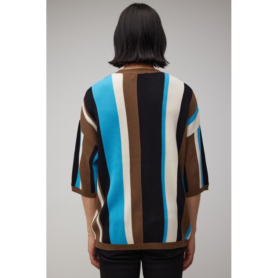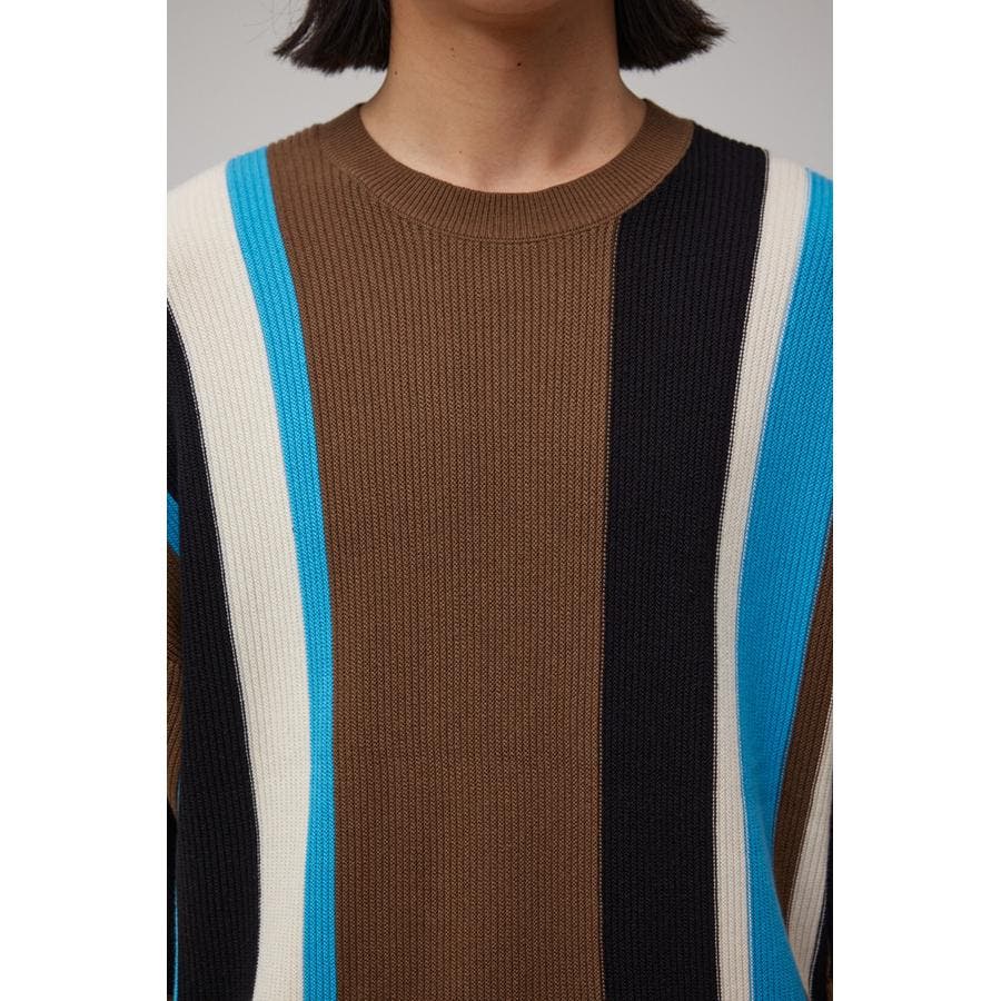 ・編地を横向きに使用し、マルチストライプカラーを表現したニットです。