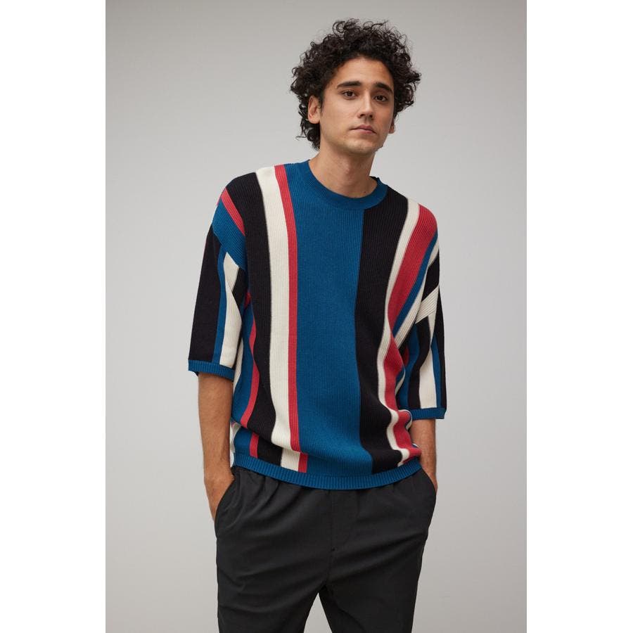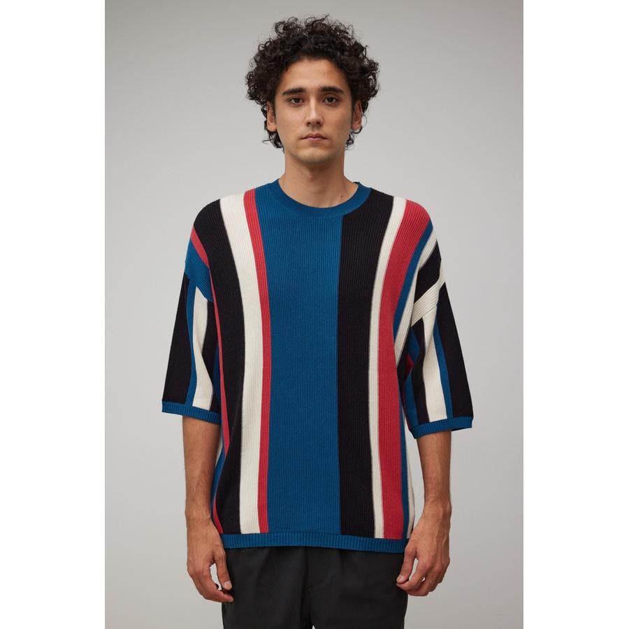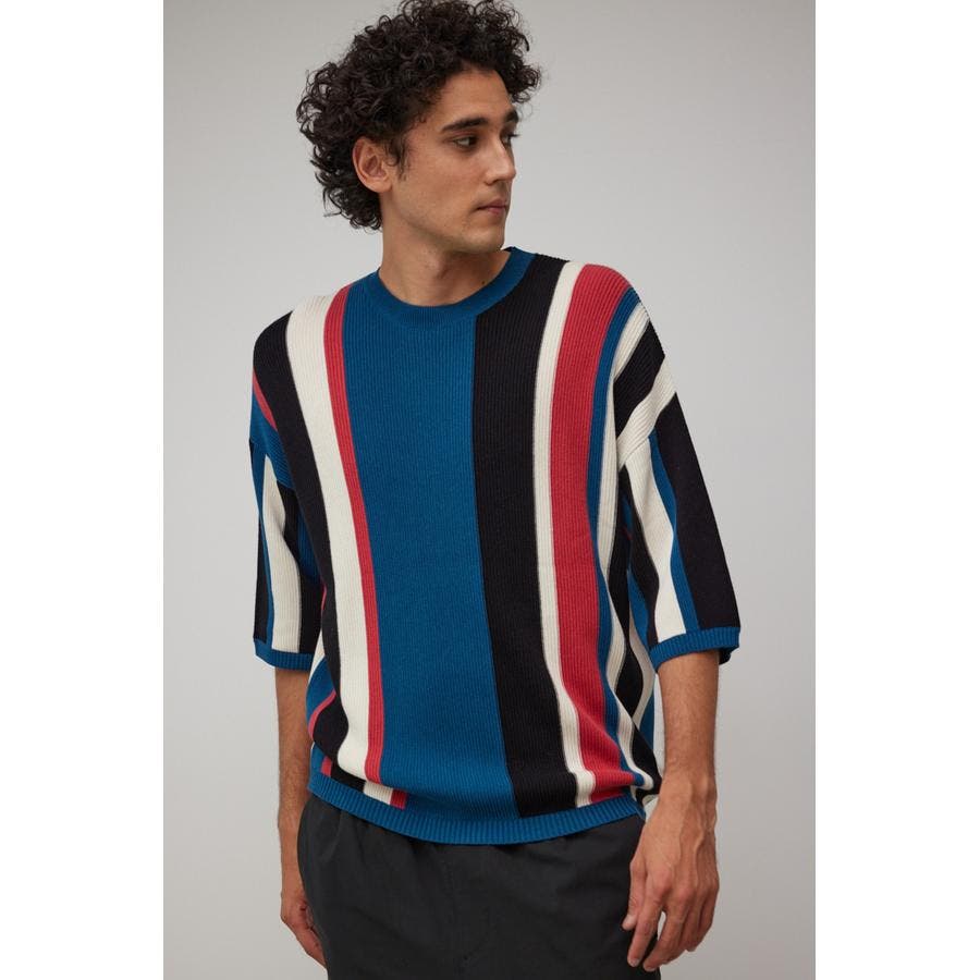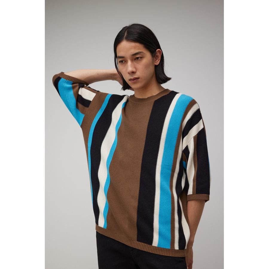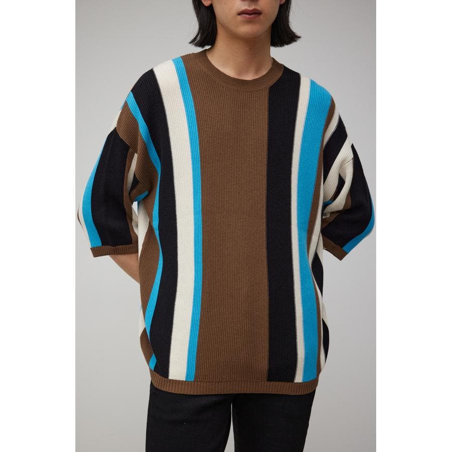 ・編地を横向きに使用し、マルチストライプカラーを表現したニットです。