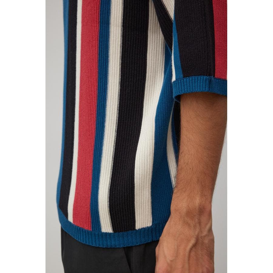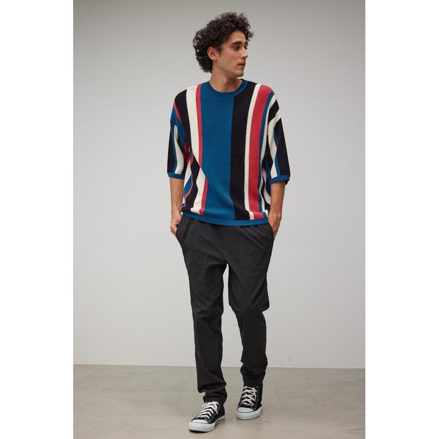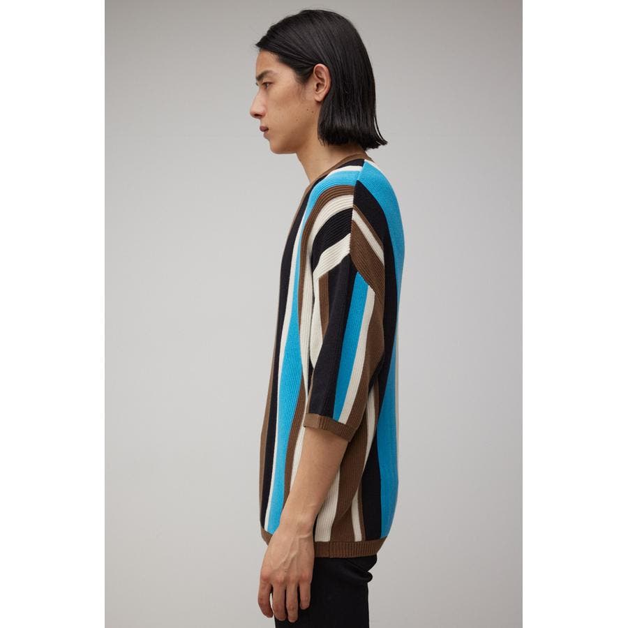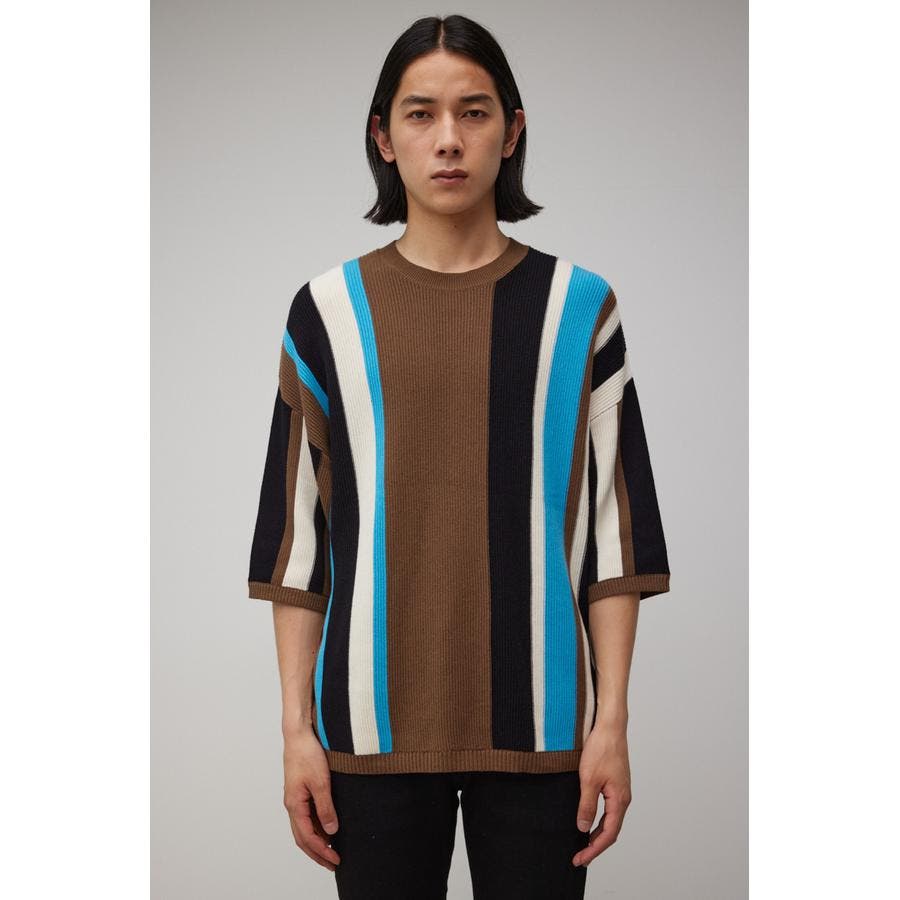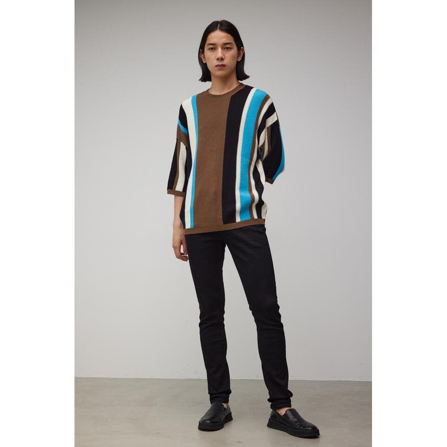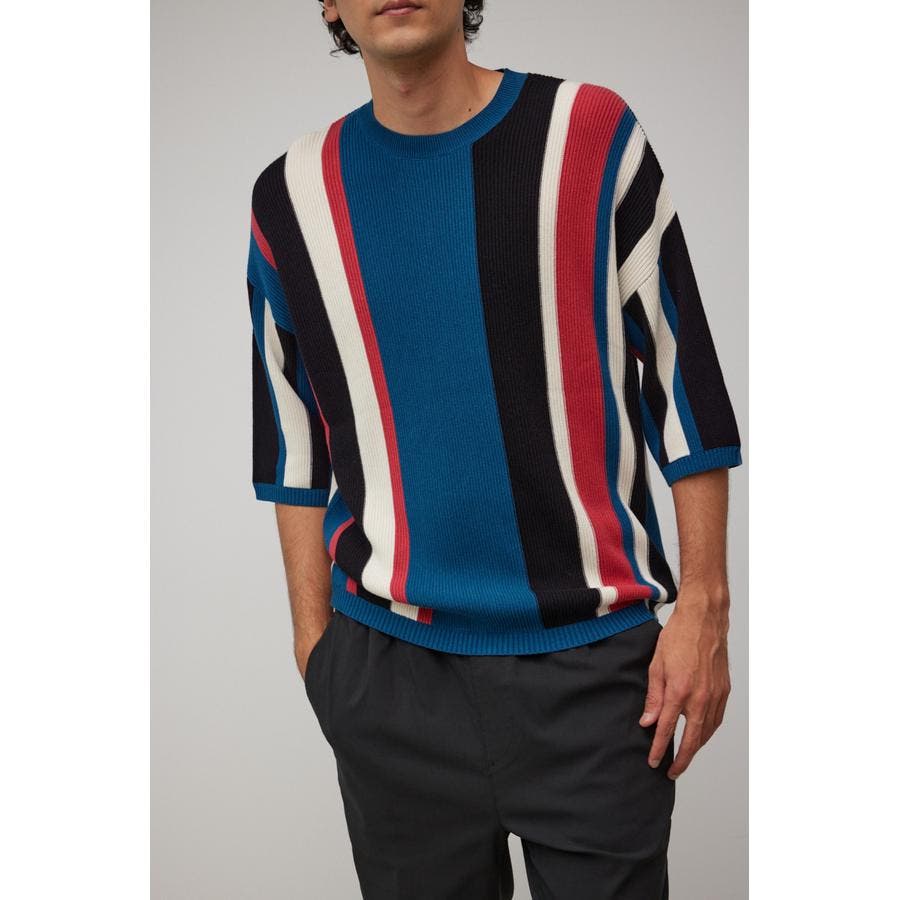 ・編地を横向きに使用し、マルチストライプカラーを表現したニットです。