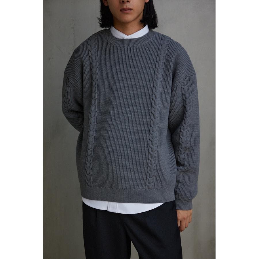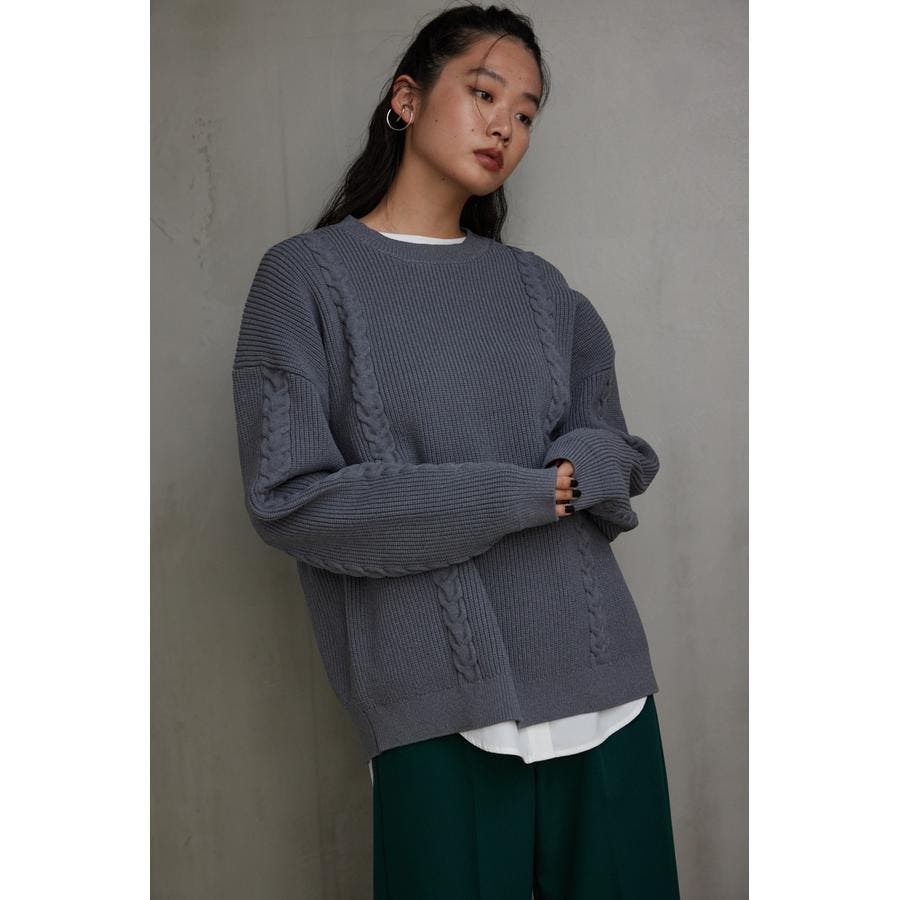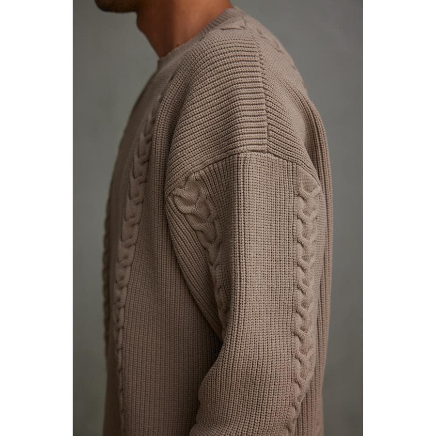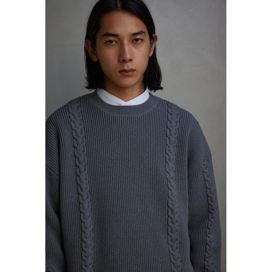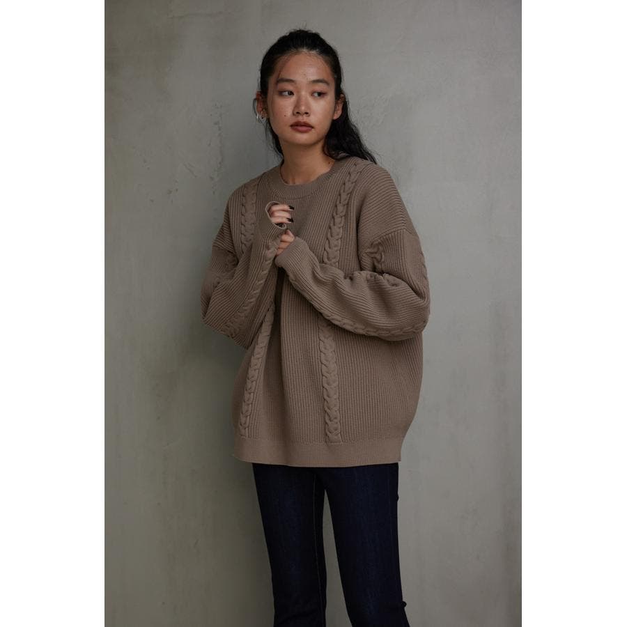 ・オーバーサイズのケーブルニット。