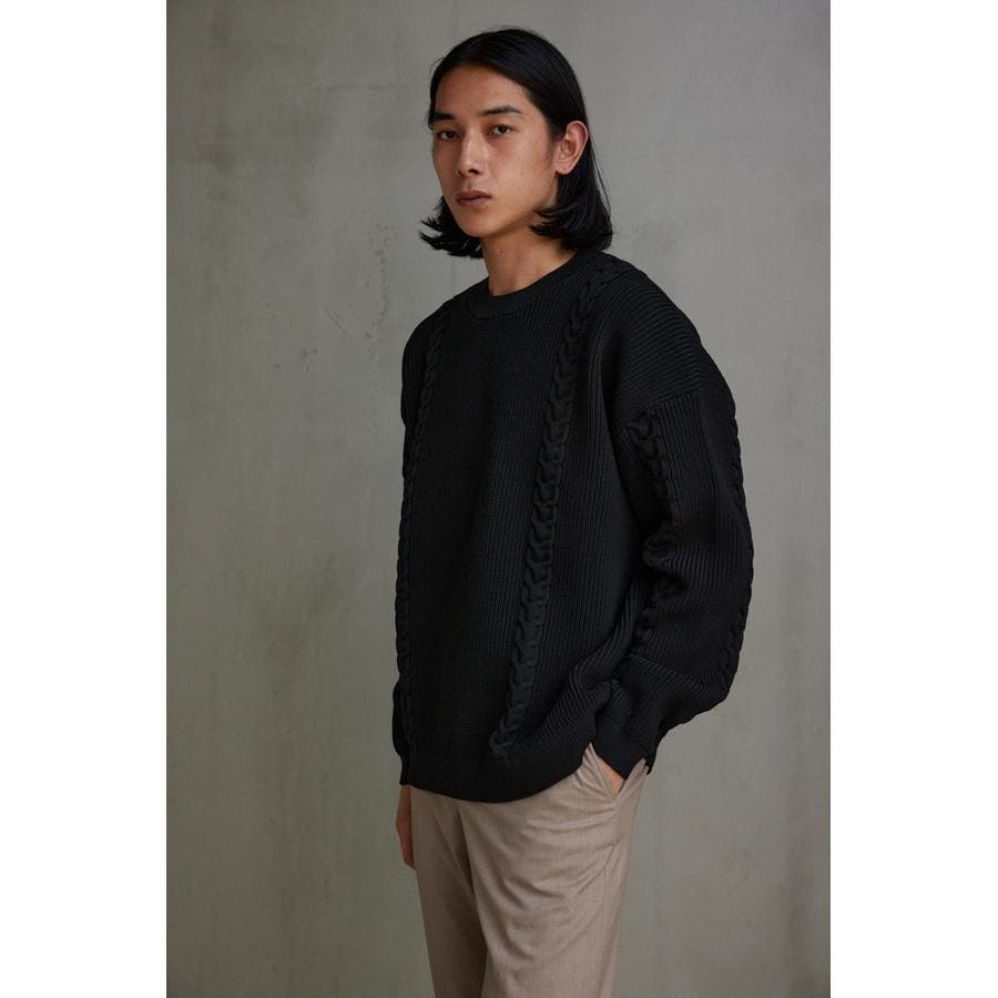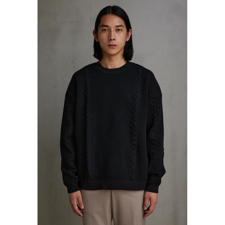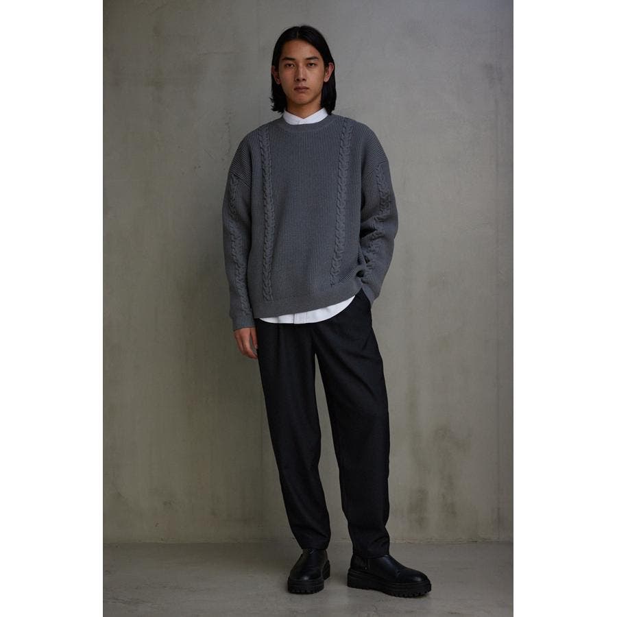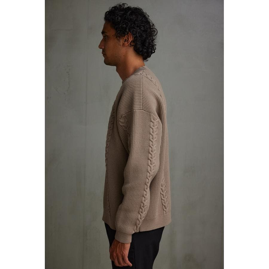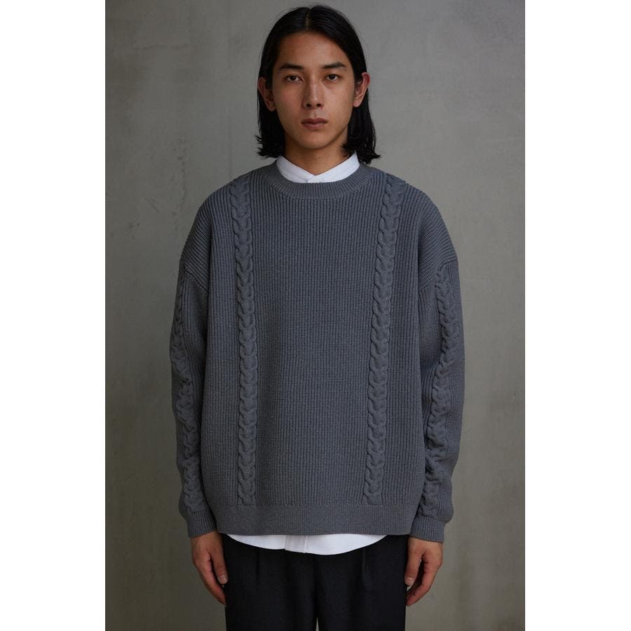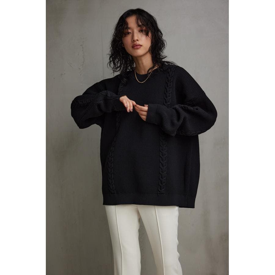 ・オーバーサイズのケーブルニット。