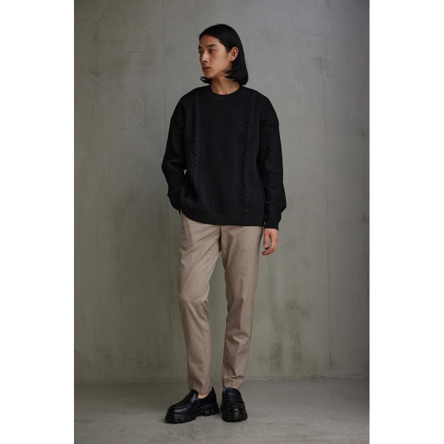 ・大き目なシルエットに相反するように分量が少なく、軽いニットなので、着用しやすいアイテム。