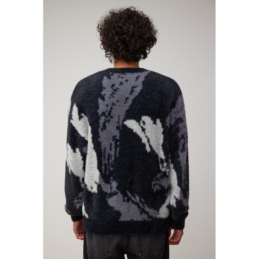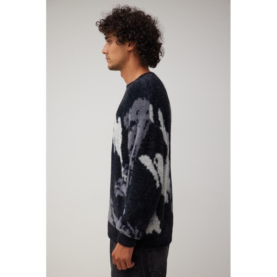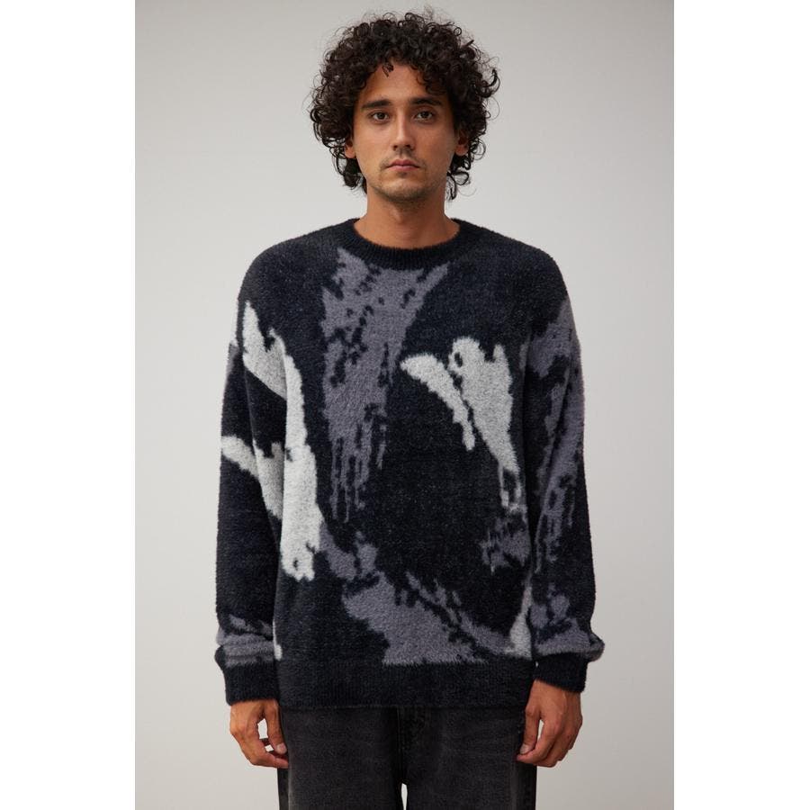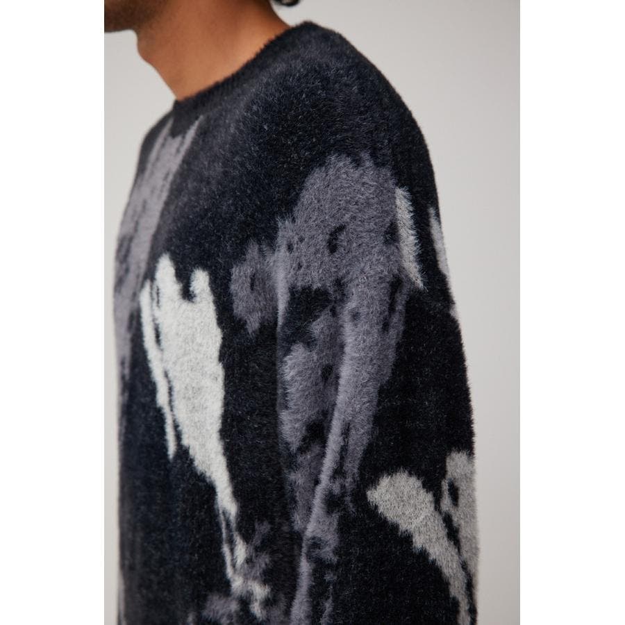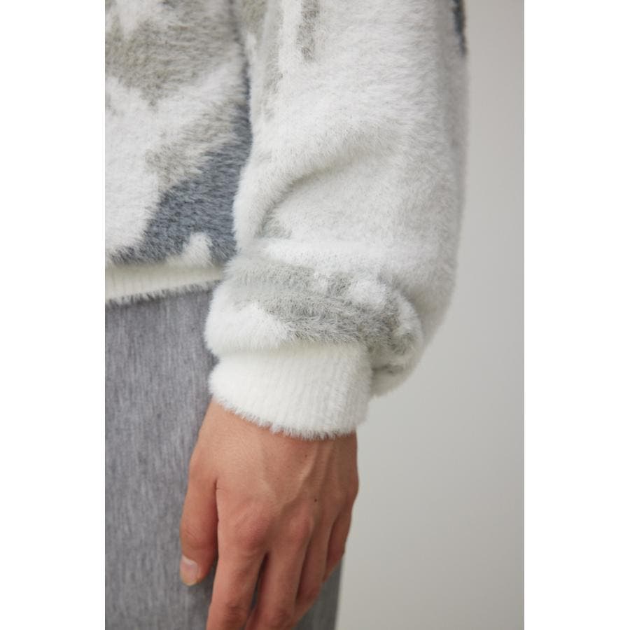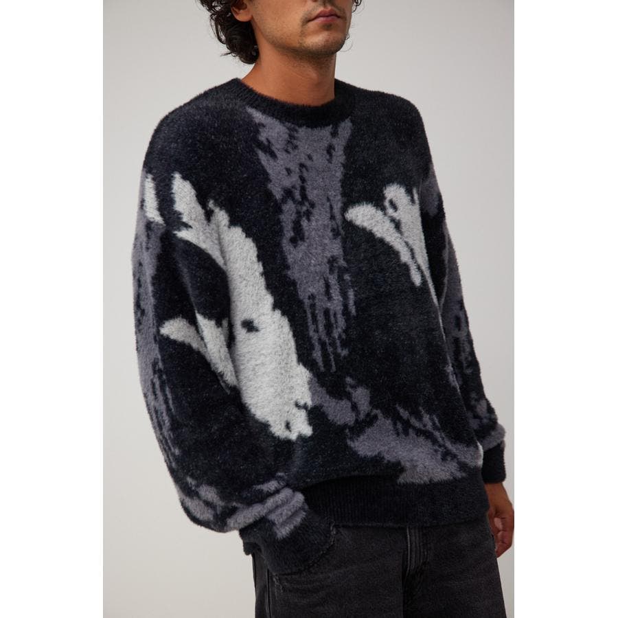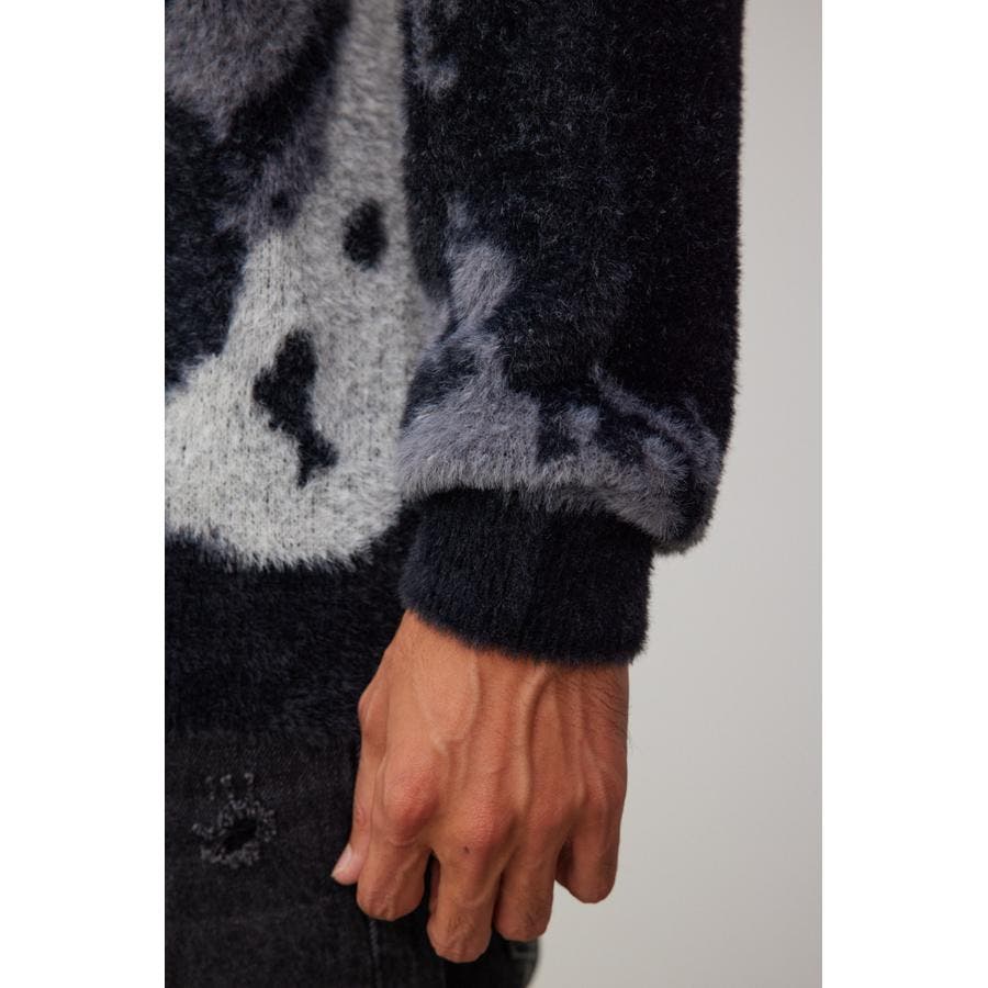 ・起毛感が特徴的な総柄シャギーニット。
