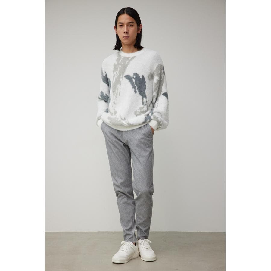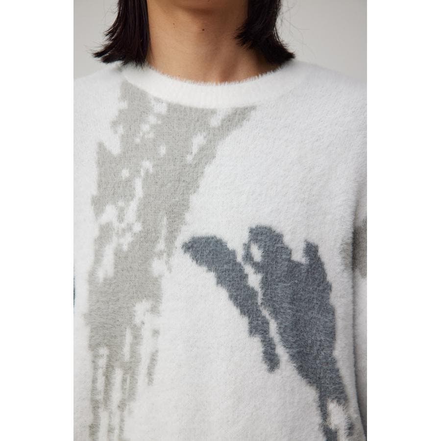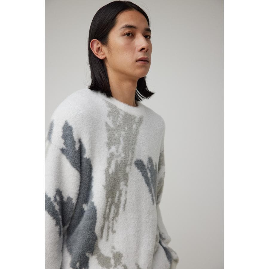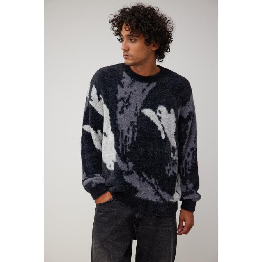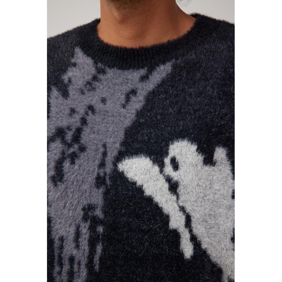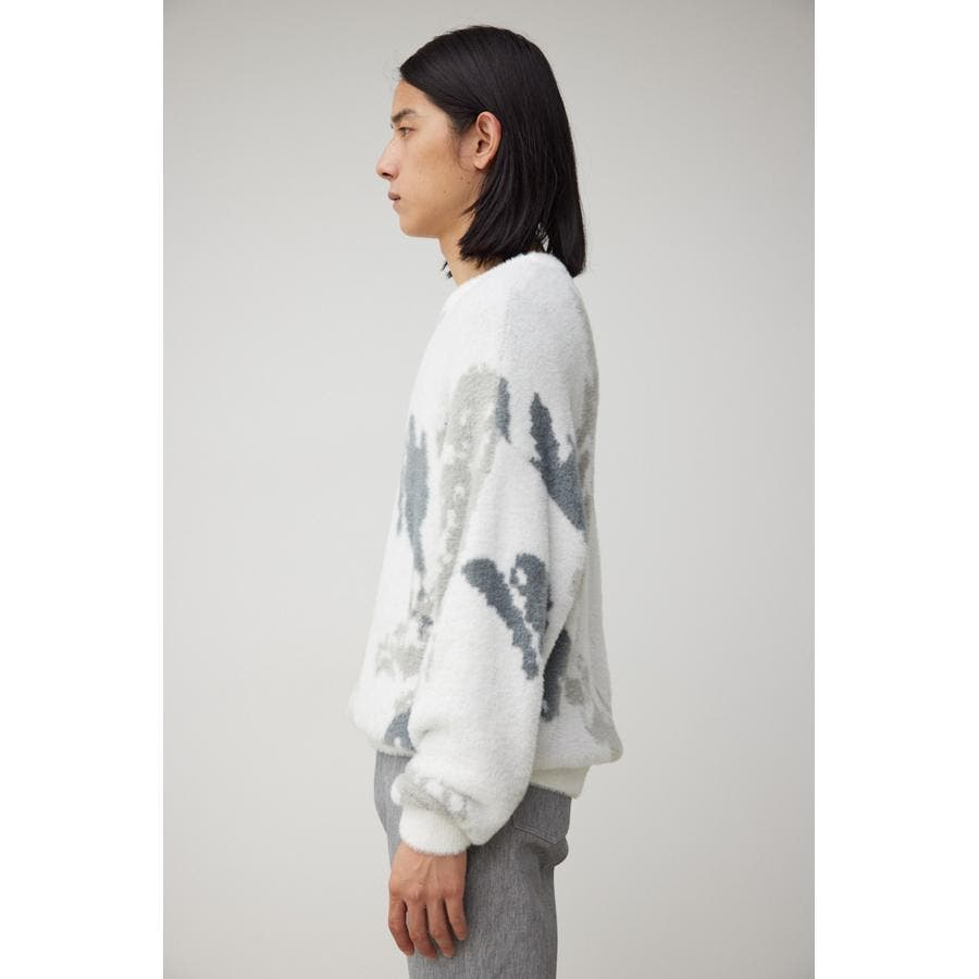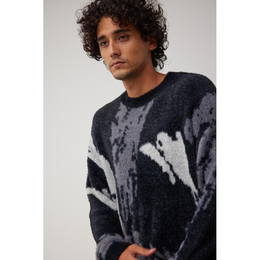 ・起毛感が特徴的な総柄シャギーニット。