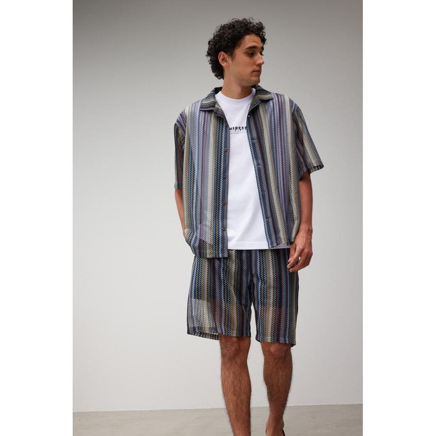 ・トレンドのシアーにレースのストライプが施されたシャツです。