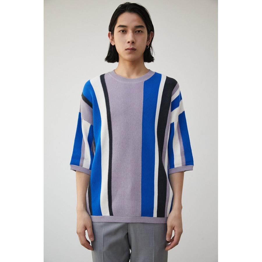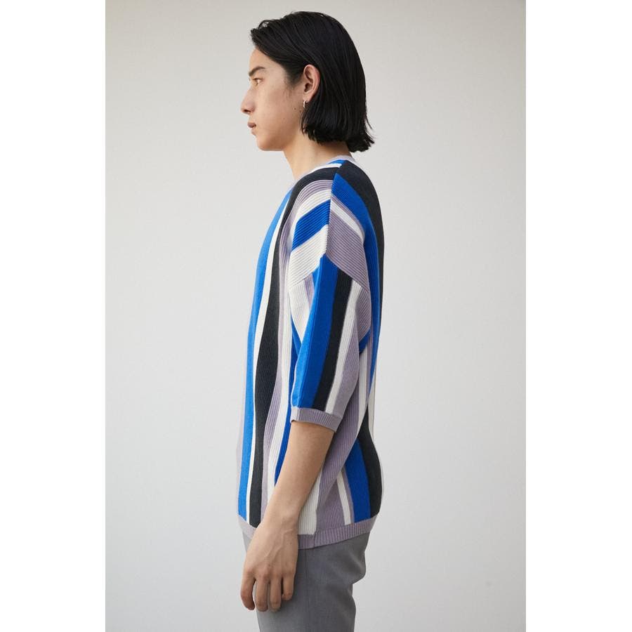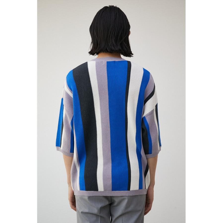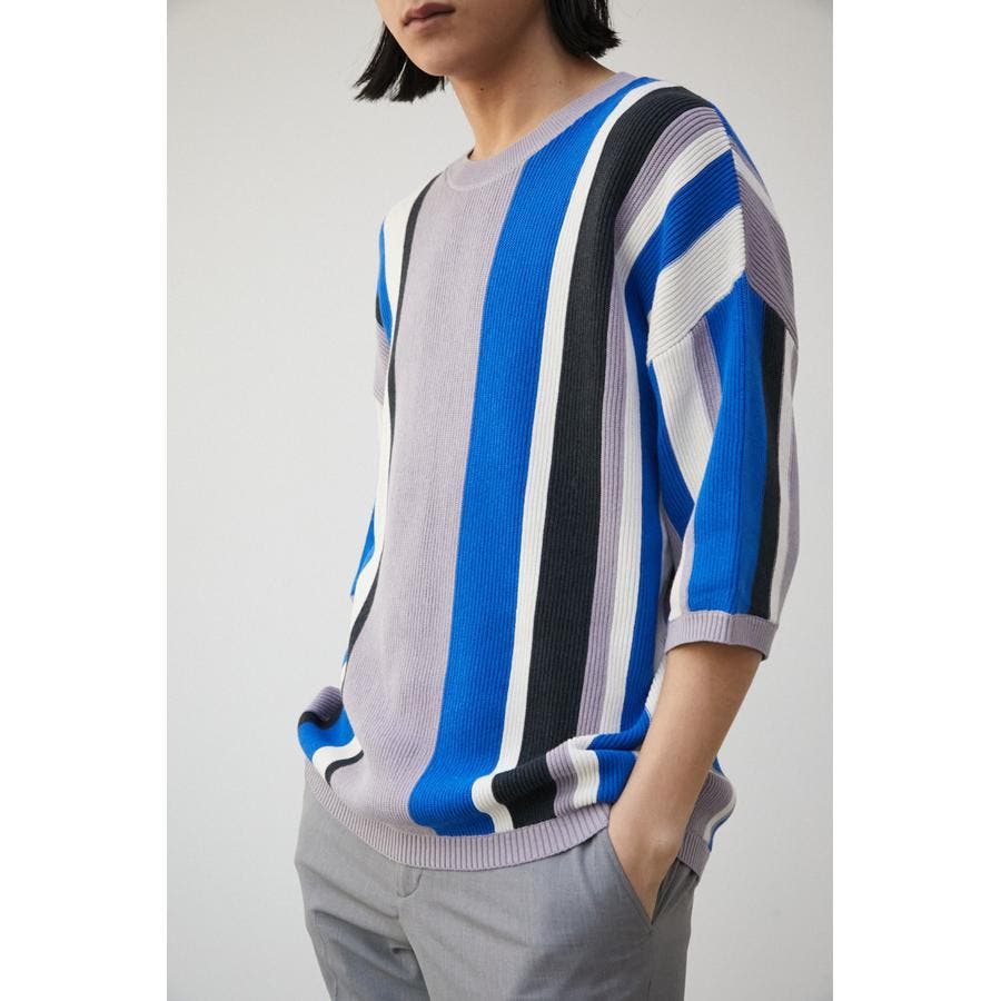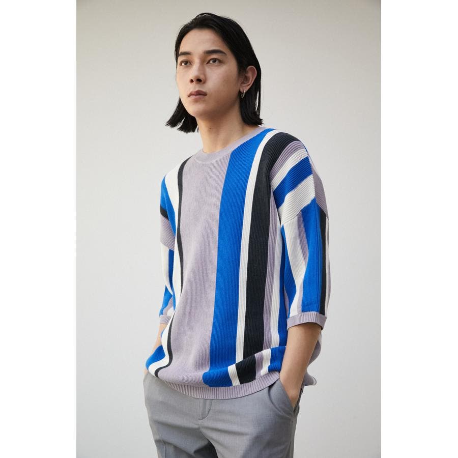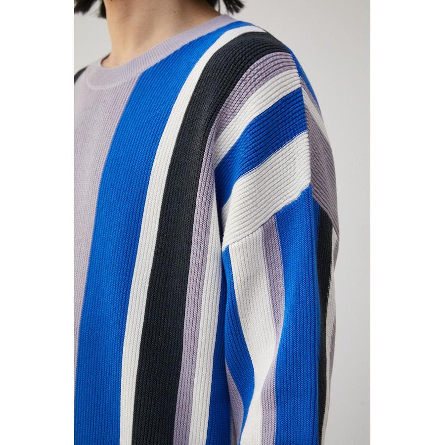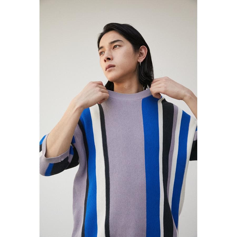 ・編地を横向きに使用し、マルチストライプカラーを表現したニットです。