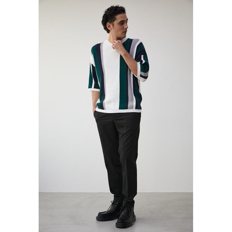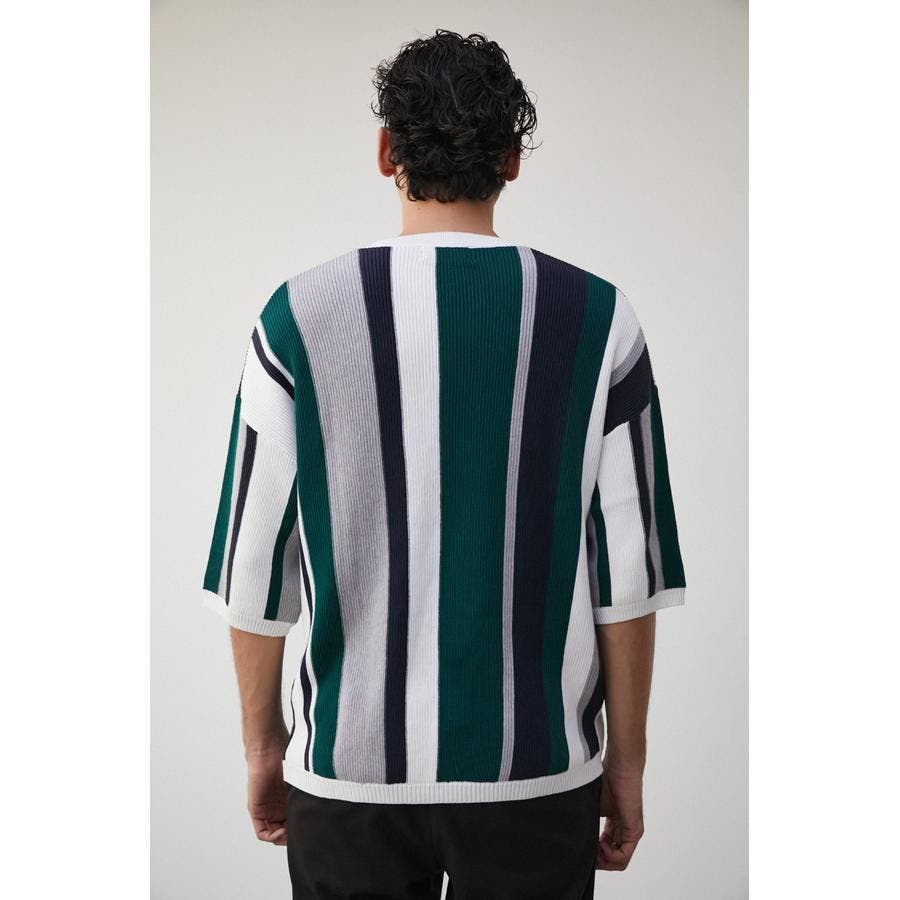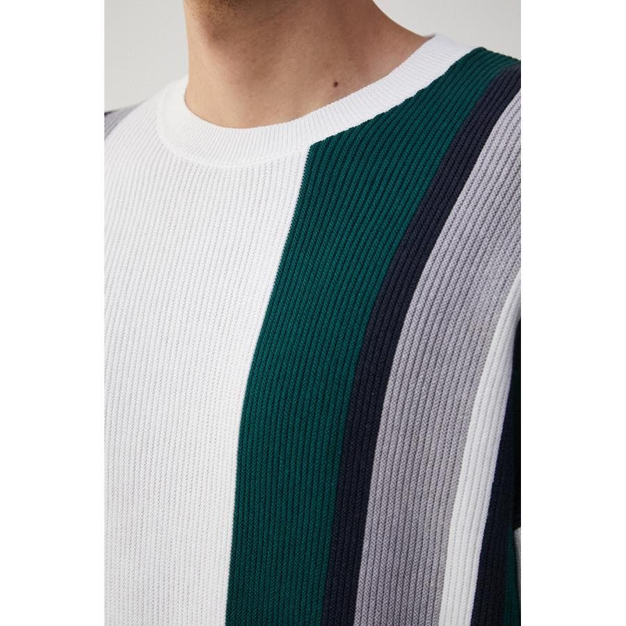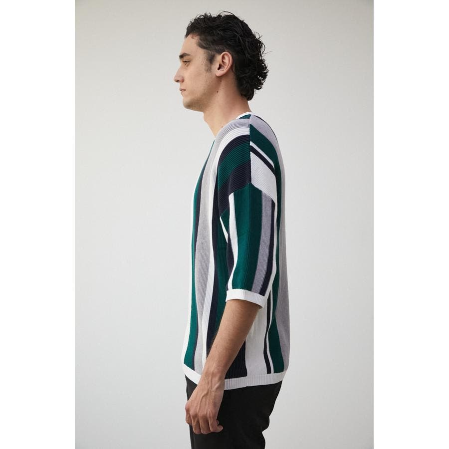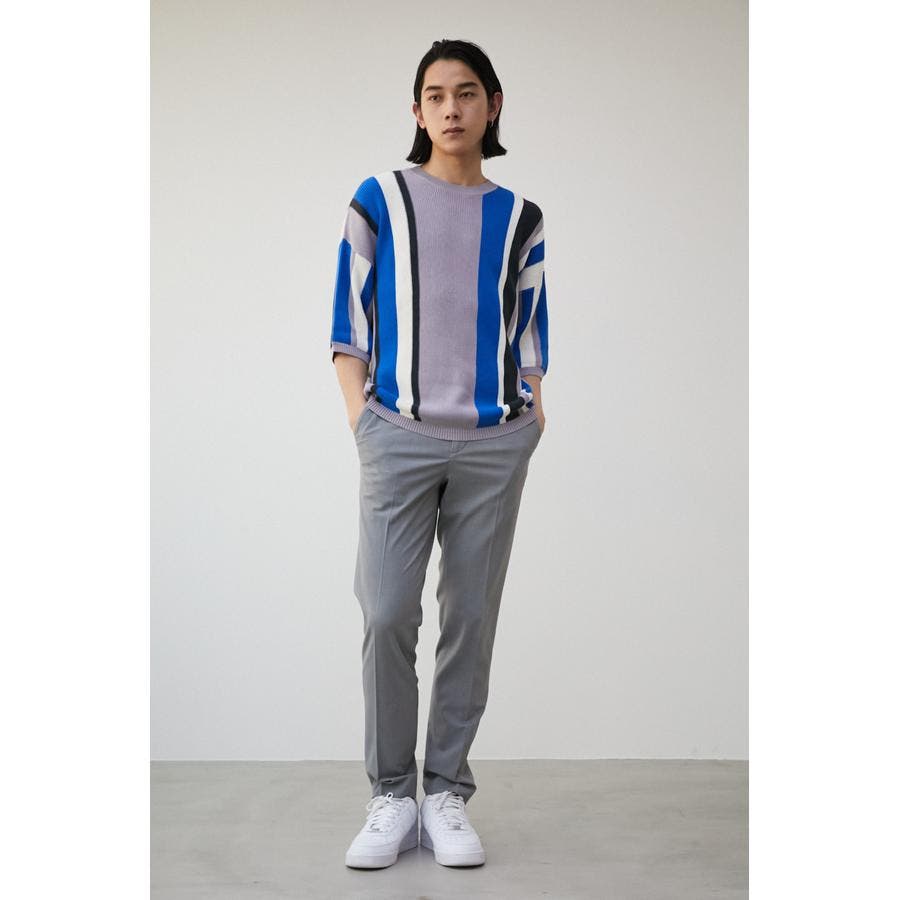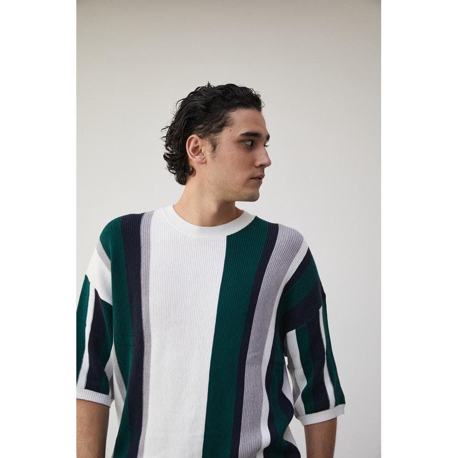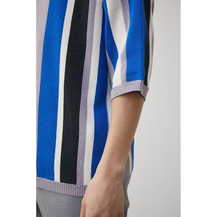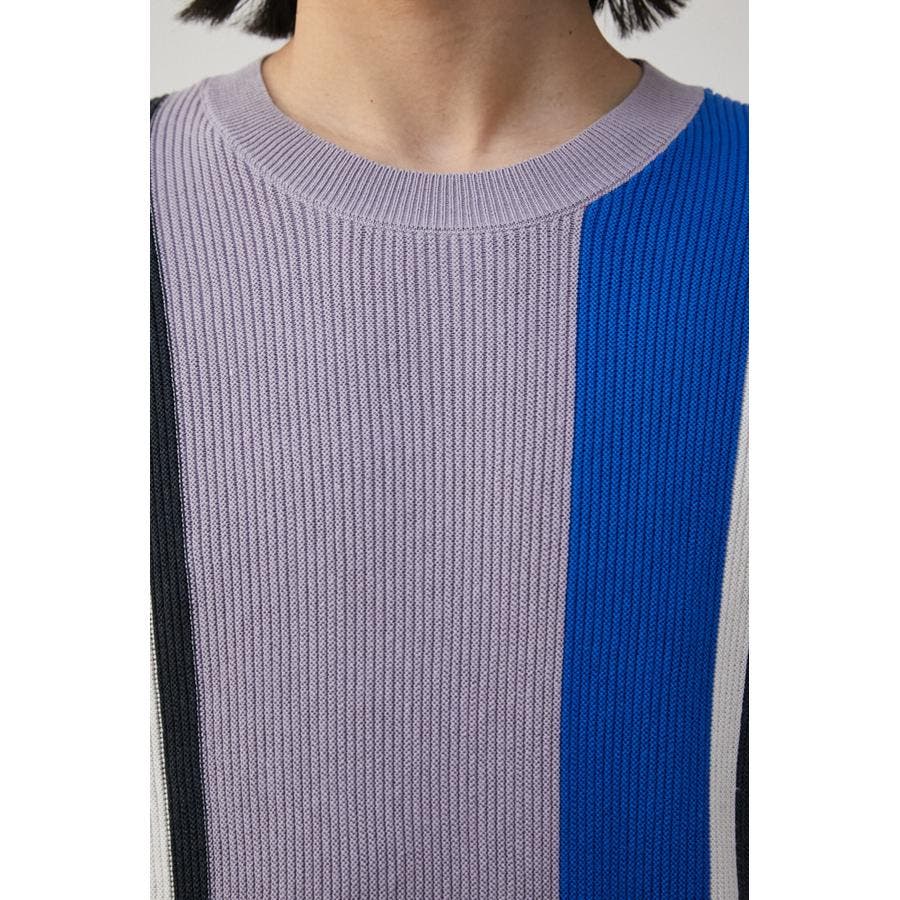 ・編地を横向きに使用し、マルチストライプカラーを表現したニットです。