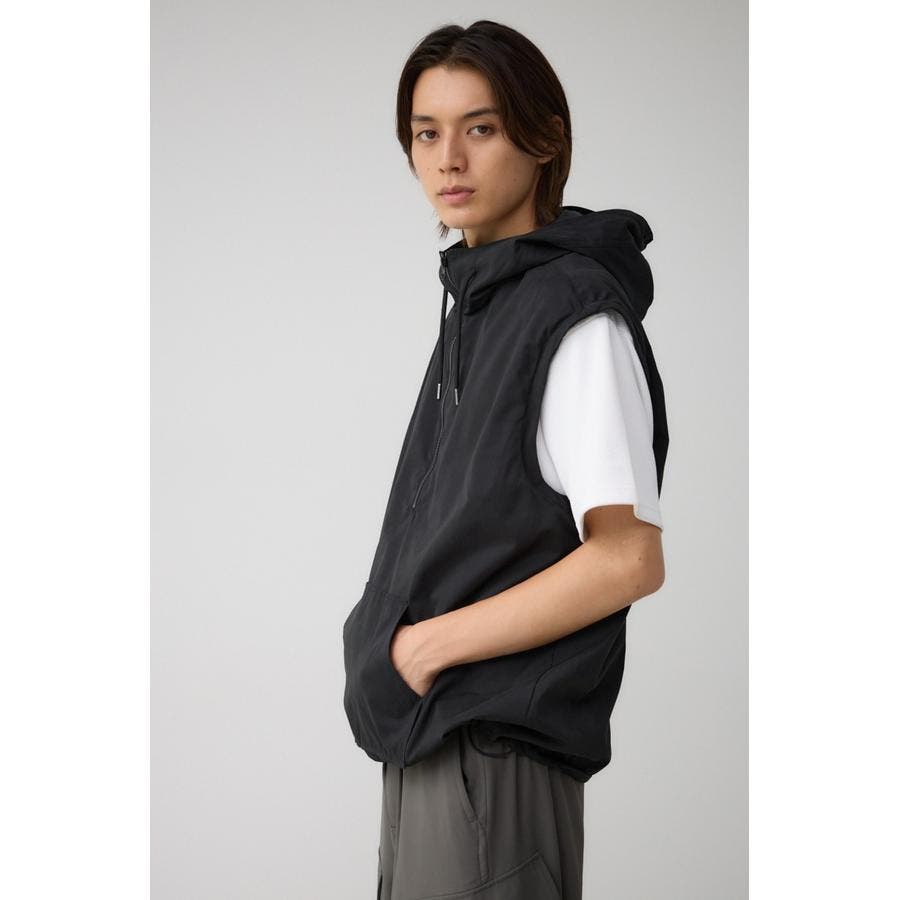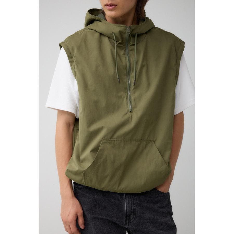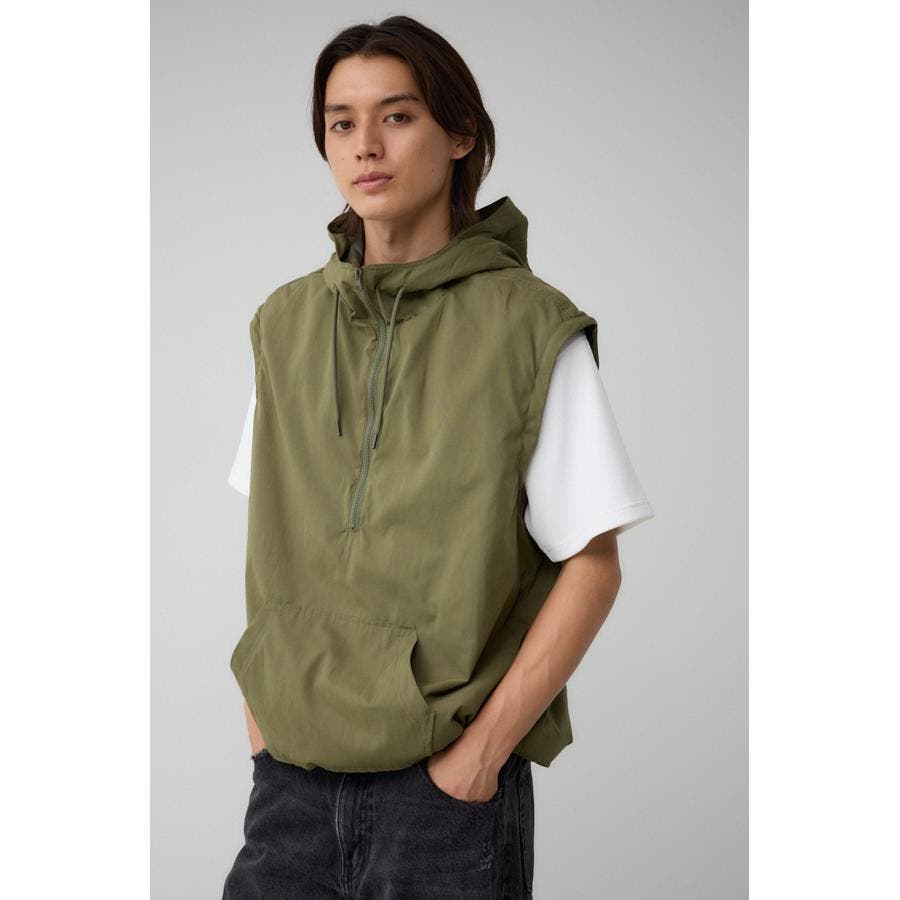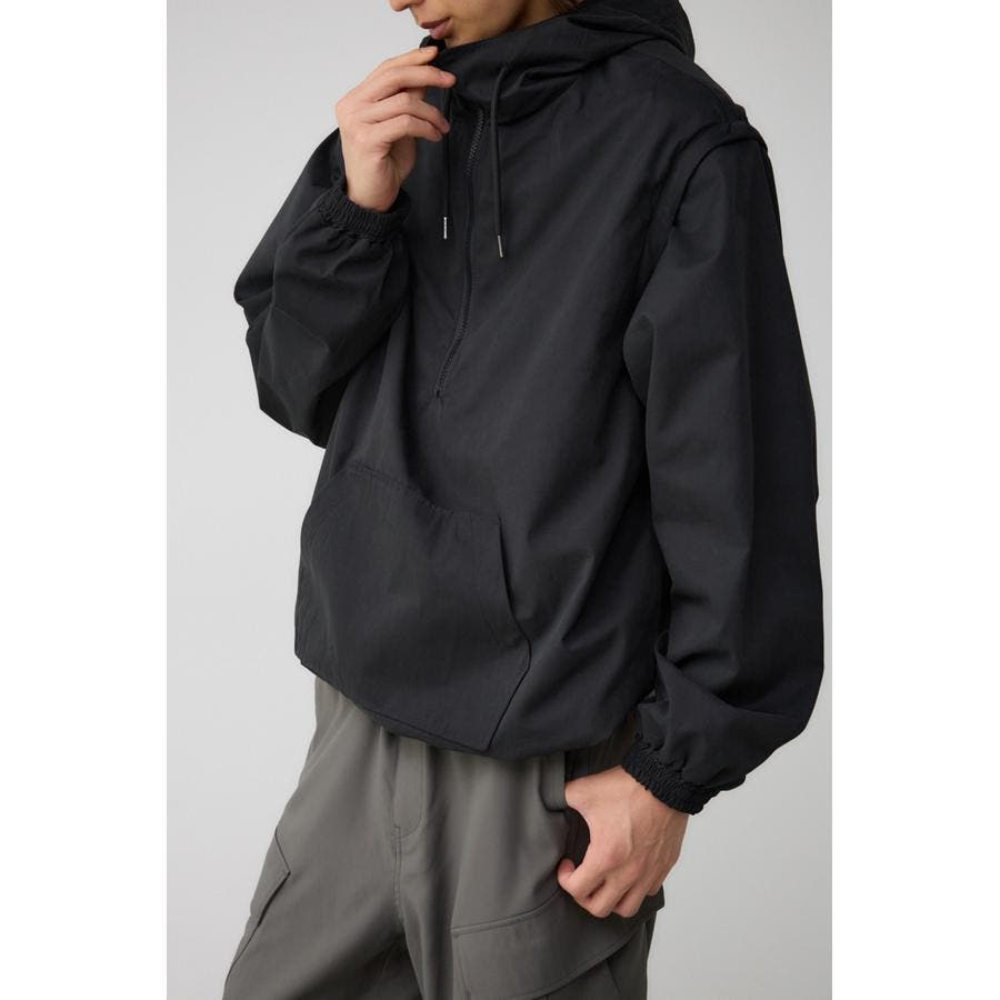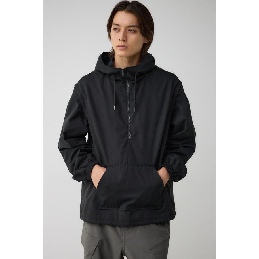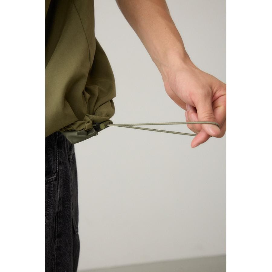 裾のドローコードを絞って短丈にし、ゆったりとしたパンツに合わせたトレンディーな着こなしがおすすめです。