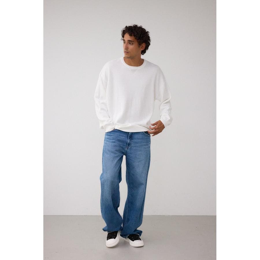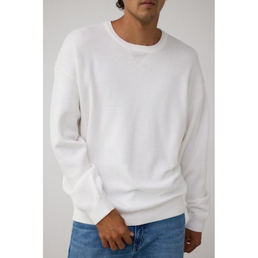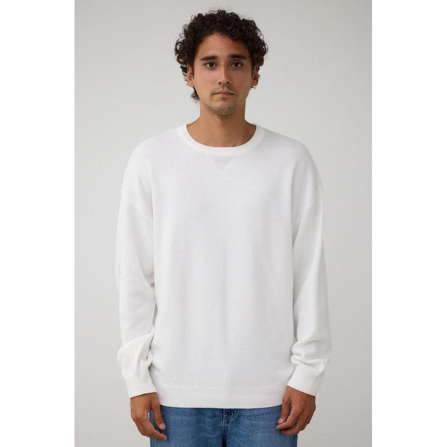 ■素 材:綿混の素材を無地のジャガードで編み立てることで、スウェットライクな素材に仕上げたニットです。