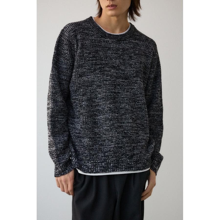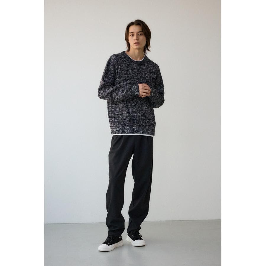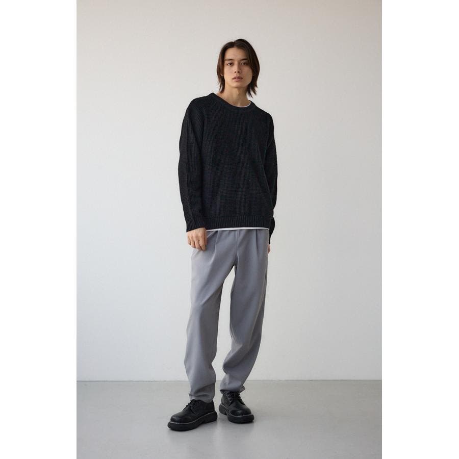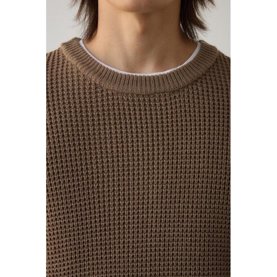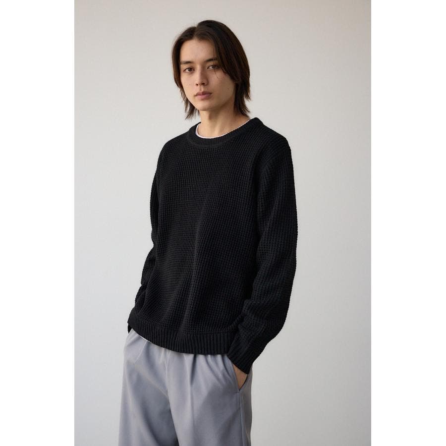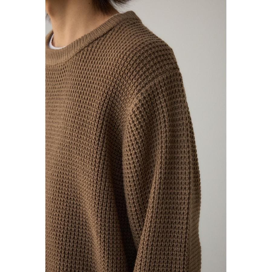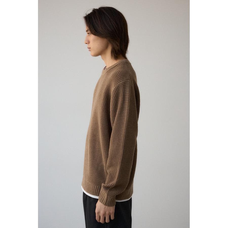 ワッフル編みニットにカットソー生地のフェイクレイヤードで1着でオシャレに着こなせます。