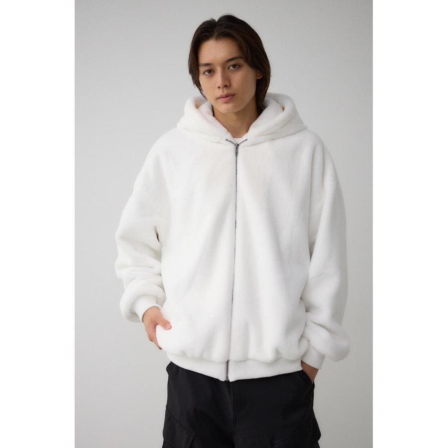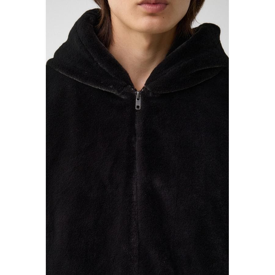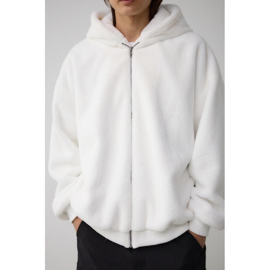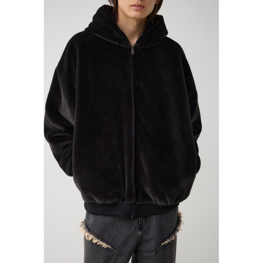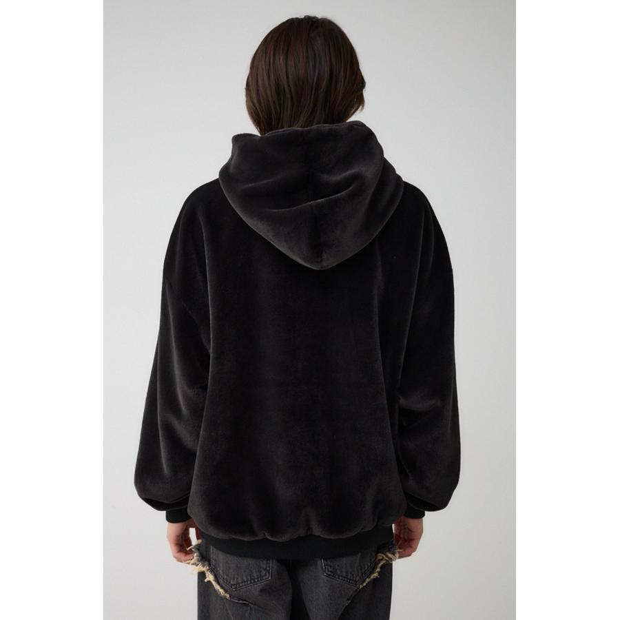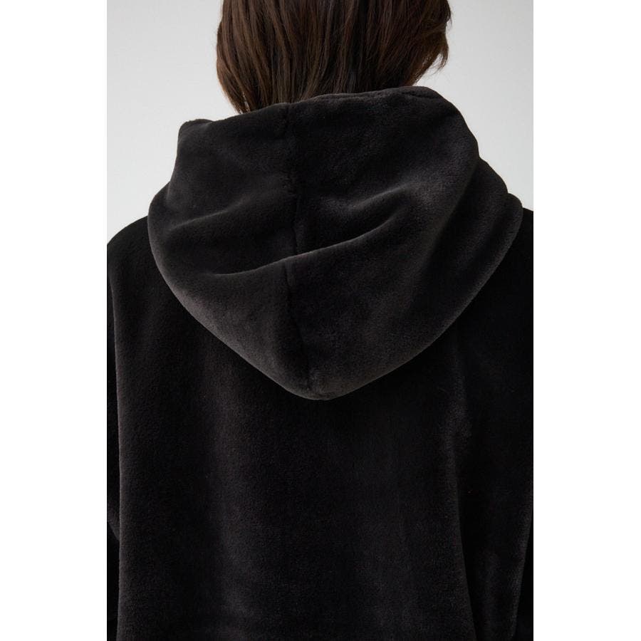 微光沢なフェイクファー素材が着心地だけではなく、艶やかで高見えさせてくれるポイントです。