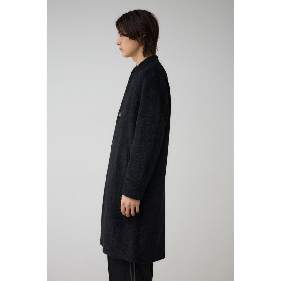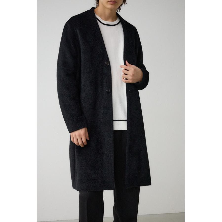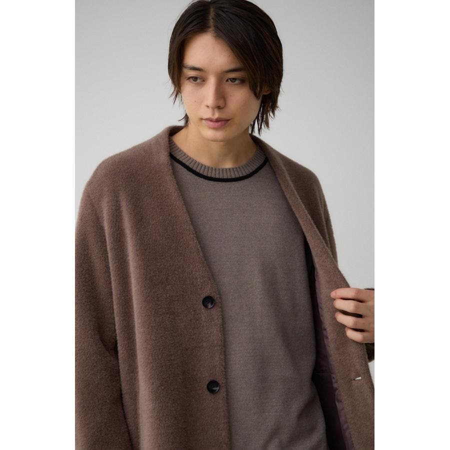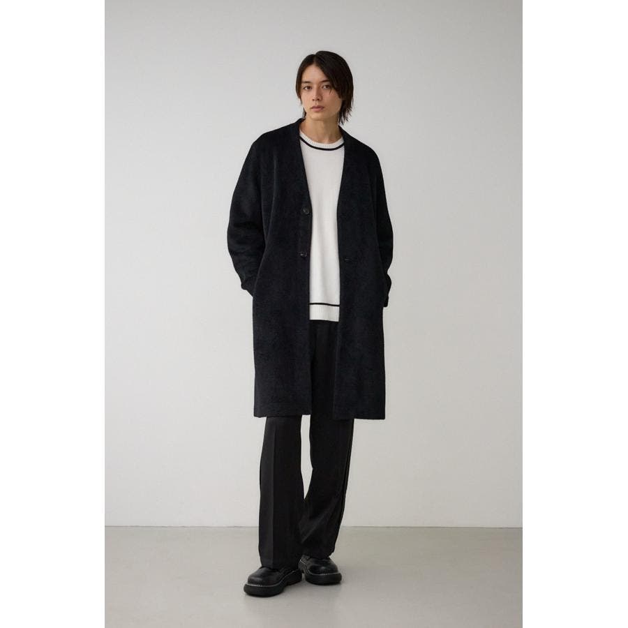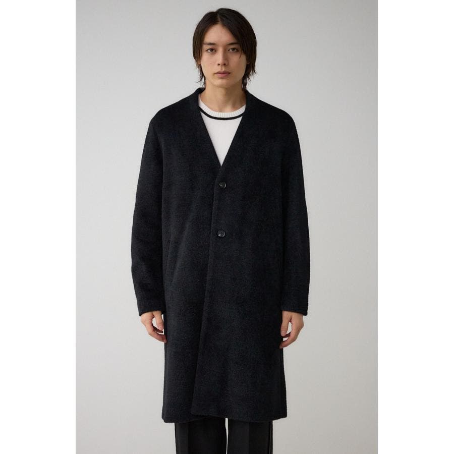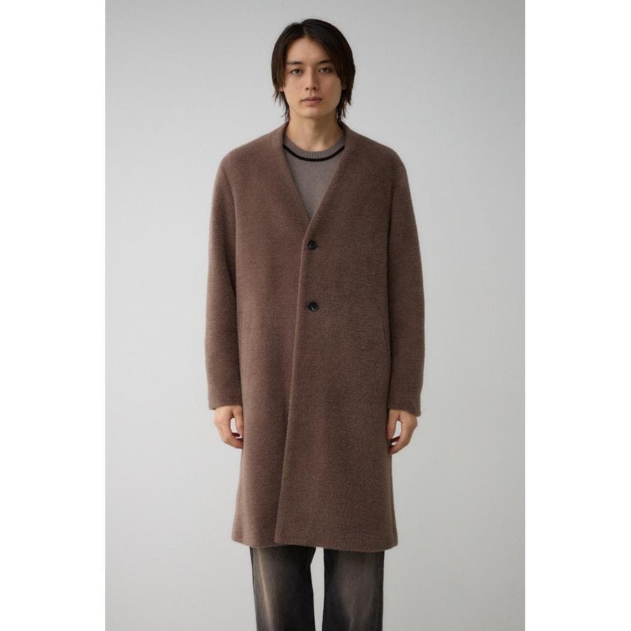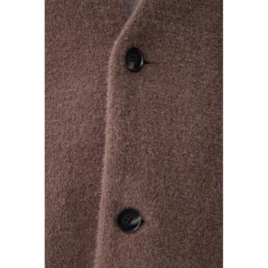 肌触りのいいシャギー素材のトレンドノーカラーコートです。