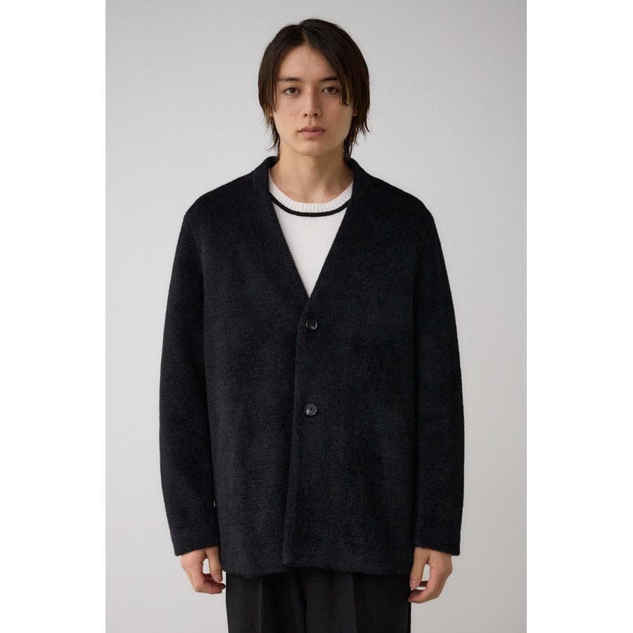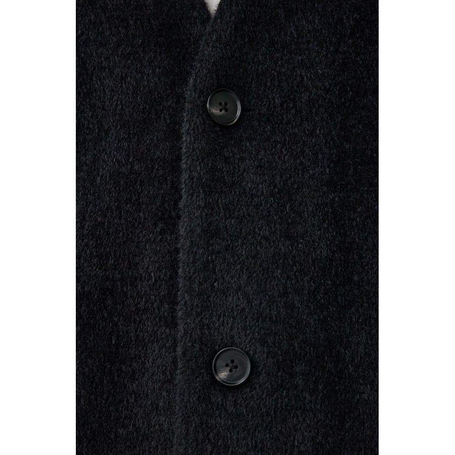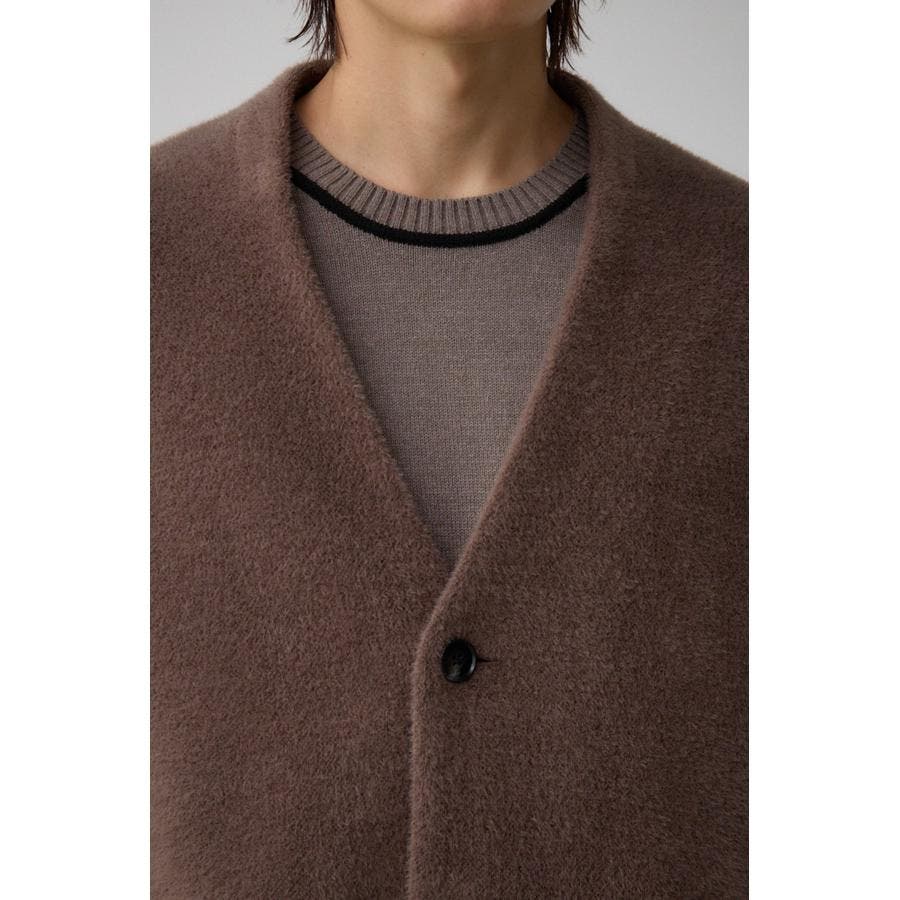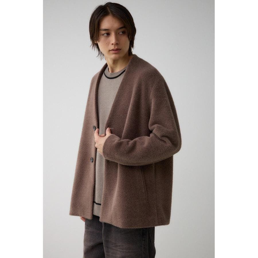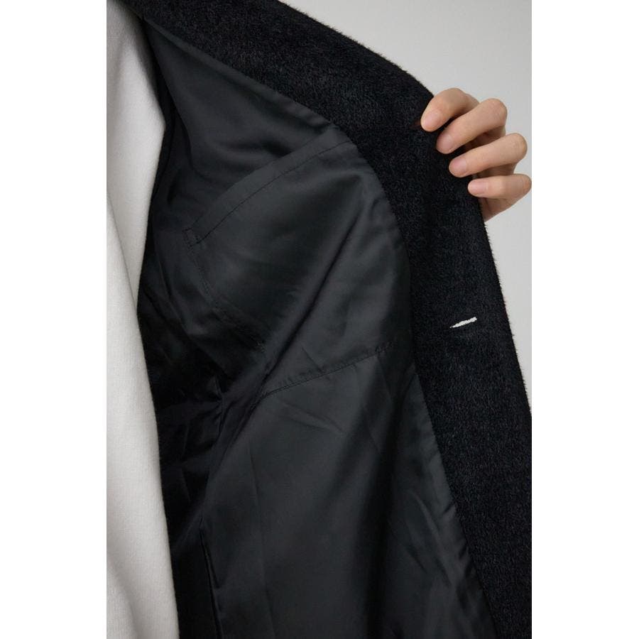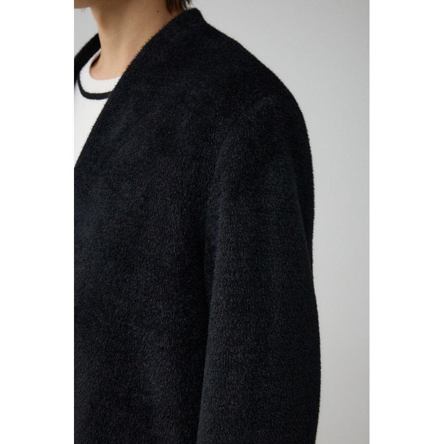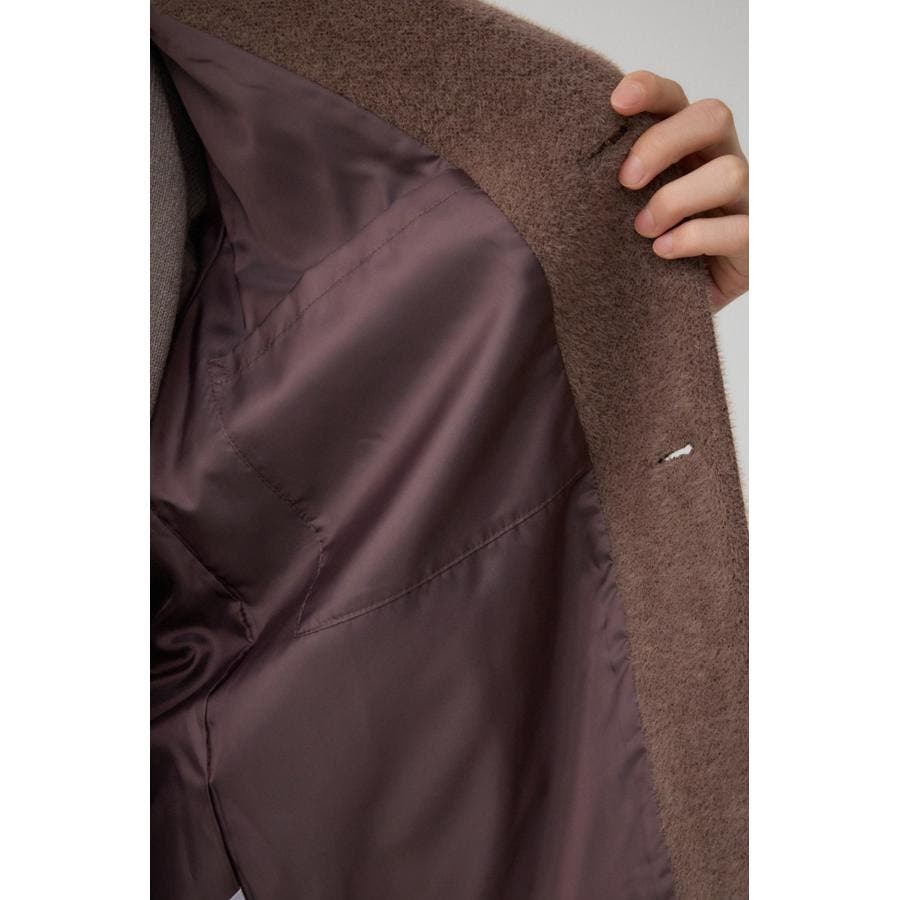肌触りのいいシャギー素材のトレンドノーカラーコートです。