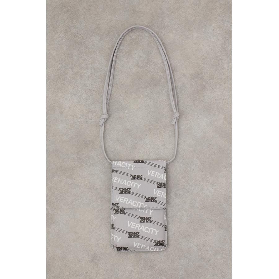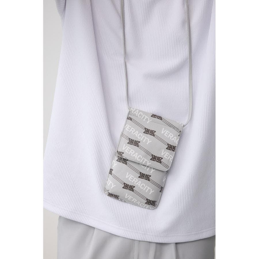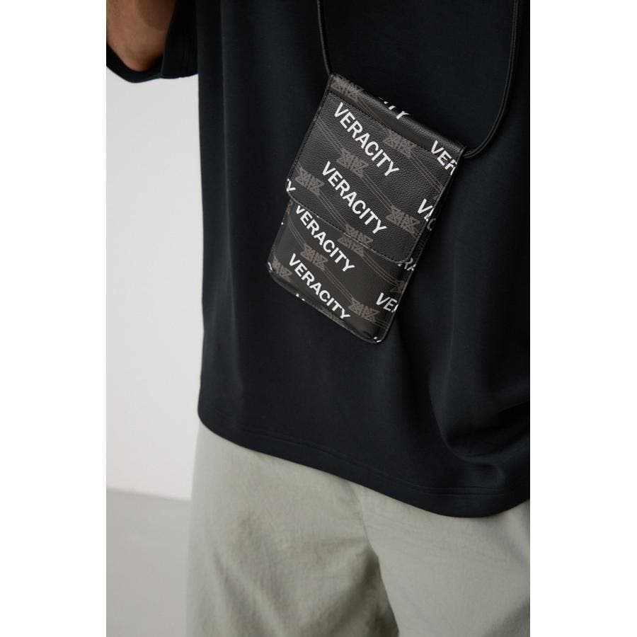 ■商品(デザイン)ポイント:シボ感のある合皮に総柄ロゴデザインを施したミニショルダーバッグ。